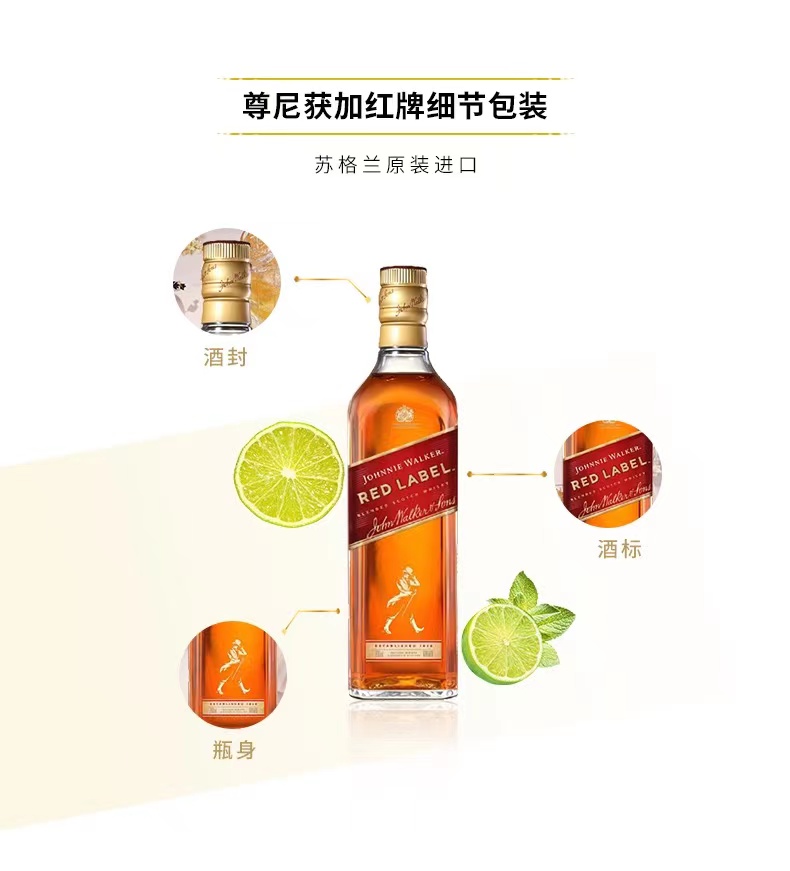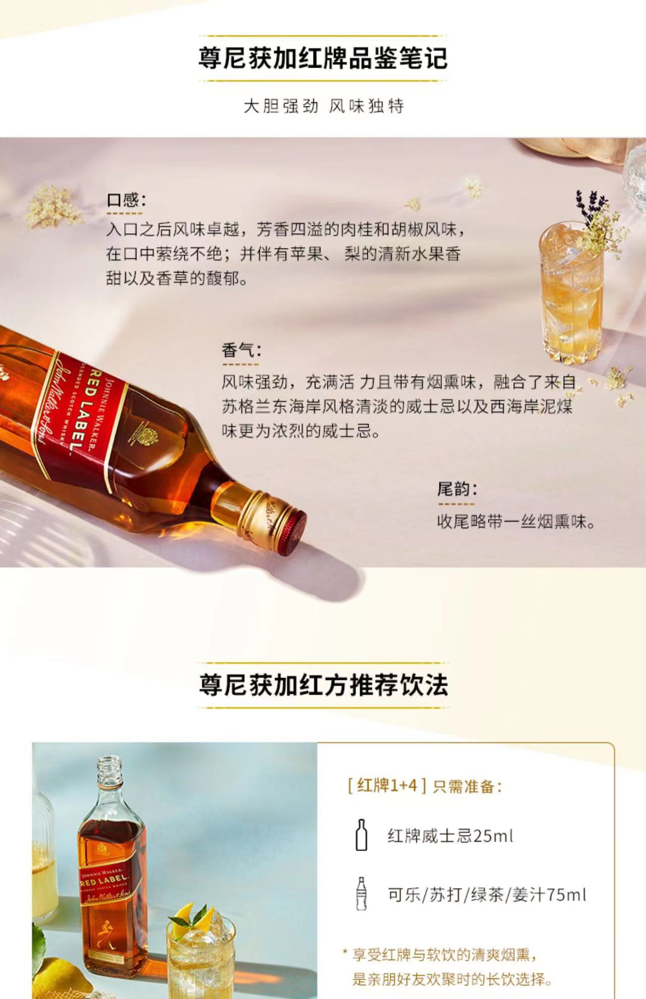 尊尼获加红牌 40度 700ml 苏格兰威士忌 洋酒 品鉴小酌 好友小聚