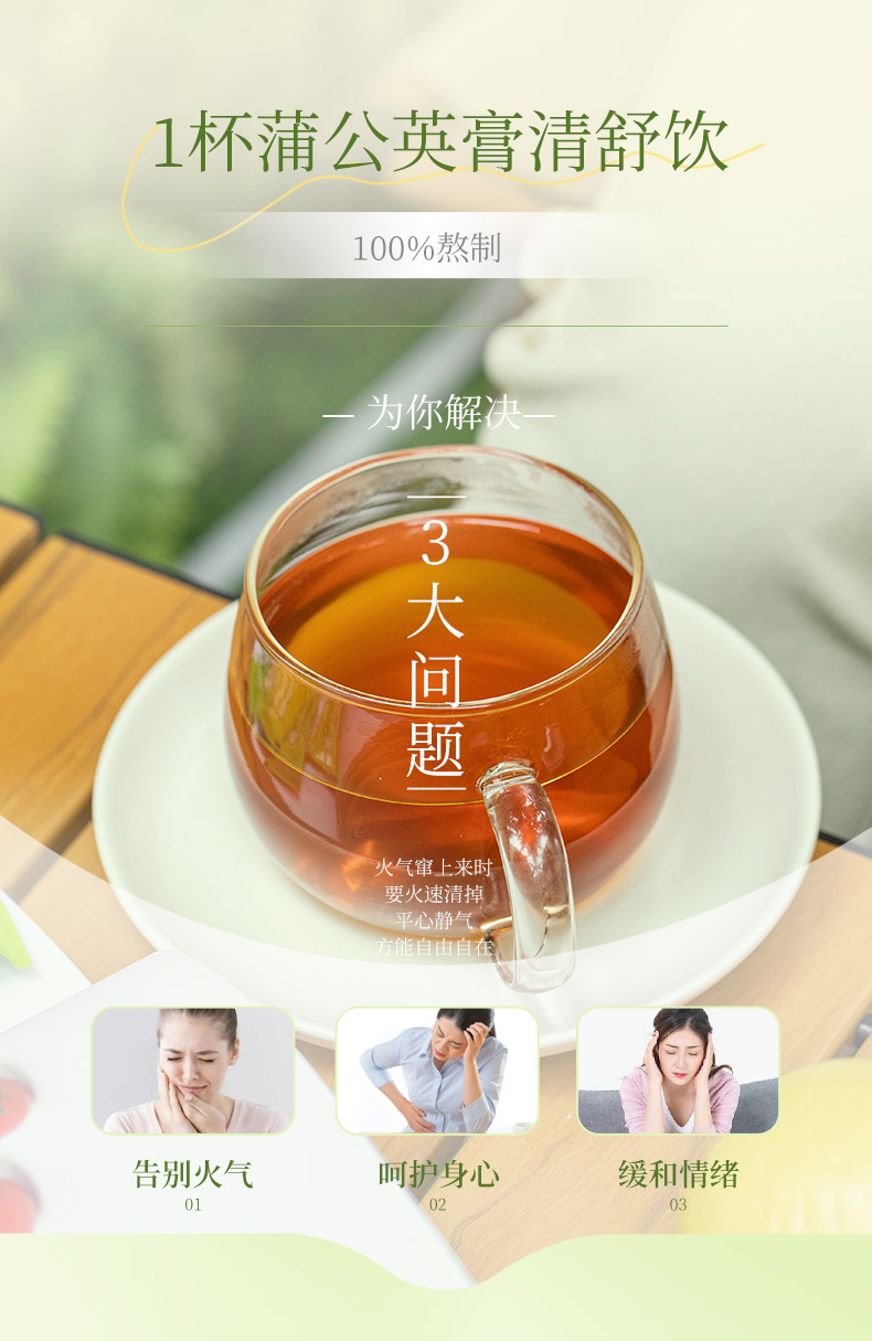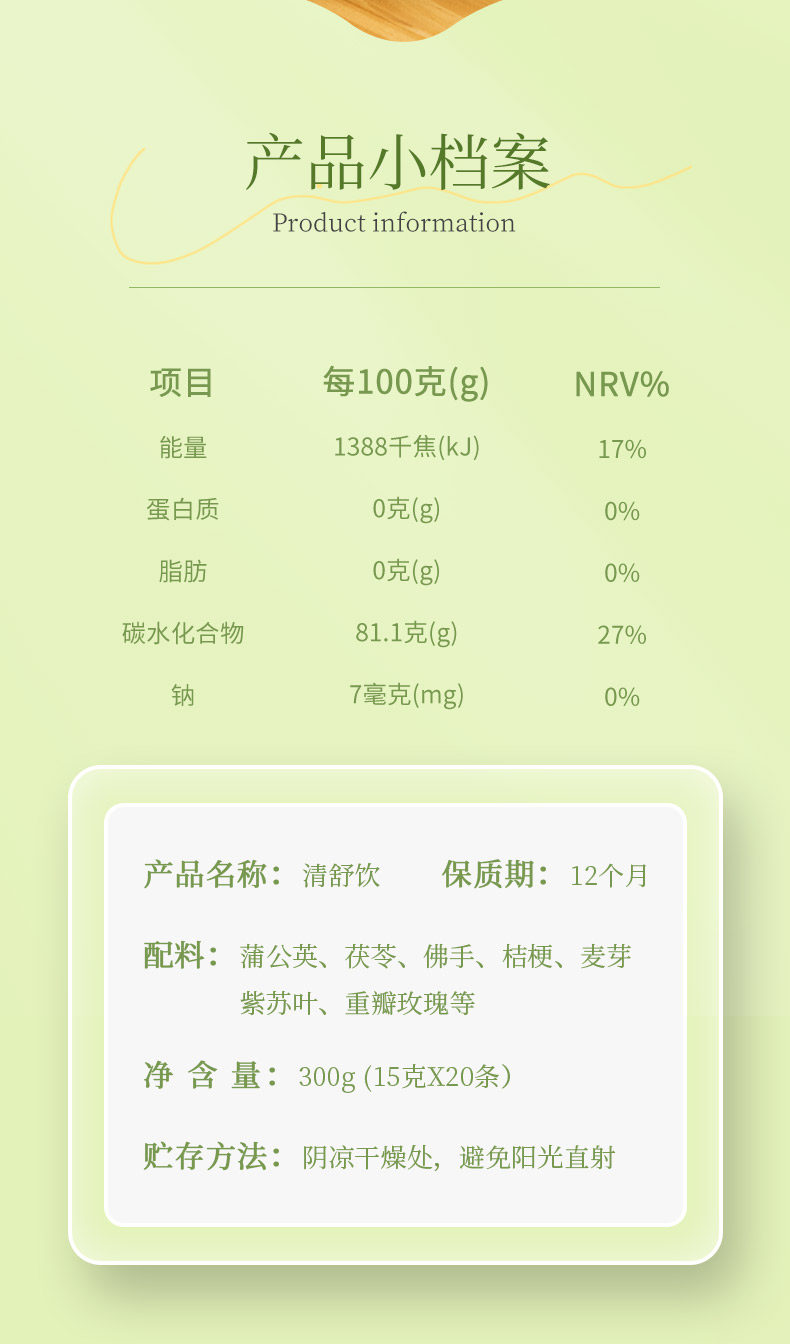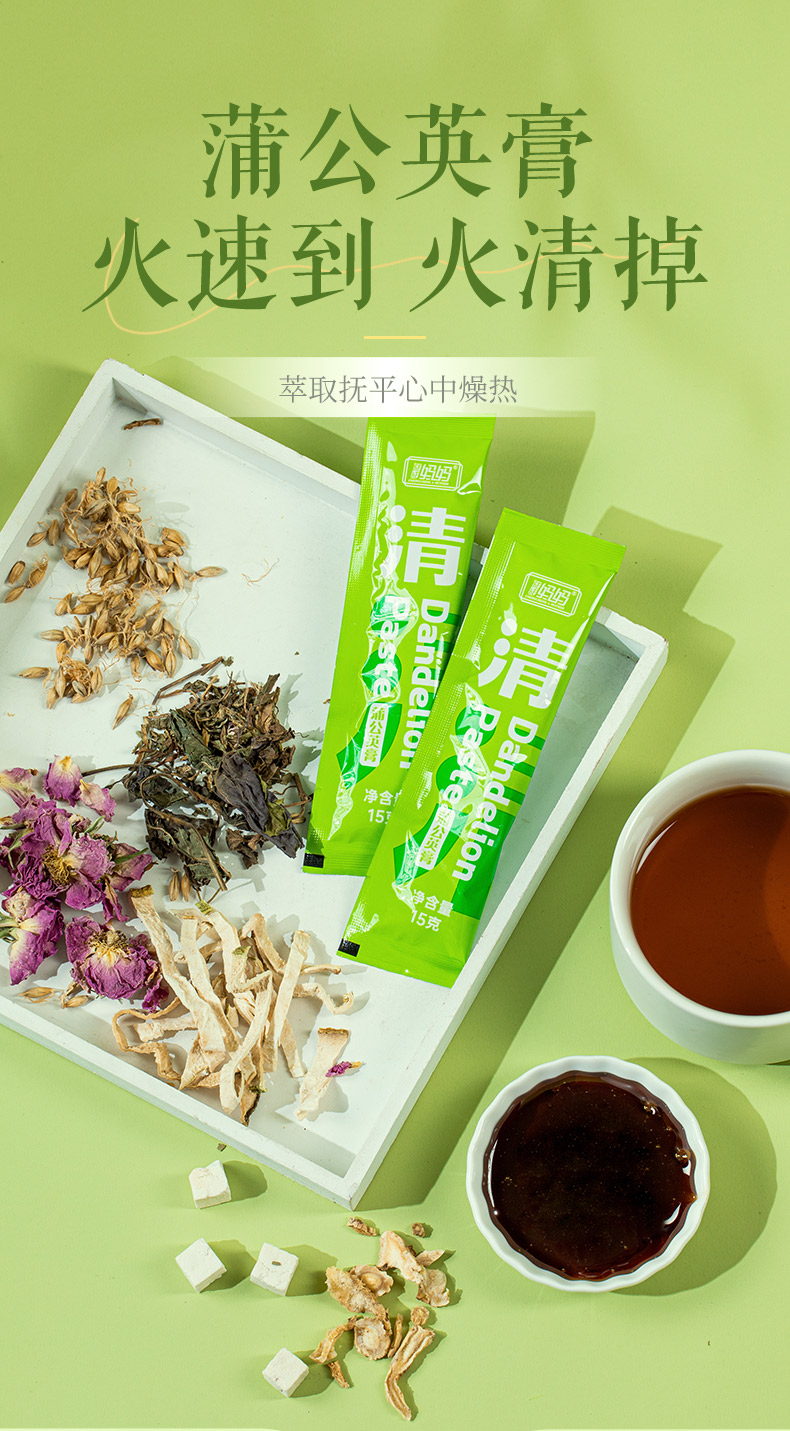 【配料】:蒲公英、茯苓、佛手、桔梗、麦芽、紫苏叶、重瓣玫瑰、水、麦芽糖饴