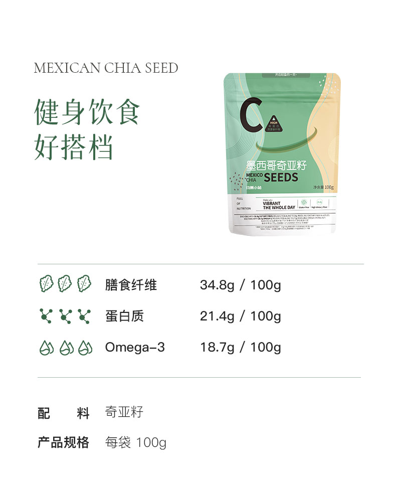 【晟麦均衡小站 奇亚籽】代餐即食便携小包装泡水膳食纤维100g*3