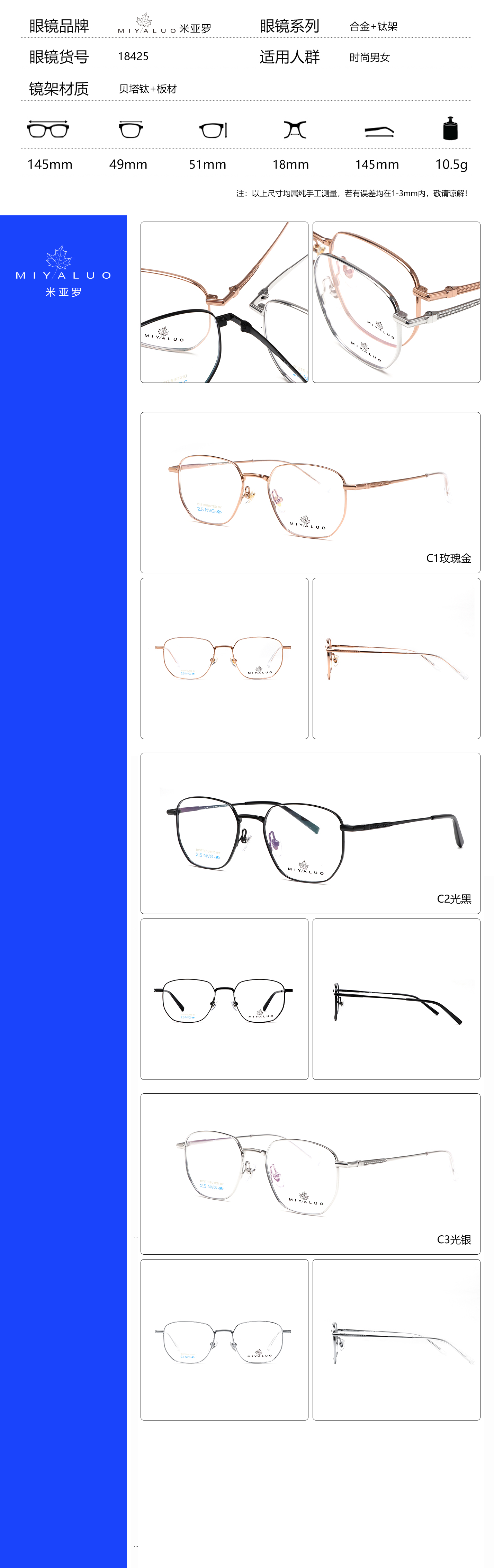 18425 米亚罗MIYALUO 新款光学镜架 全钛合金钛架 18425