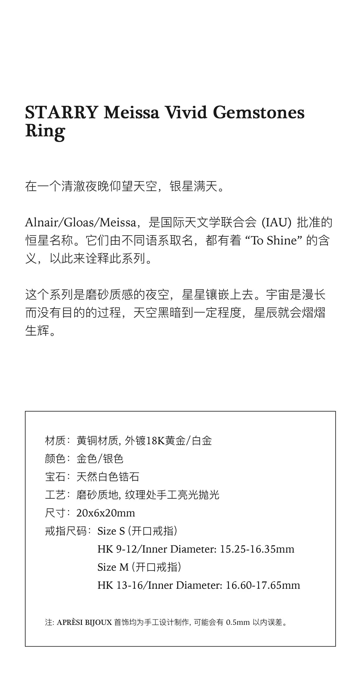 APRESI|窄版STARRY Meissa Vivid Gemstones Ring [星辰开口戒指]