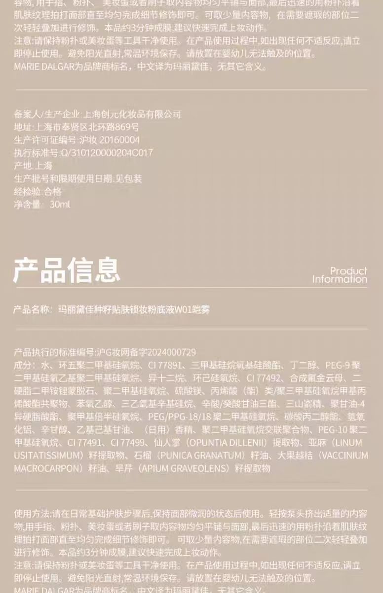 4楼Eubelle欧蓓 玛丽黛佳种籽贴肤锁妆粉底液30ml 干皮/混干皮 细腻持妆遮瑕服贴 吊牌价:199元 活动价:179元