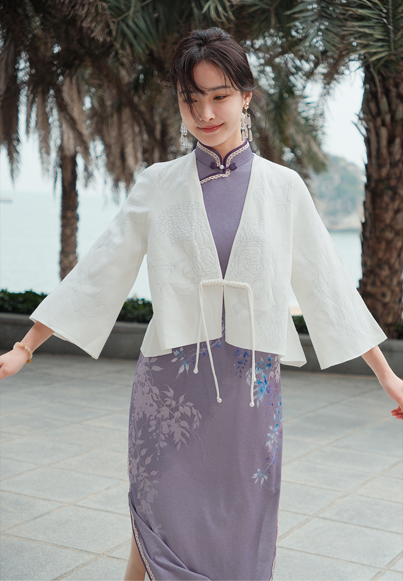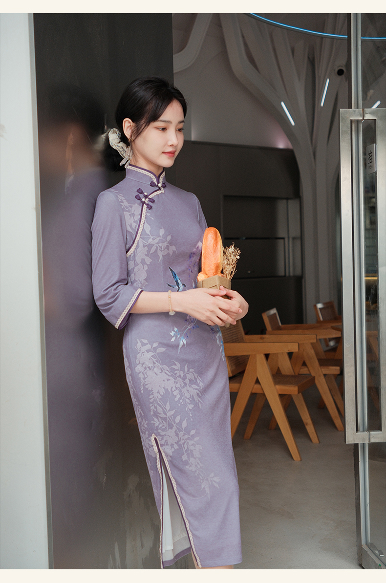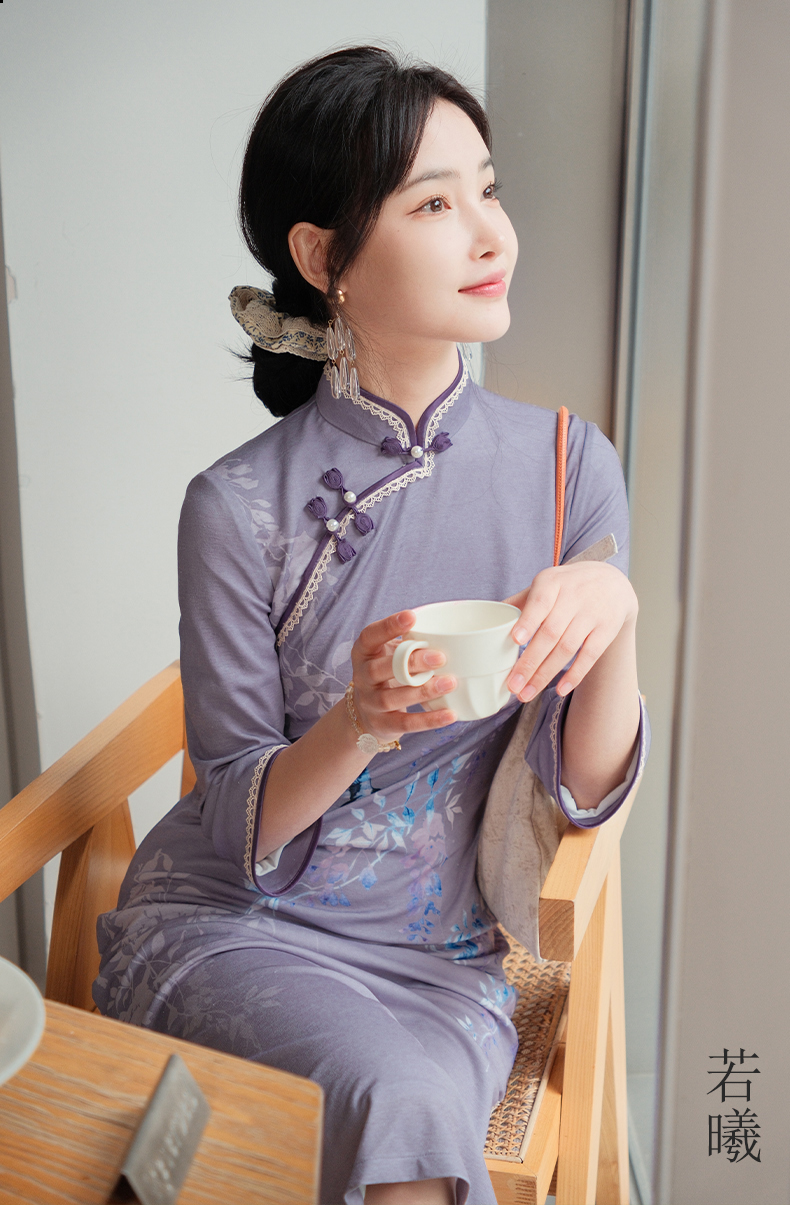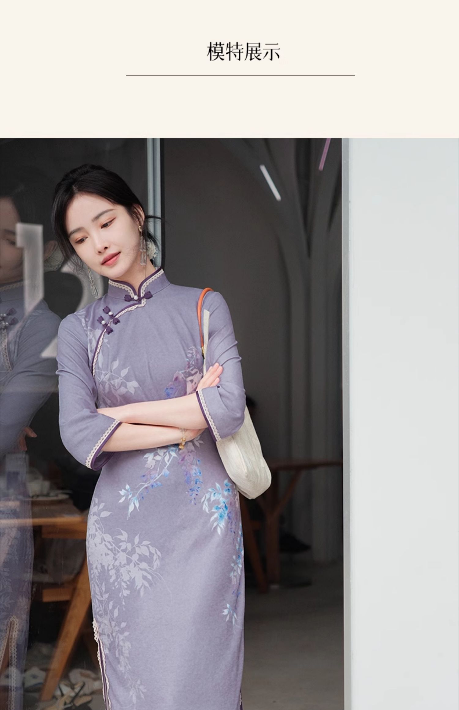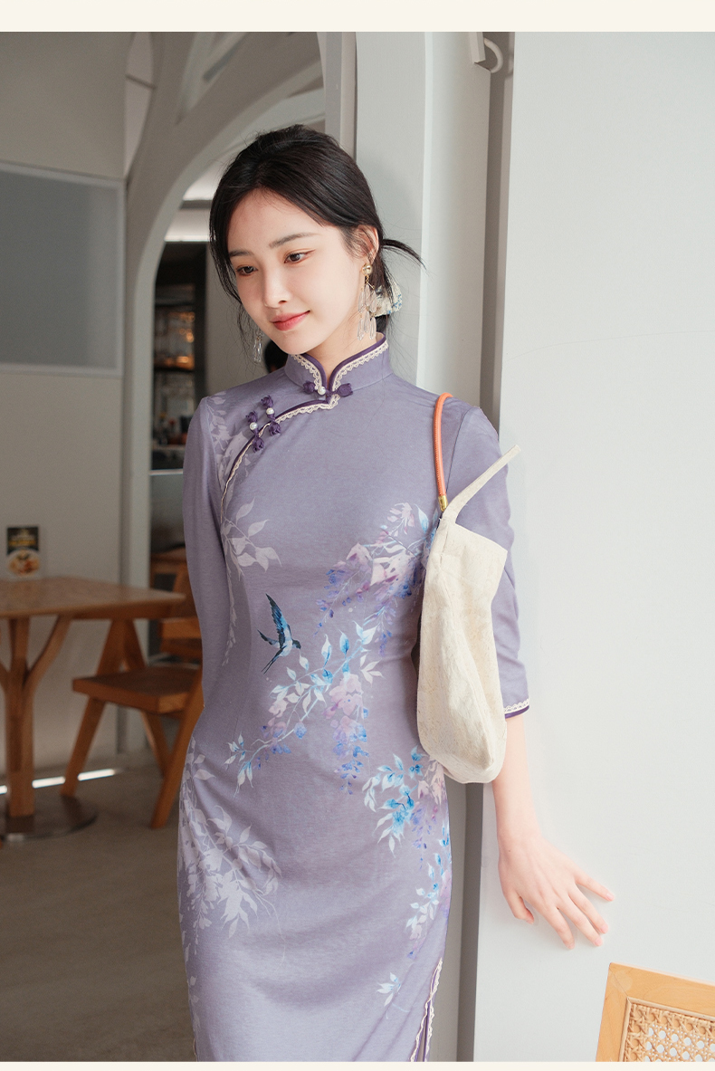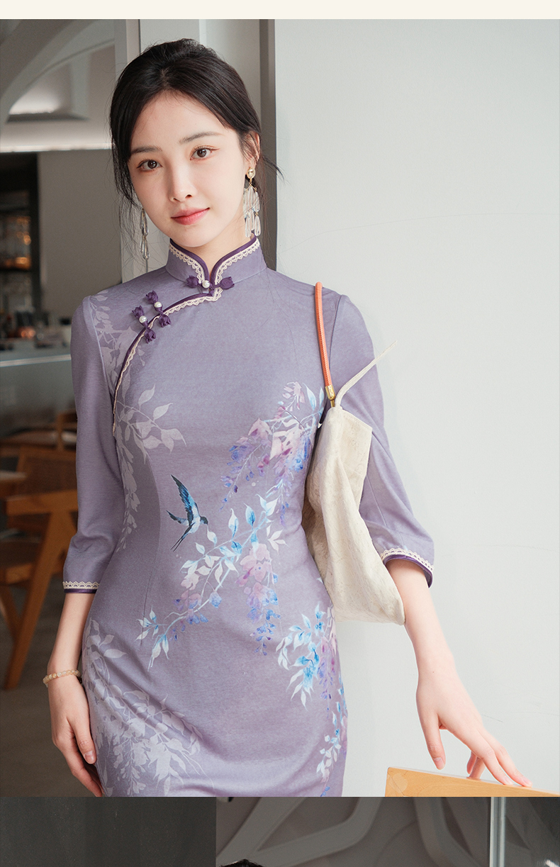 上海逸红颜 若曦 2025年春装新品新中式女装定位手绘紫藤针织旗袍