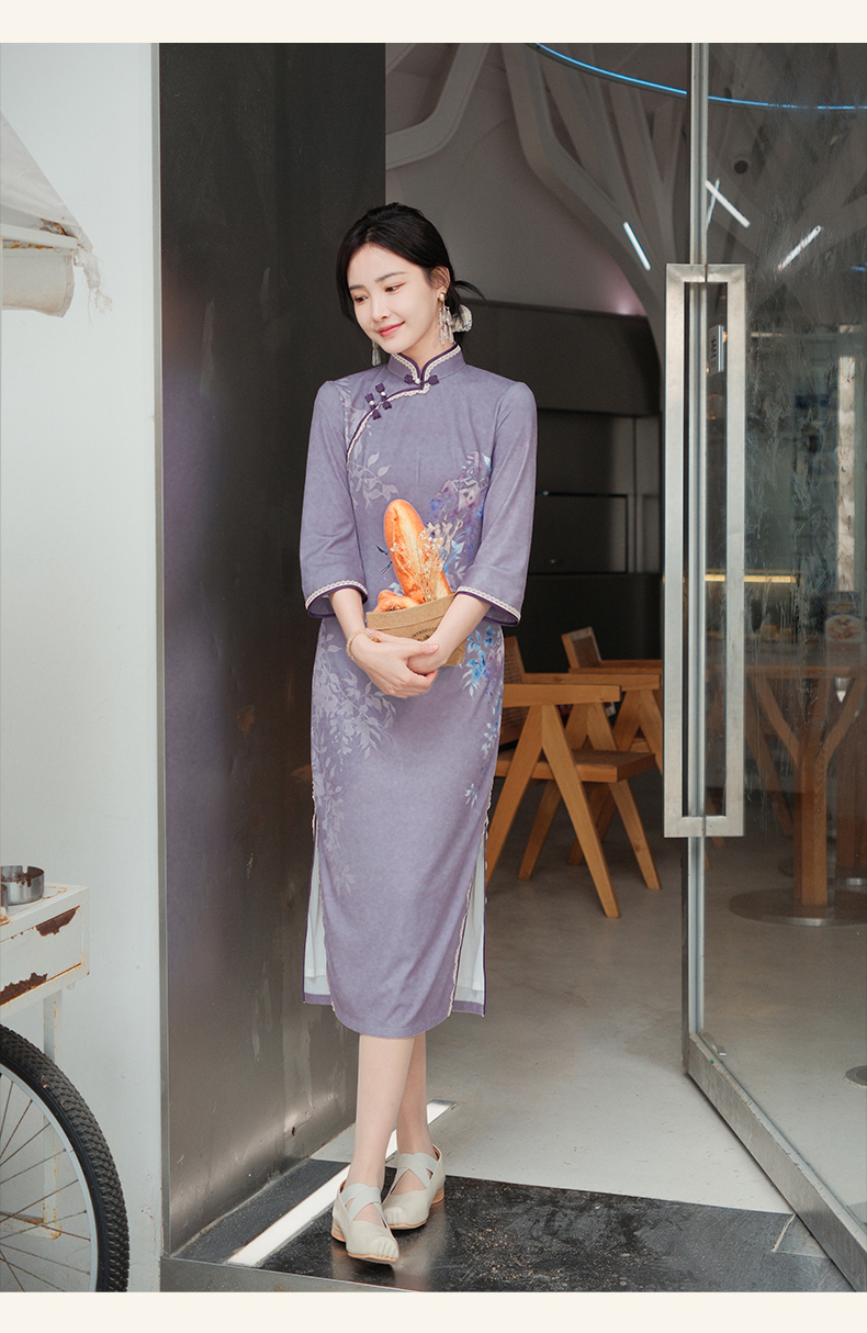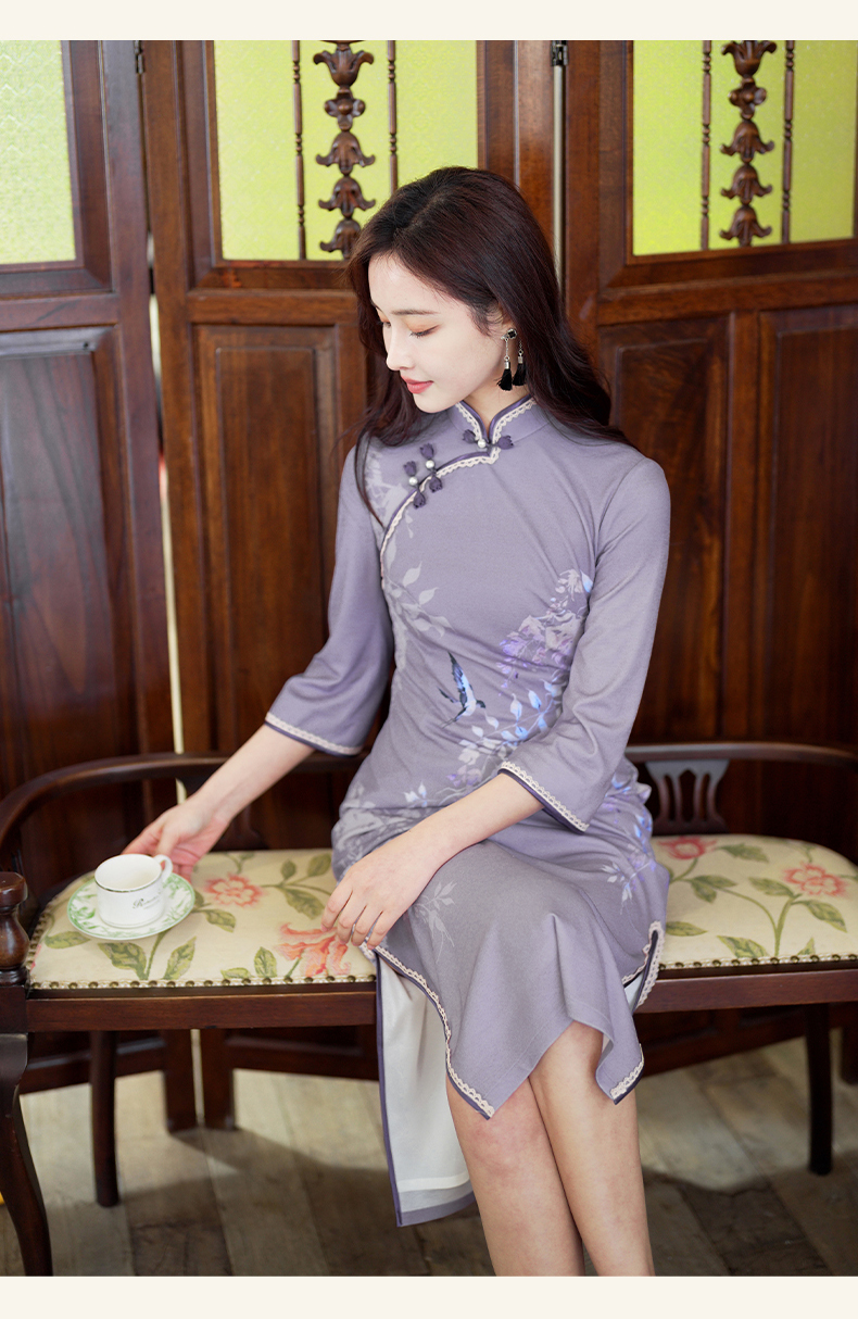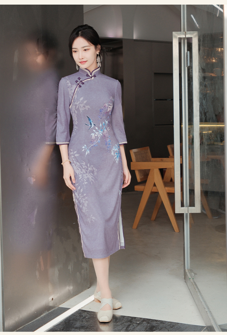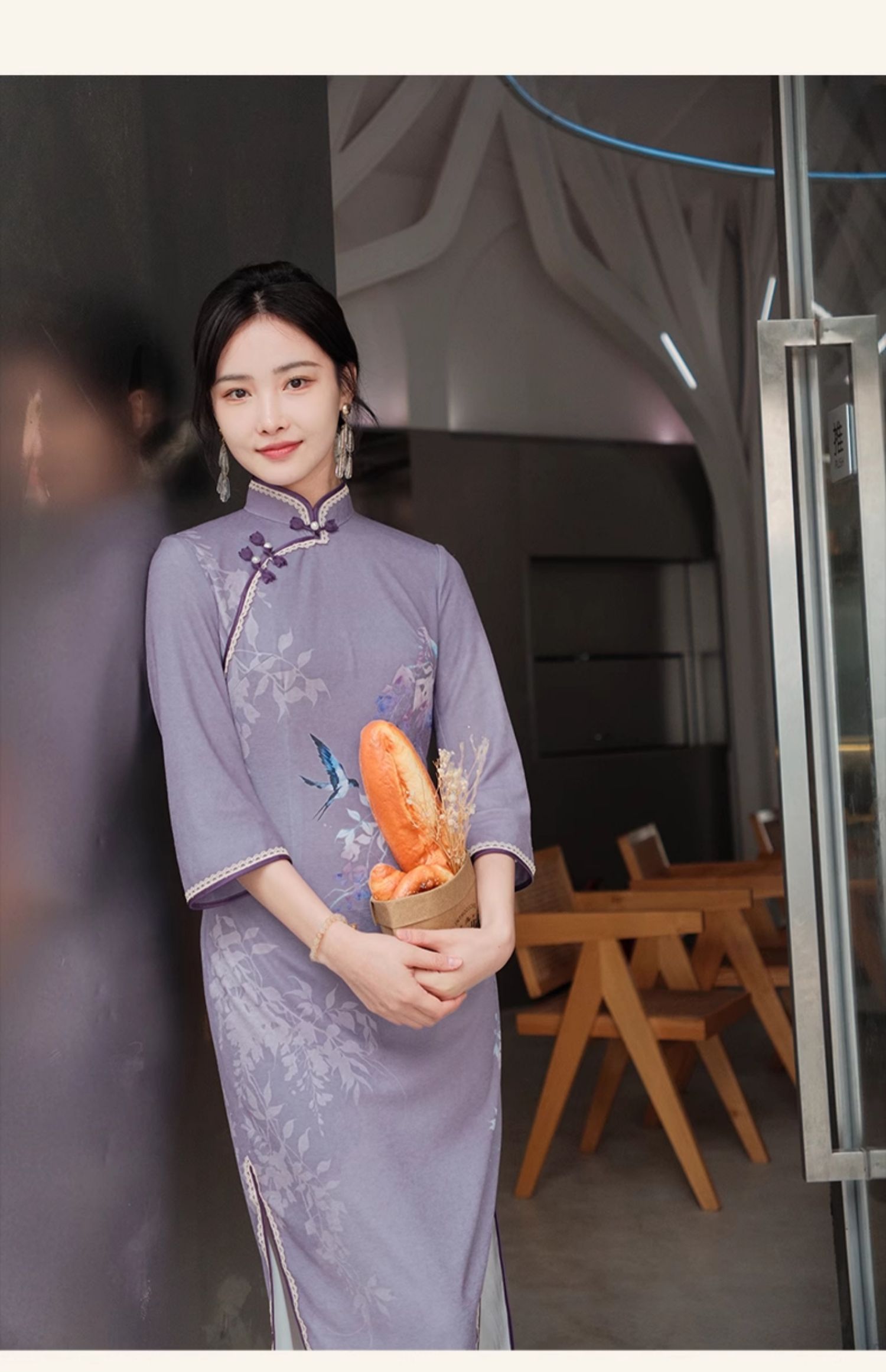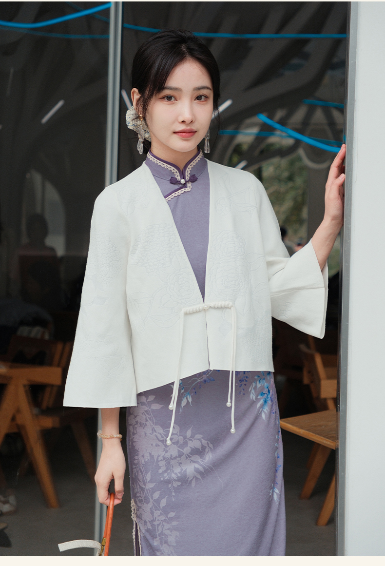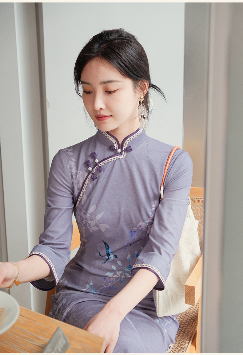 上海逸红颜 若曦 2025年春装新品新中式女装定位手绘紫藤针织旗袍