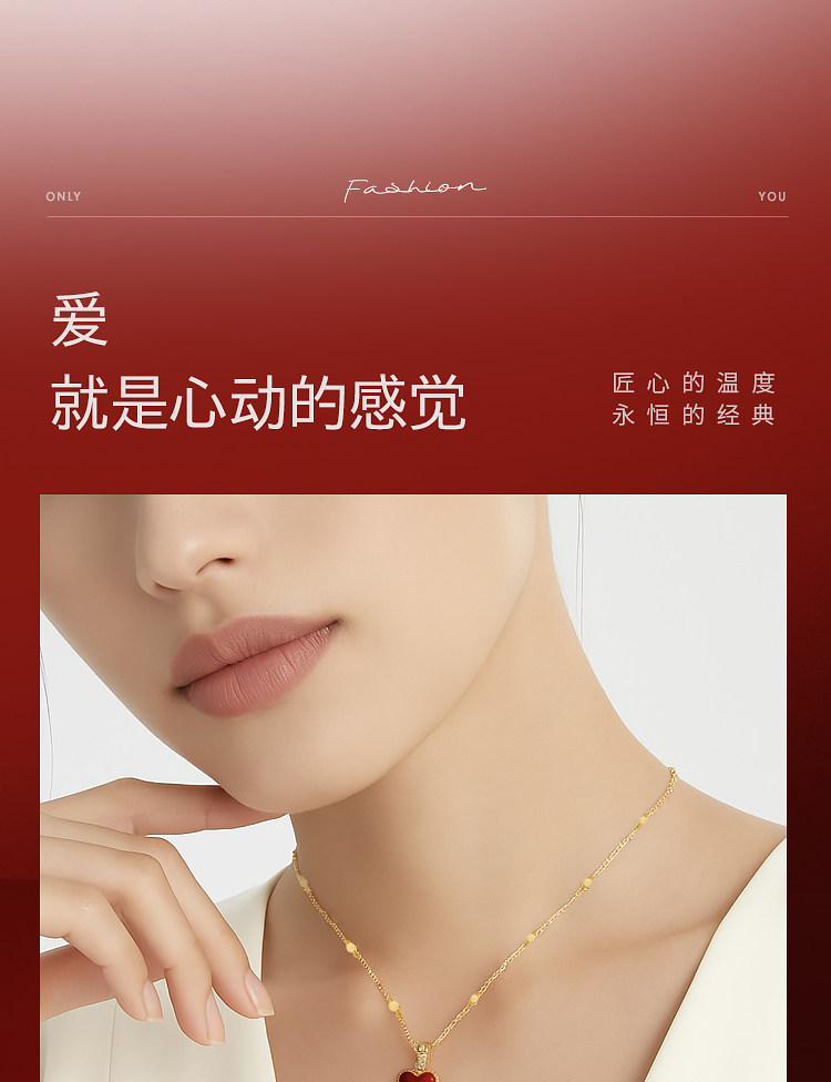 AJIDOU阿吉豆项链女款新年红色爱心毛衣链饰品圣诞礼物爱心锁骨链