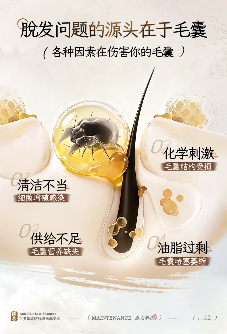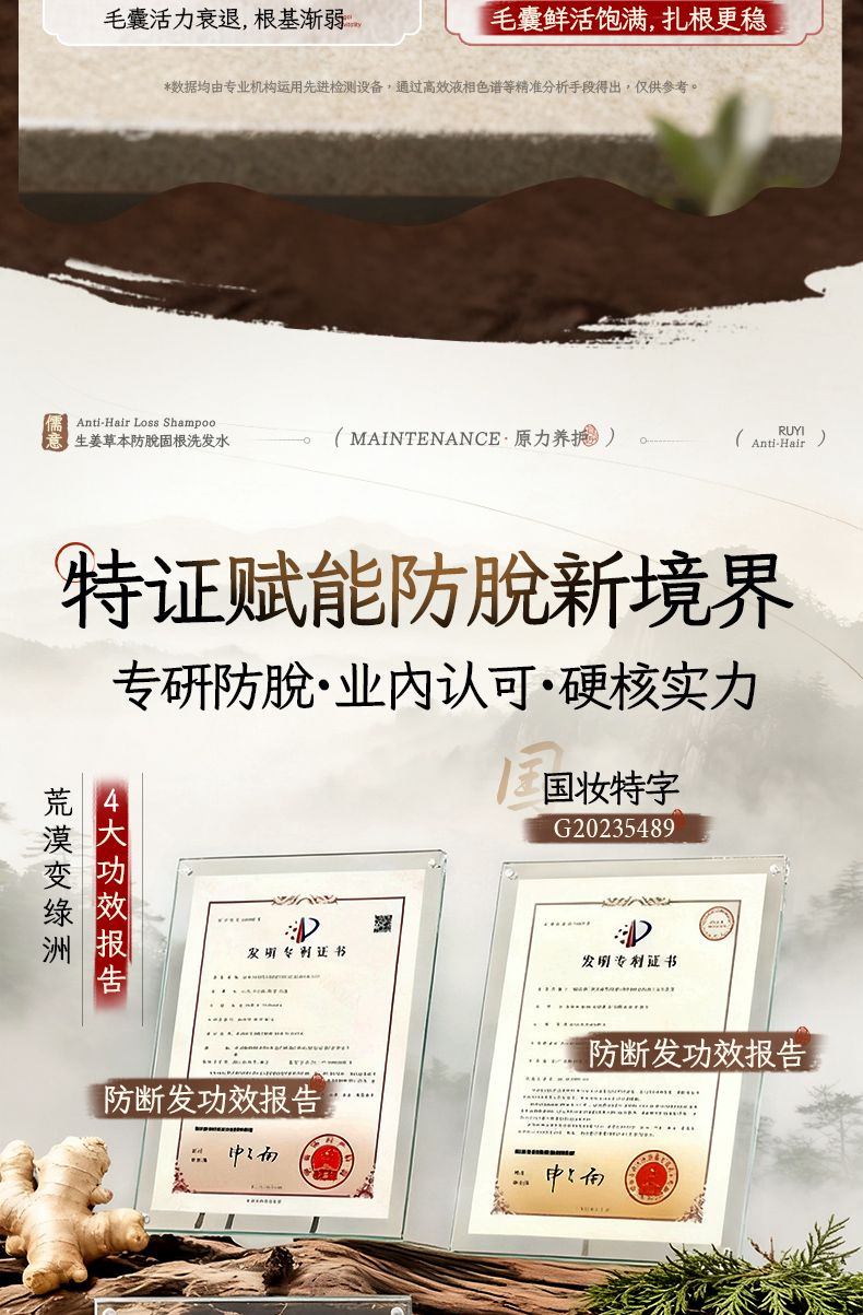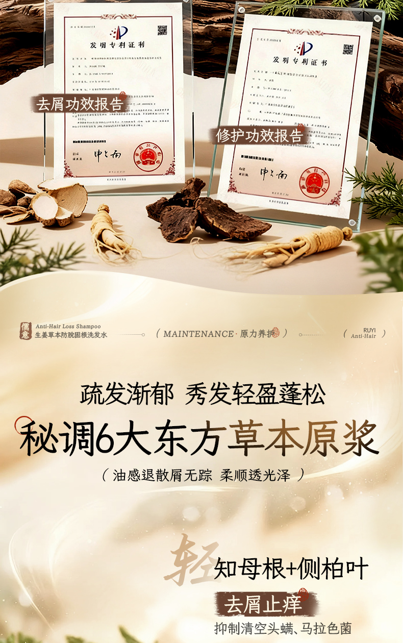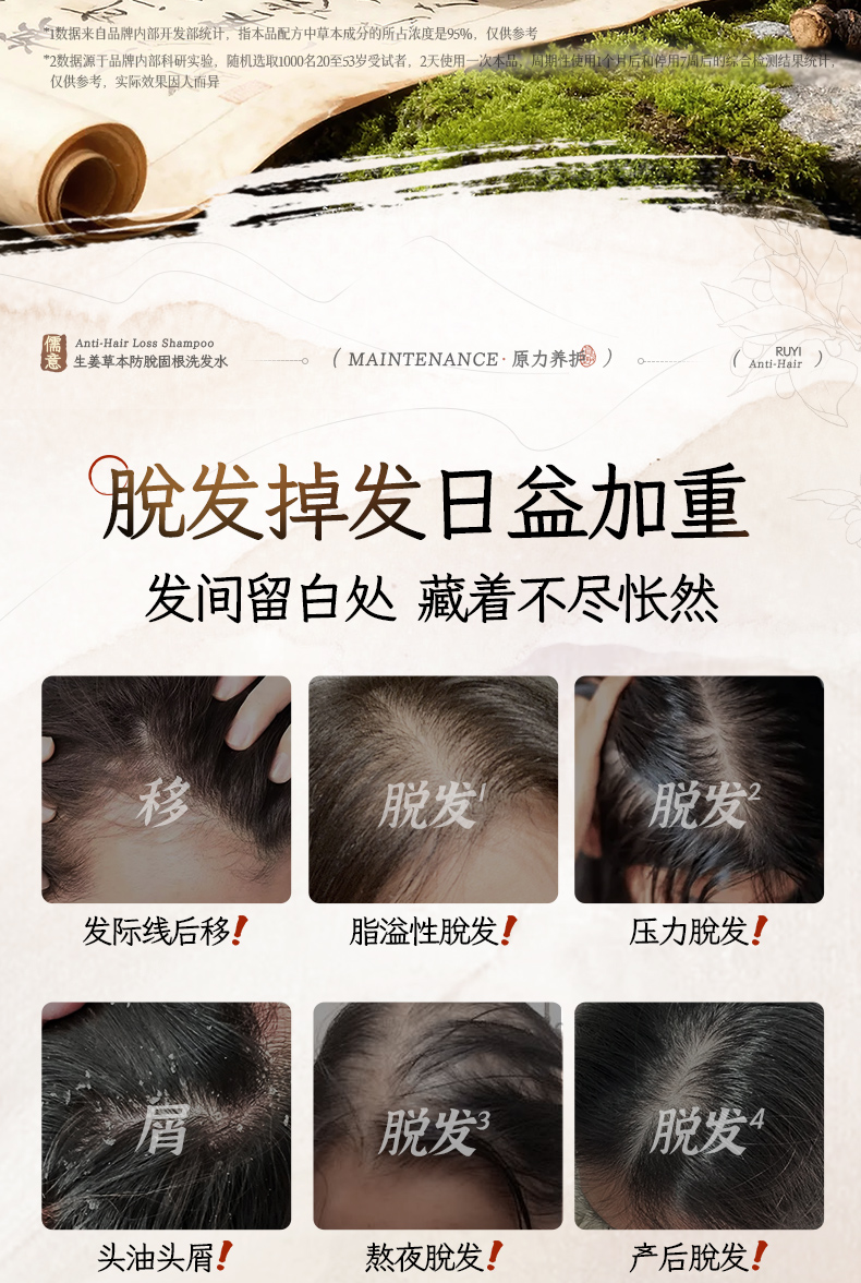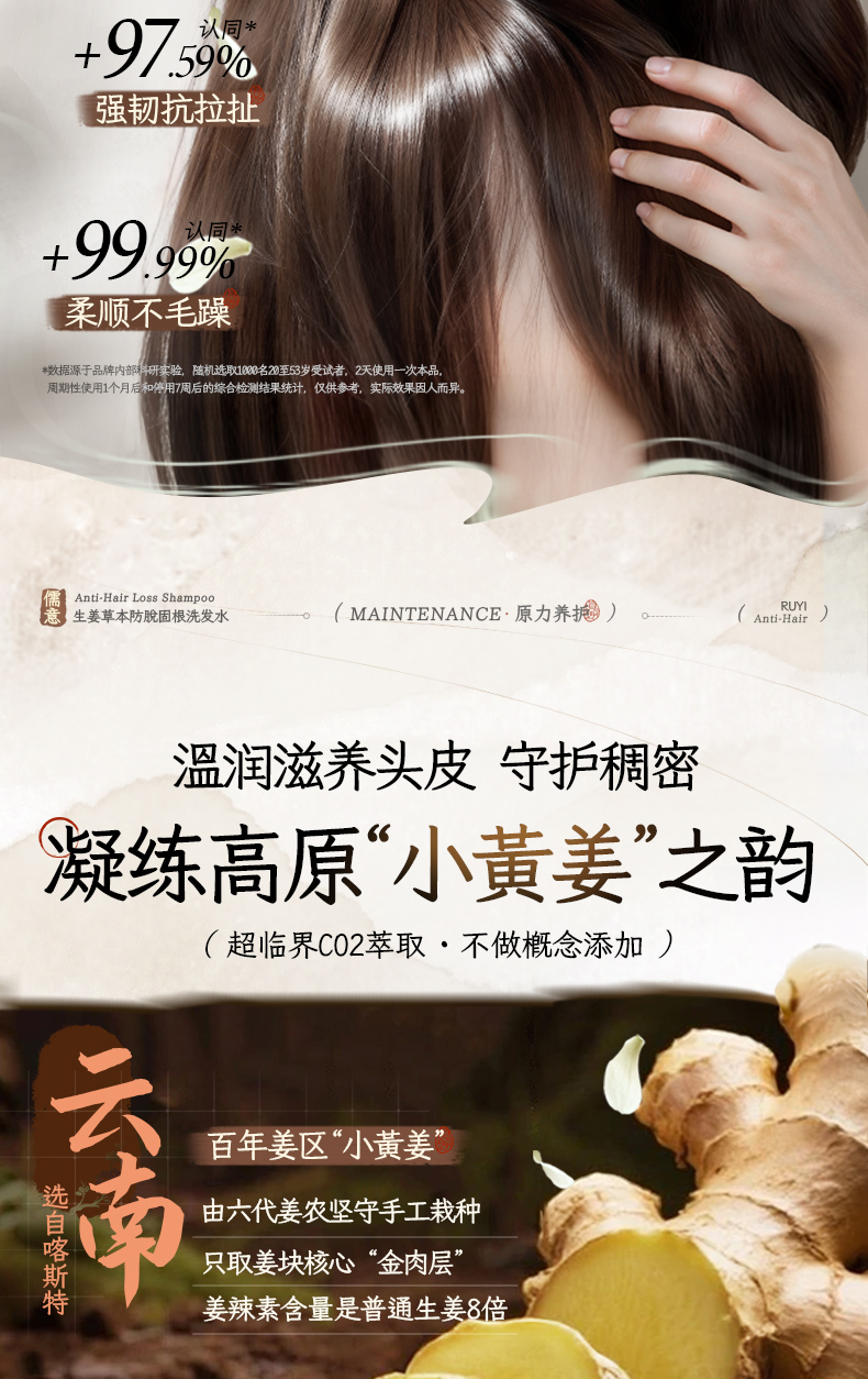 【防脱类国妆特字认证】儒意·防脱固根洗发水 8倍高活性小黄姜精华 激活毛囊 强健发根 72小时控油蓬松 去屑止痒 500ml/瓶