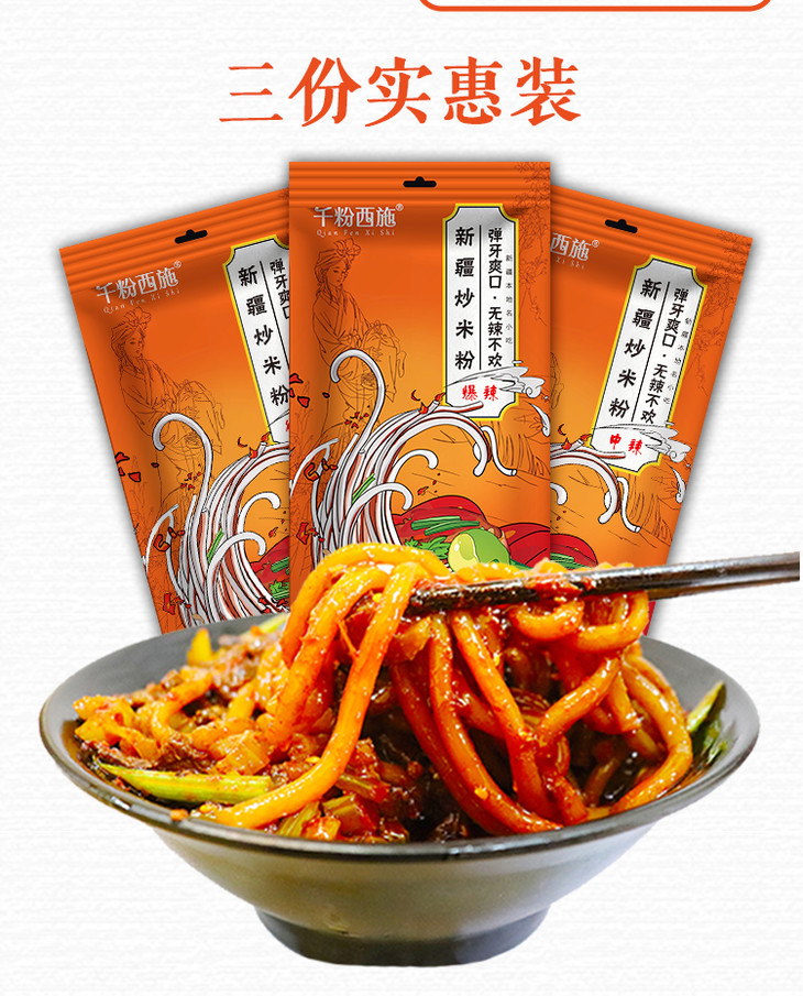 新疆爆中微辣网红炒米粉 干粉/湿粉 350g/份* 3