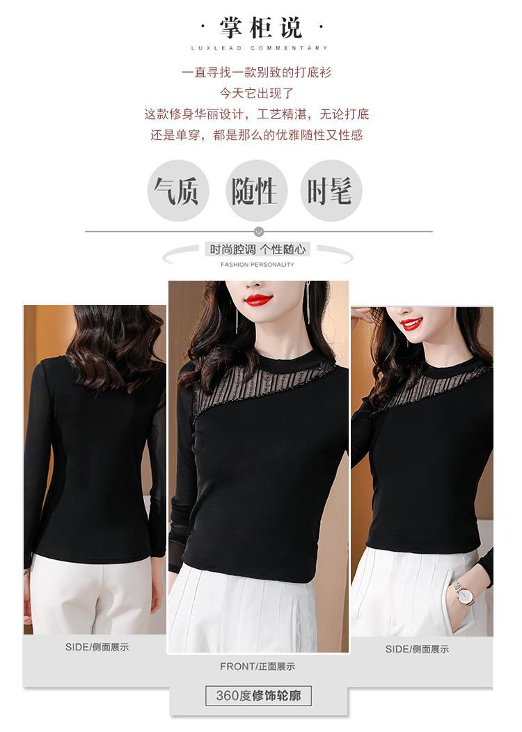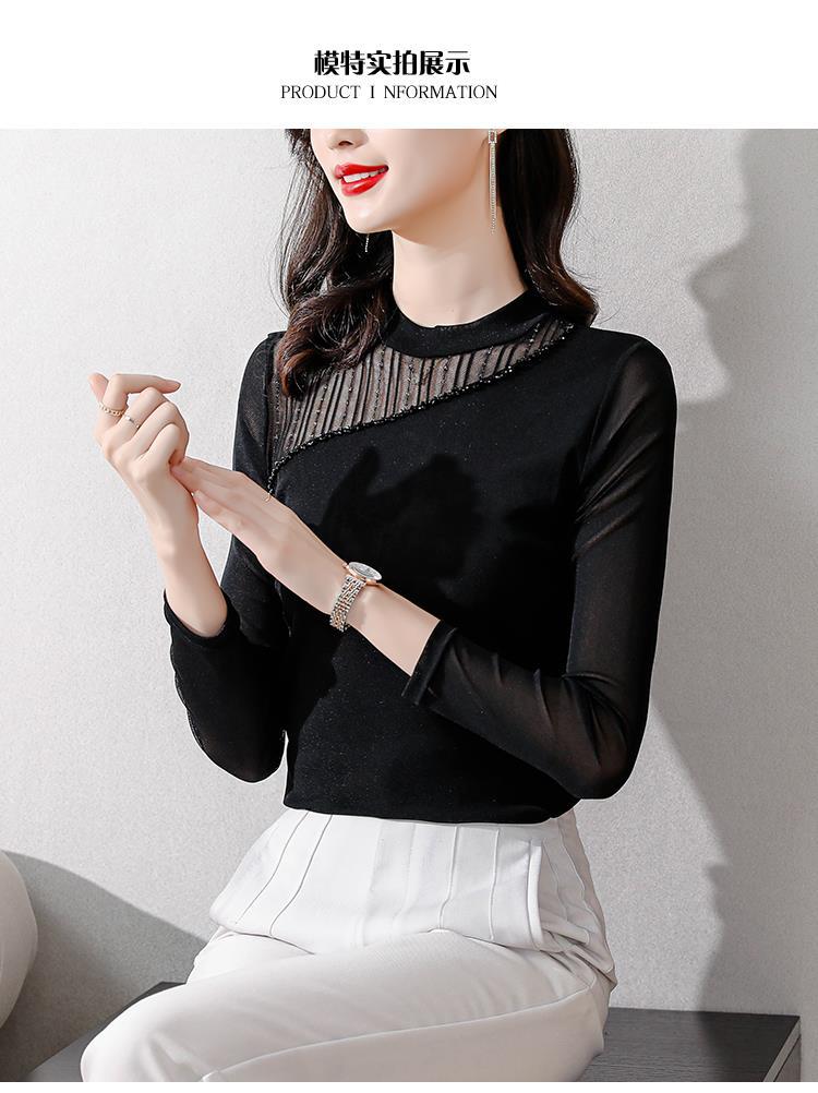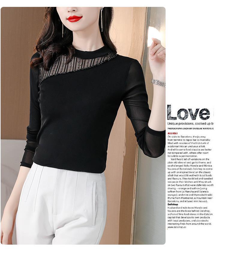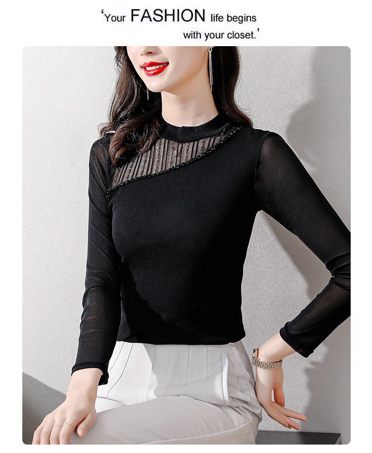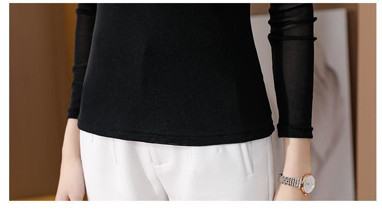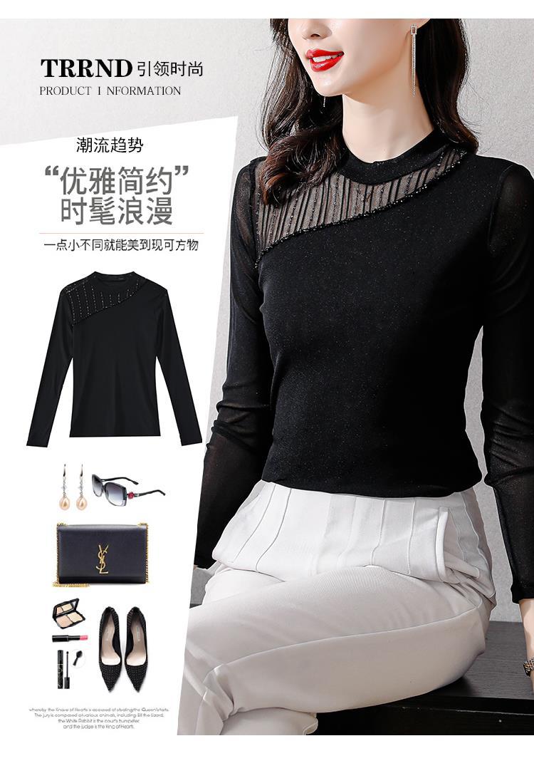 KQL 710N8171百搭爆款亮丝拼接洋气内搭长袖网纱上衣