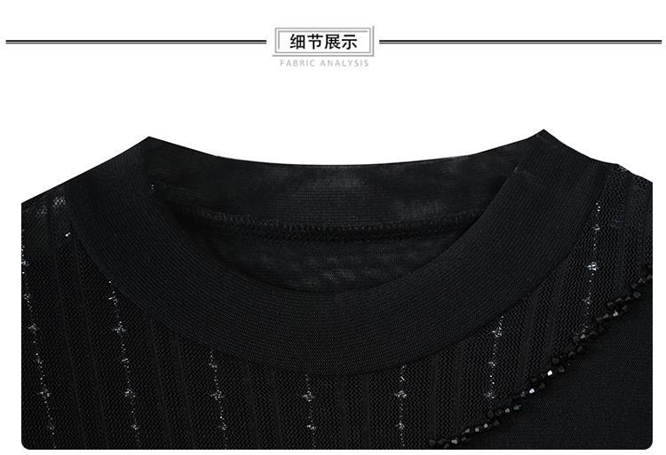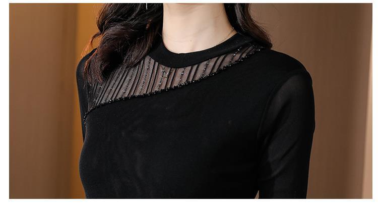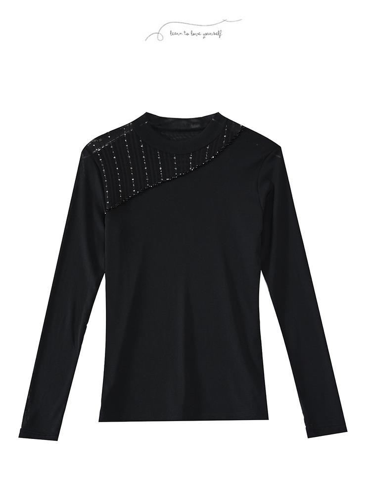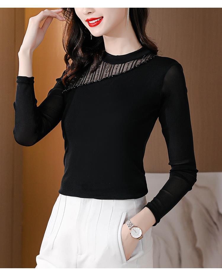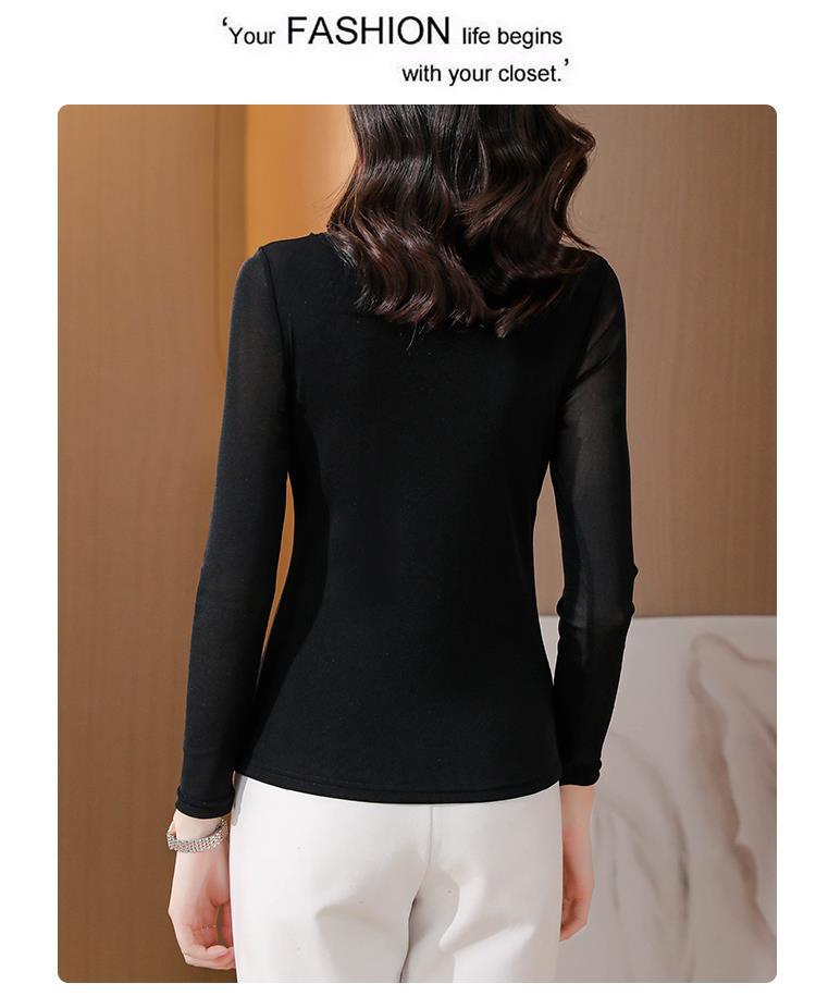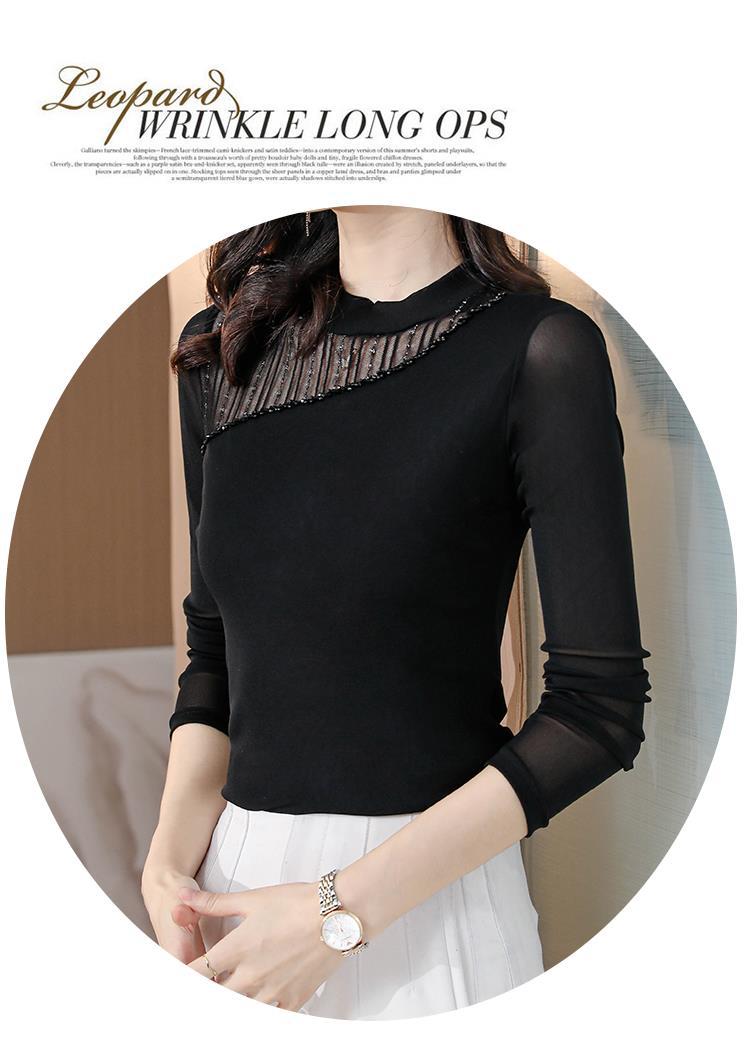 KQL 710N8171百搭爆款亮丝拼接洋气内搭长袖网纱上衣