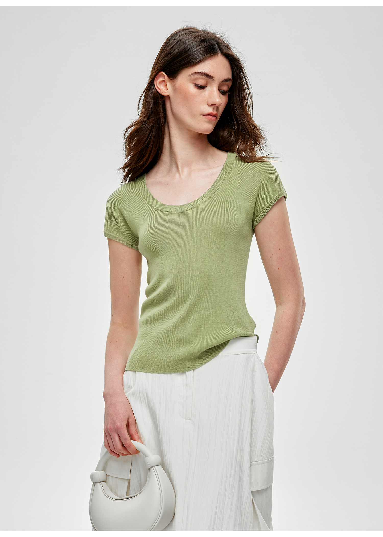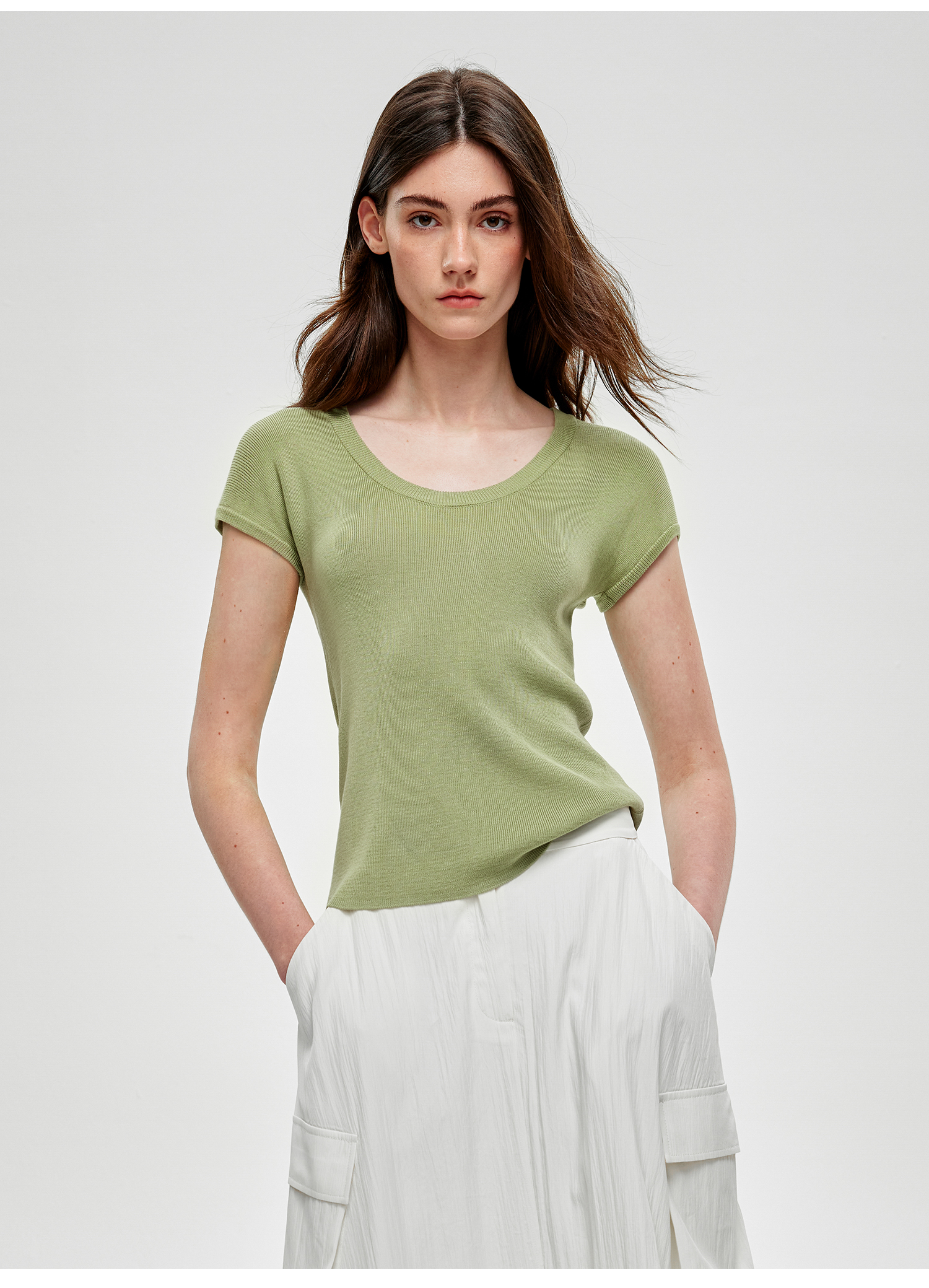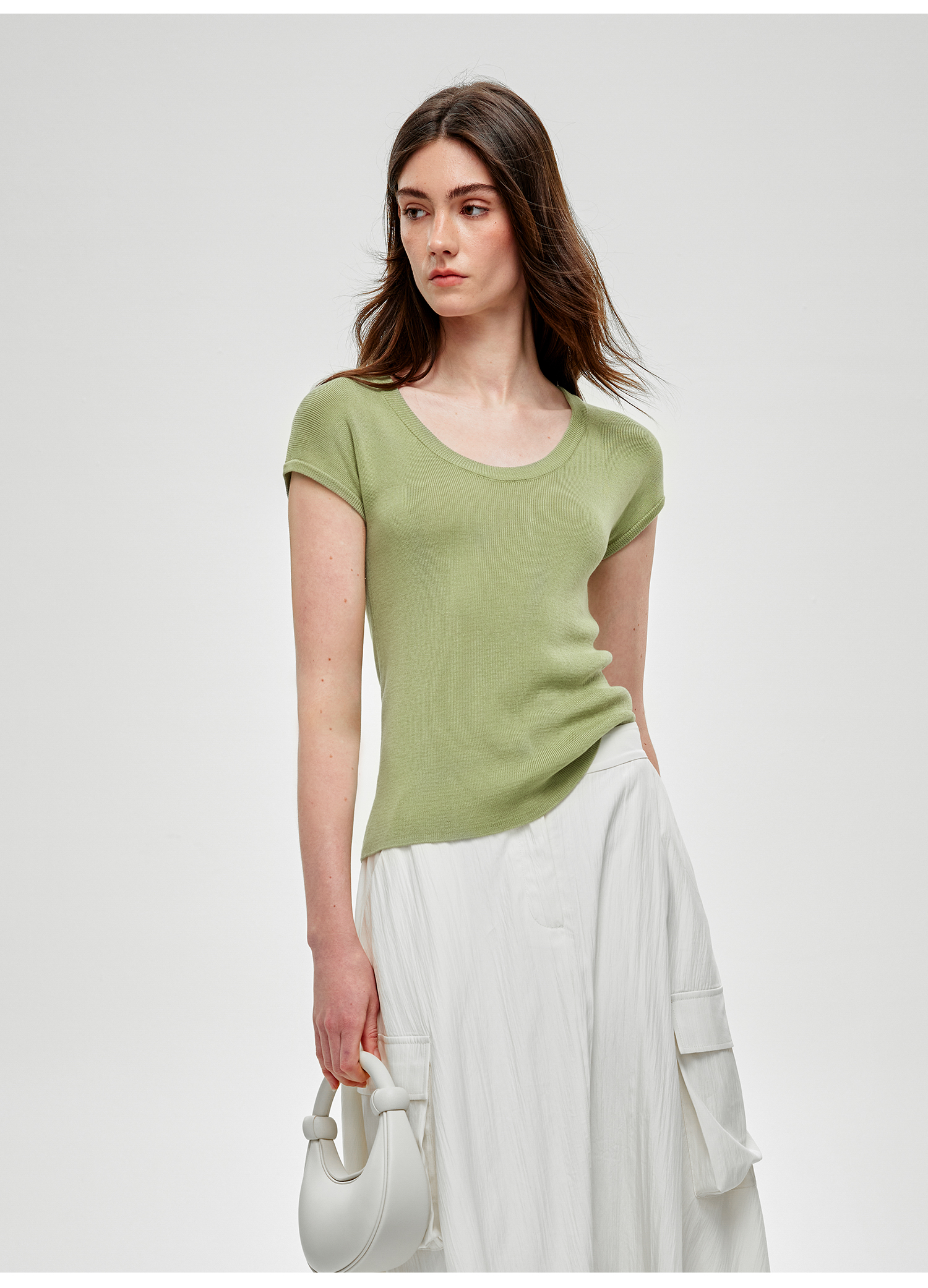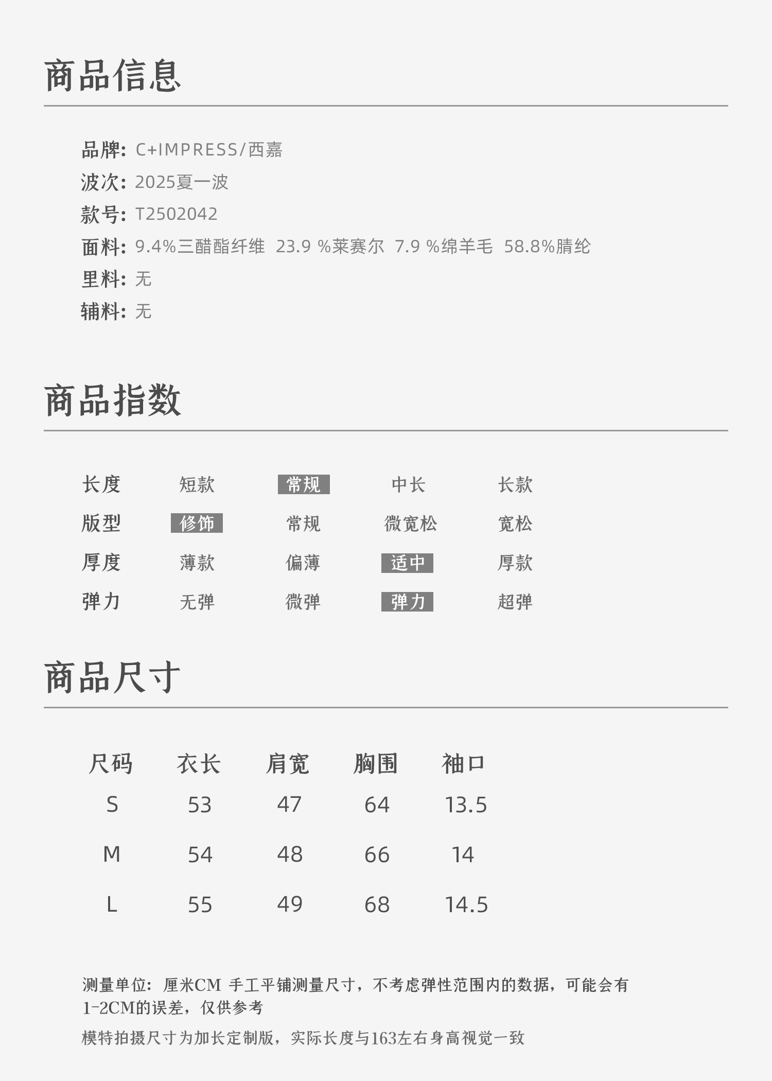 C+IMPRESS/西嘉小圆领短袖T恤女夏季修身显瘦针织上衣