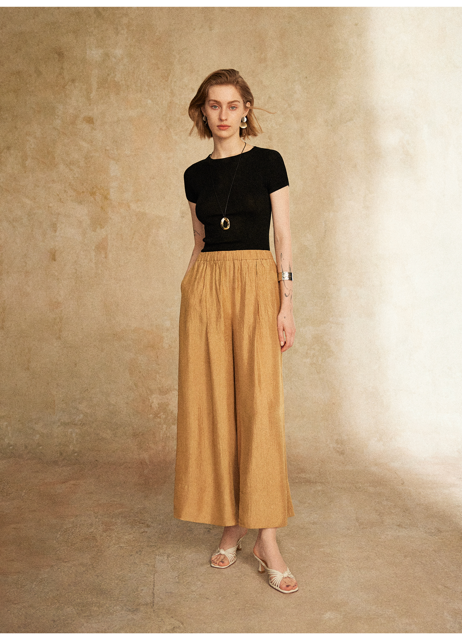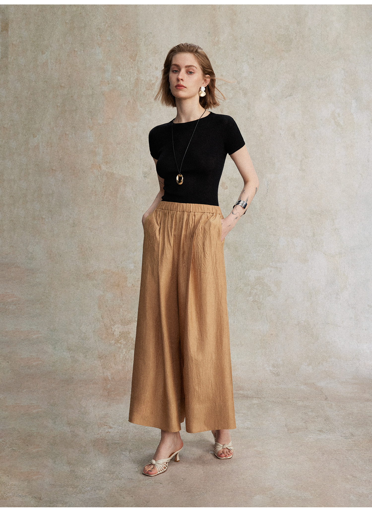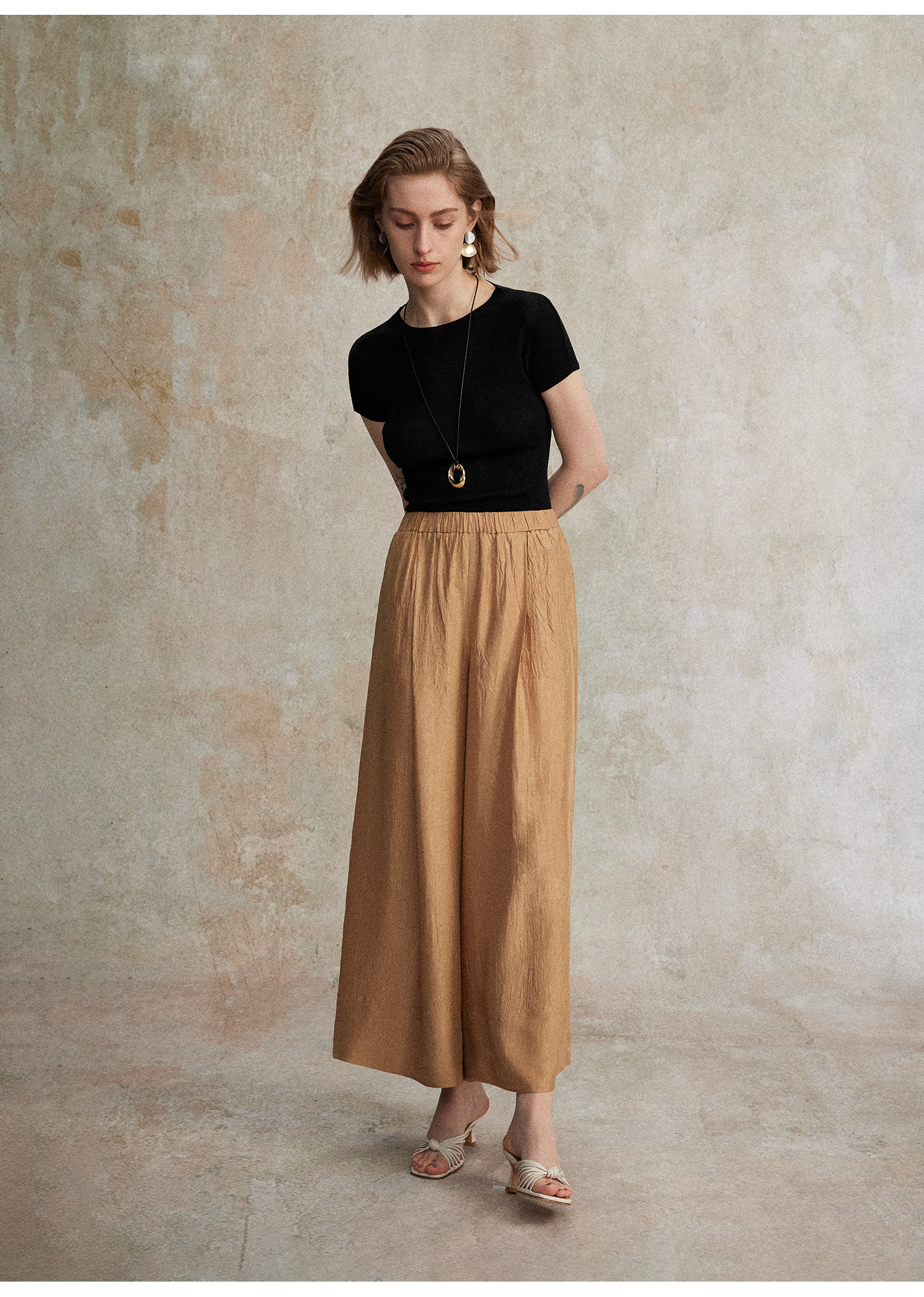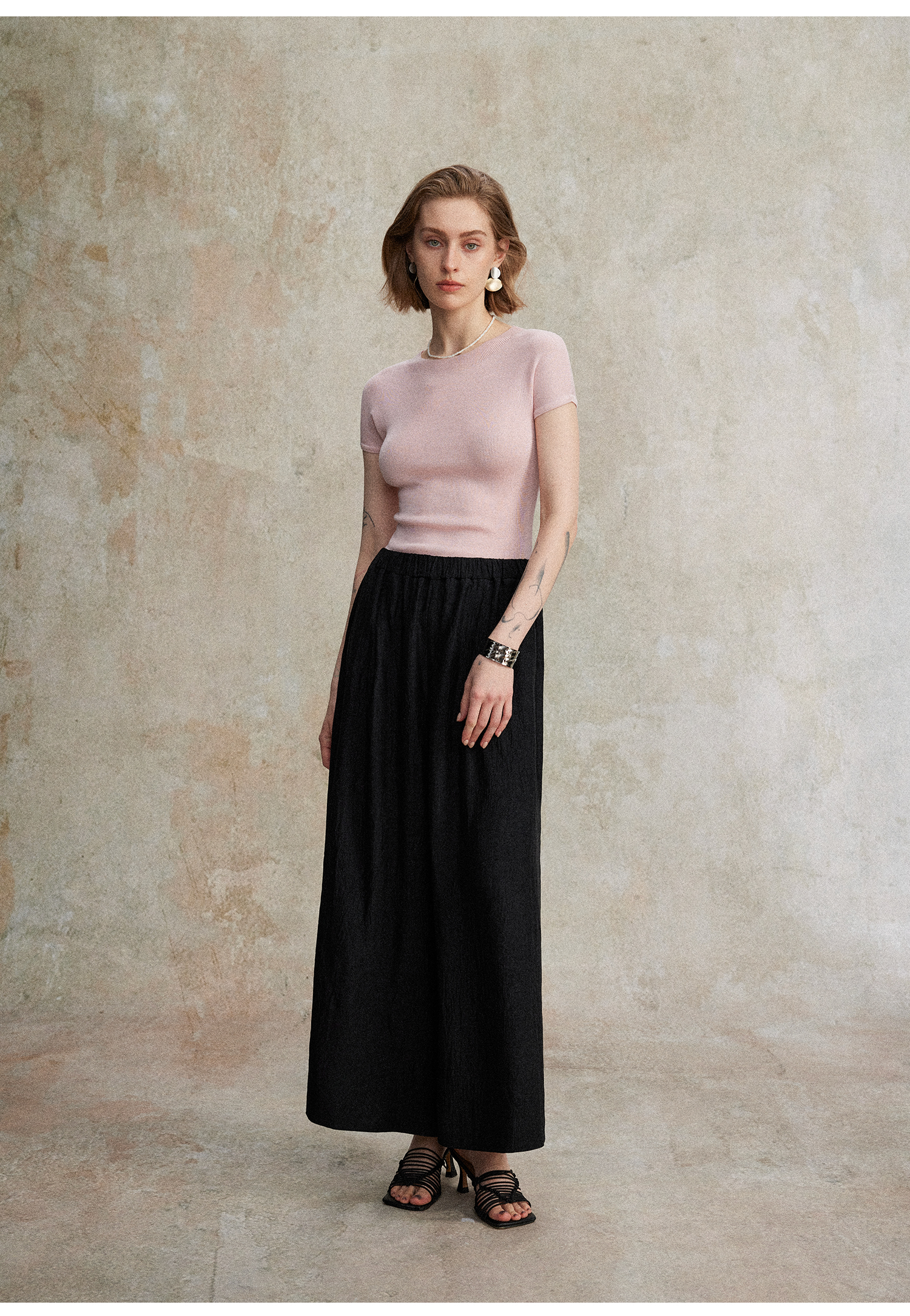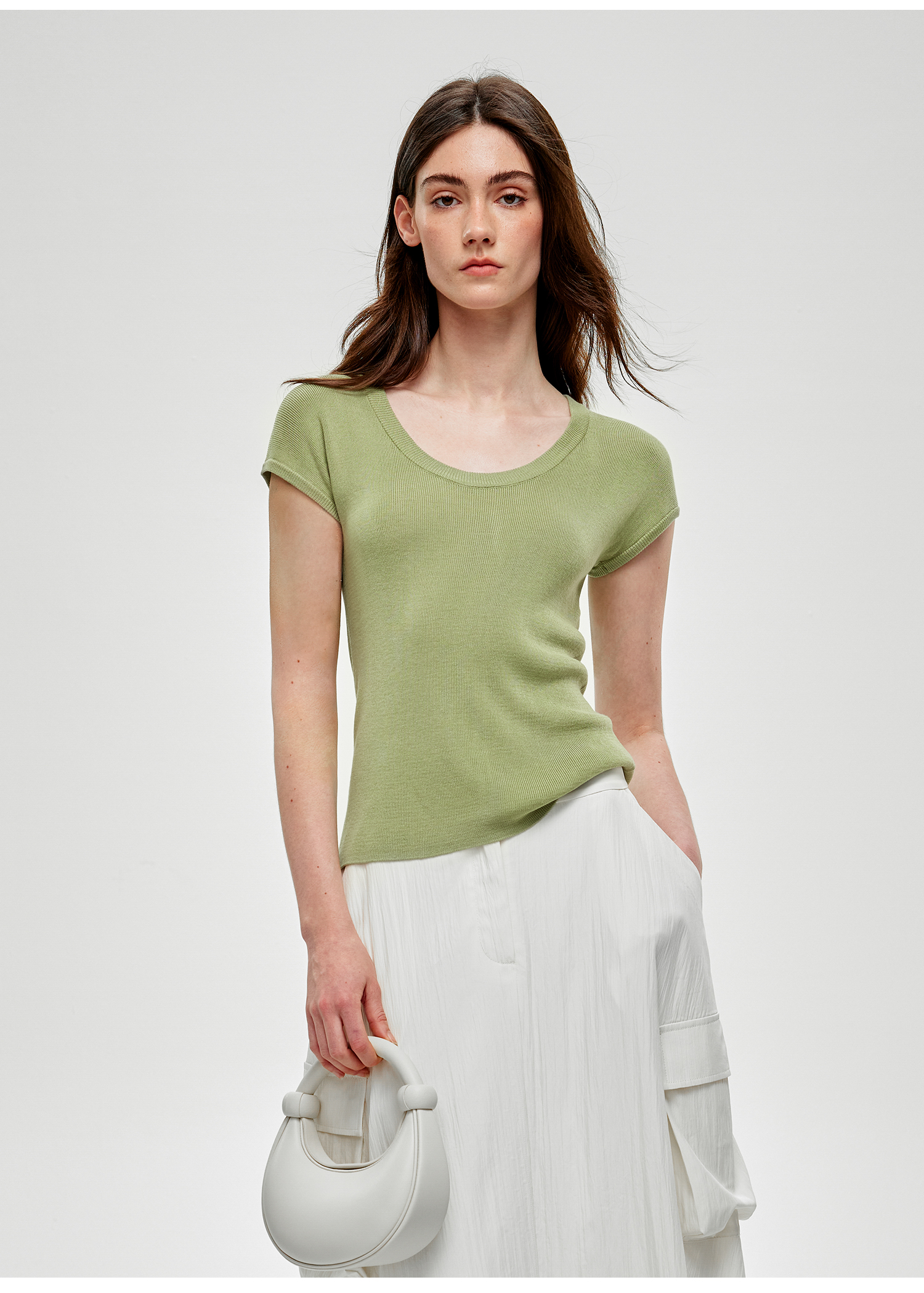 C+IMPRESS/西嘉小圆领短袖T恤女夏季修身显瘦针织上衣
