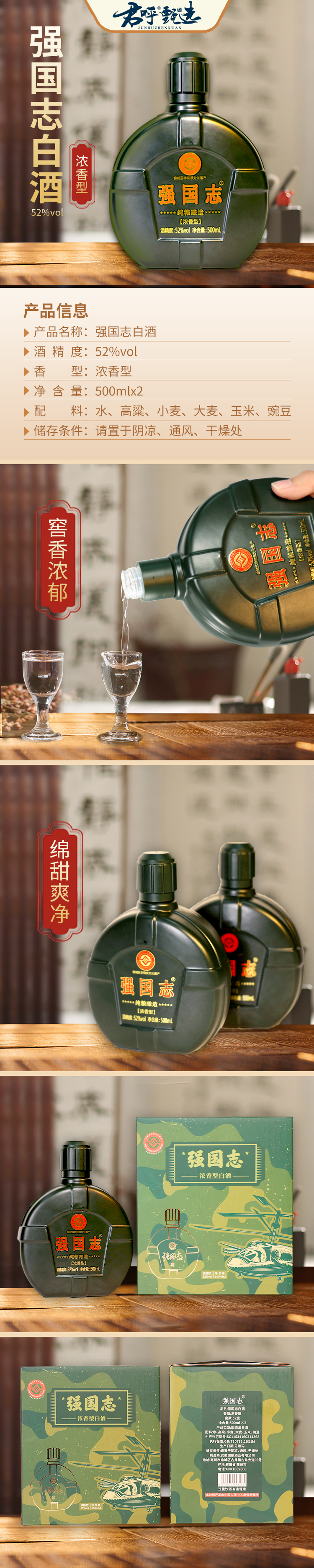 君呼甄选 强国志水壶酒 2瓶礼盒装