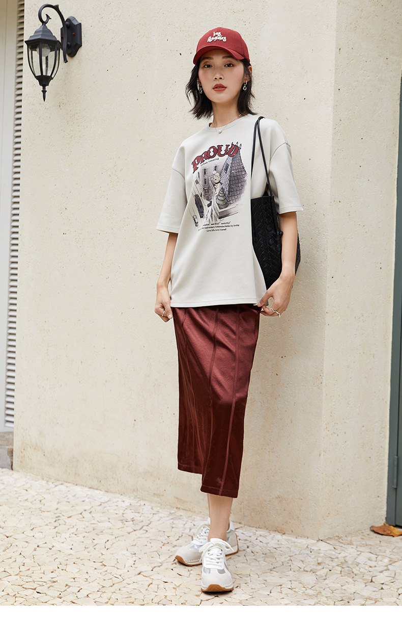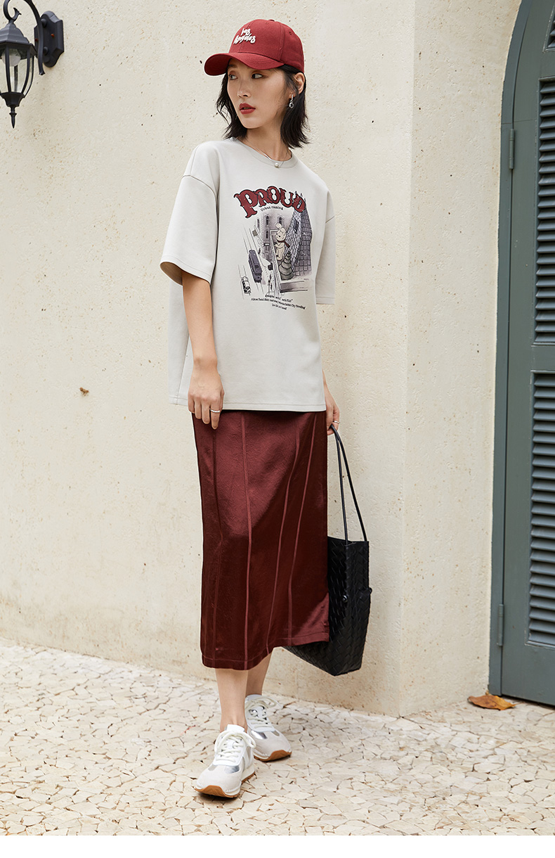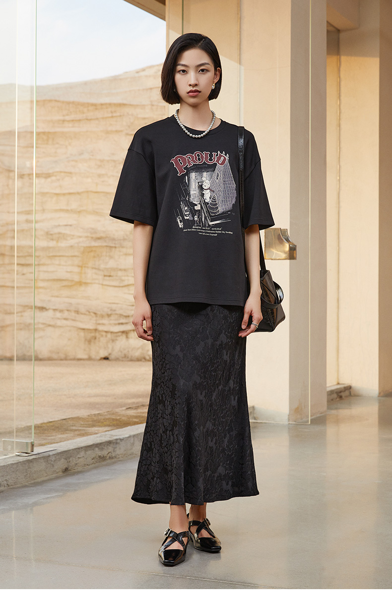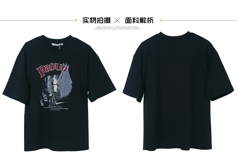 复古风拿捏~黑色印花 T 恤女 宽松短袖 个性图案潮酷上衣