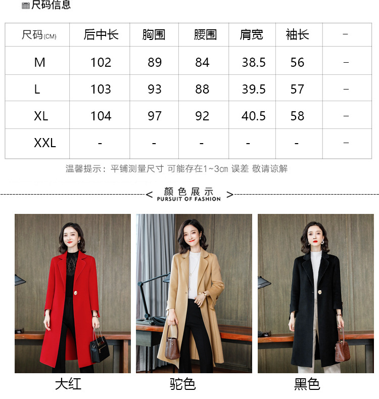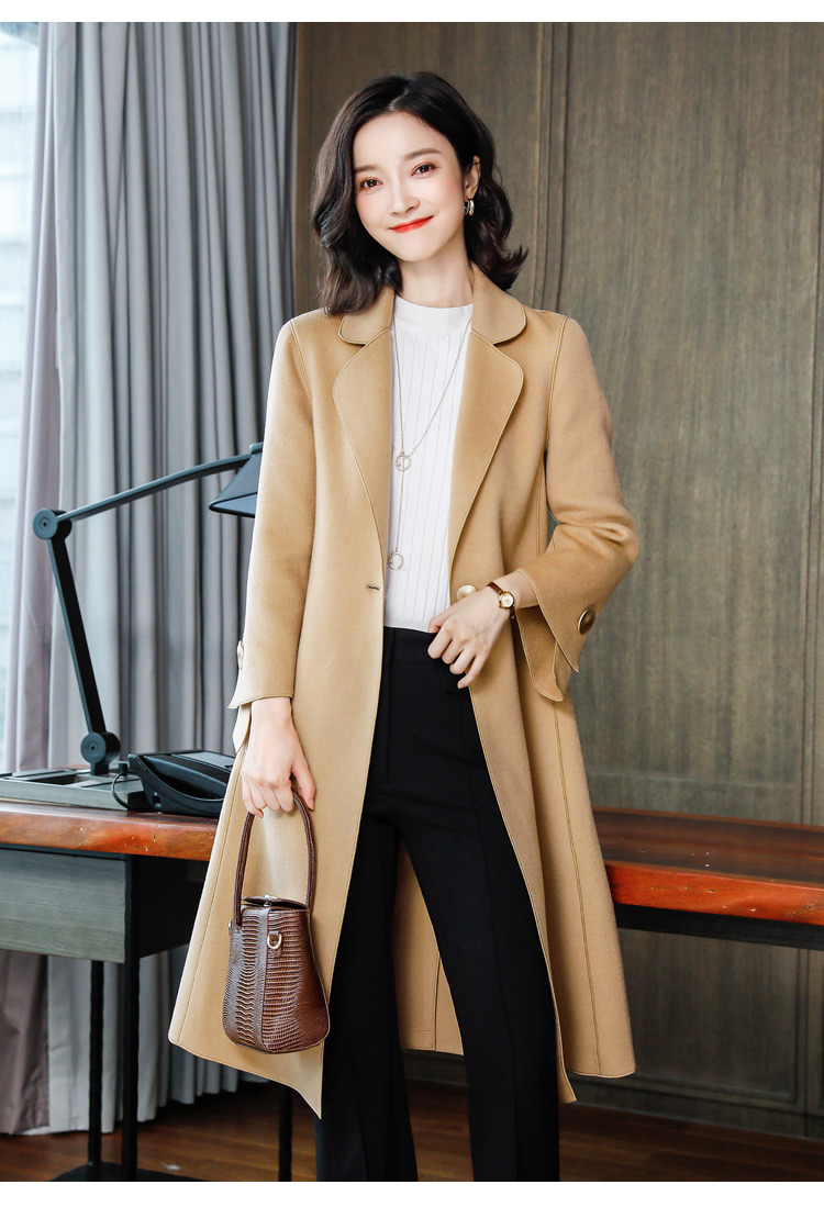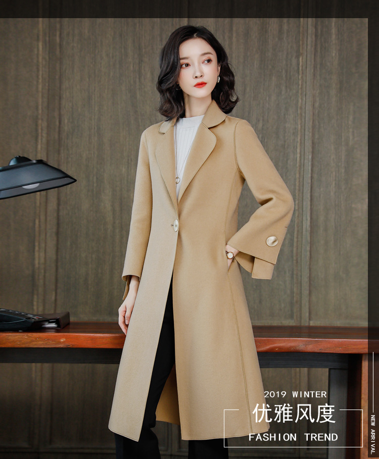 上海旗袍厂XY-1961双面羊绒大衣女中长款2019年新款韩版气质修身驼色高端羊毛呢外套