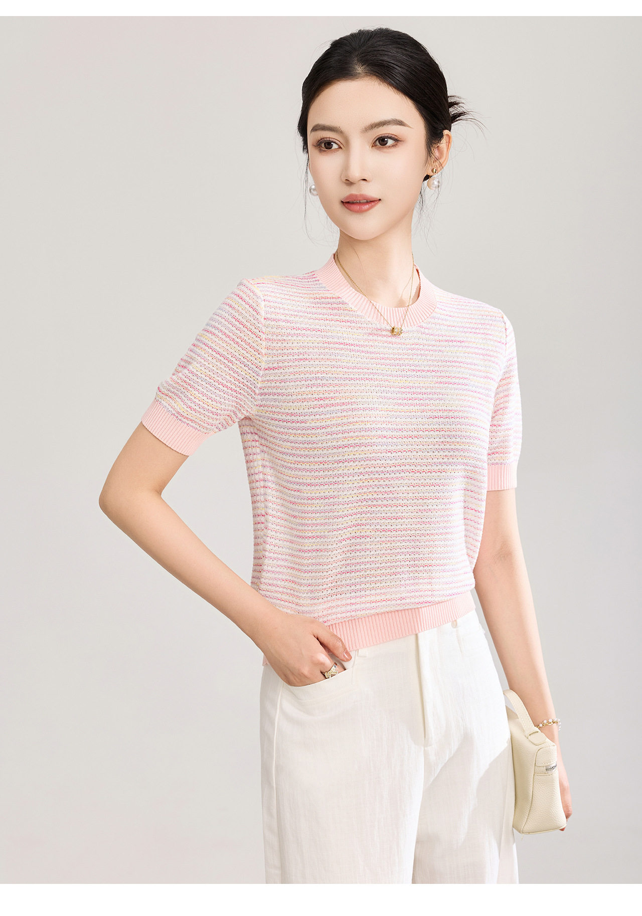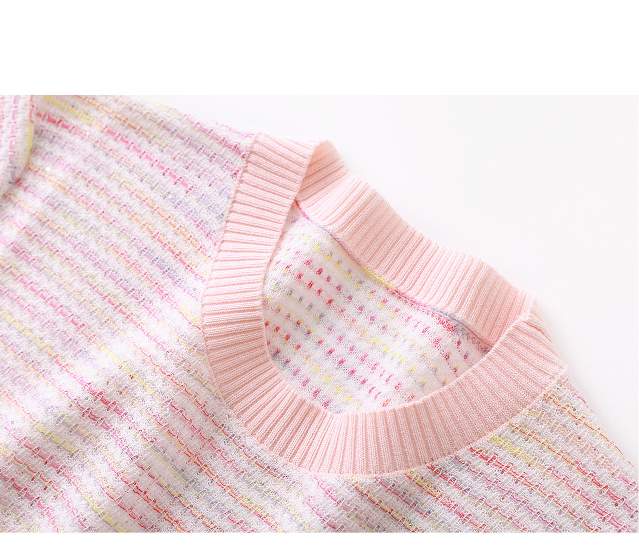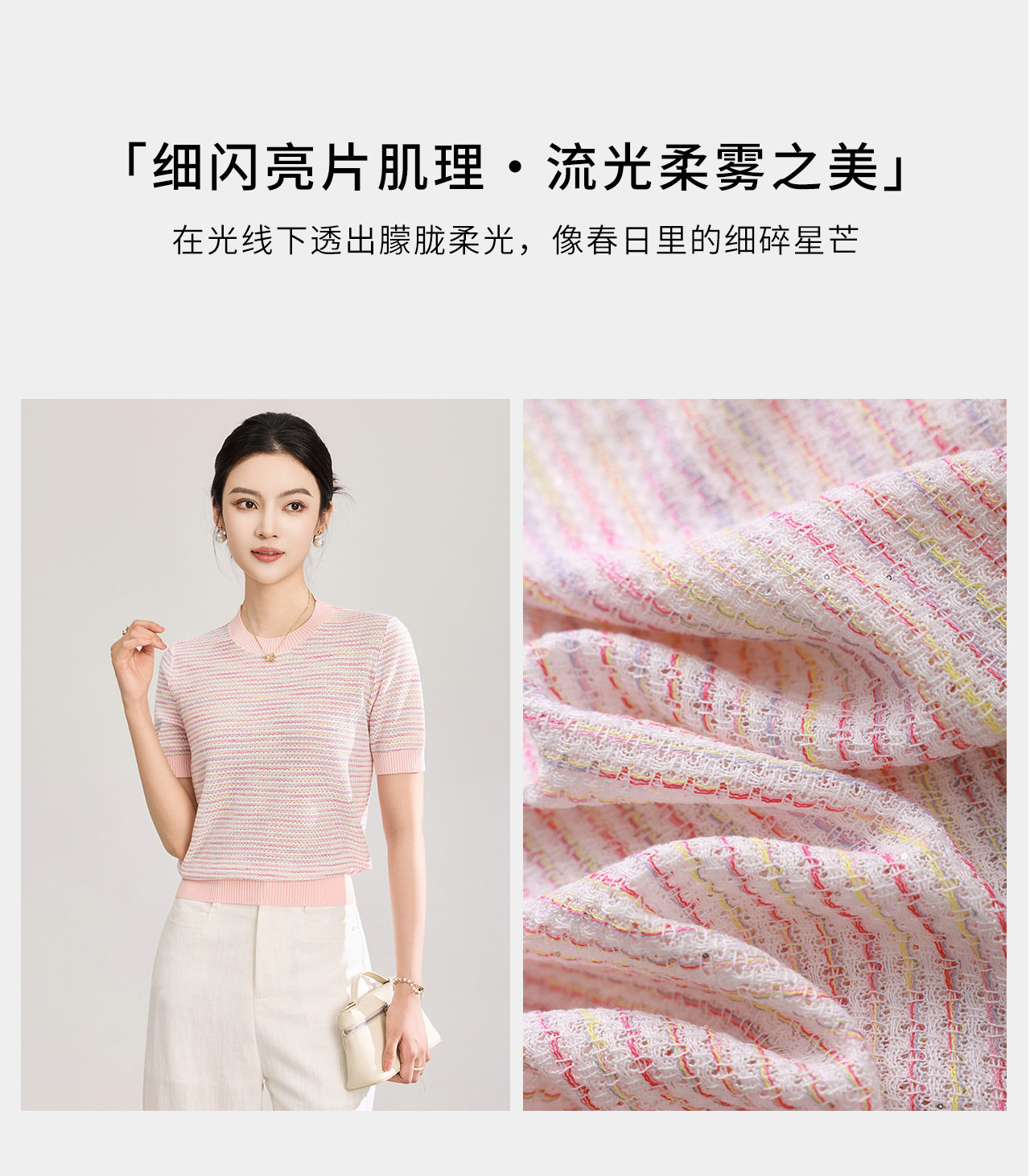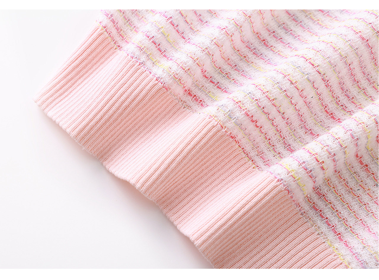 「高货wl」全新升级【铂金会员201/天猫269/差价68】(11629)洛诗琳立体挑孔织花上衣2026春夏双曲珠片纱小香风针织T恤