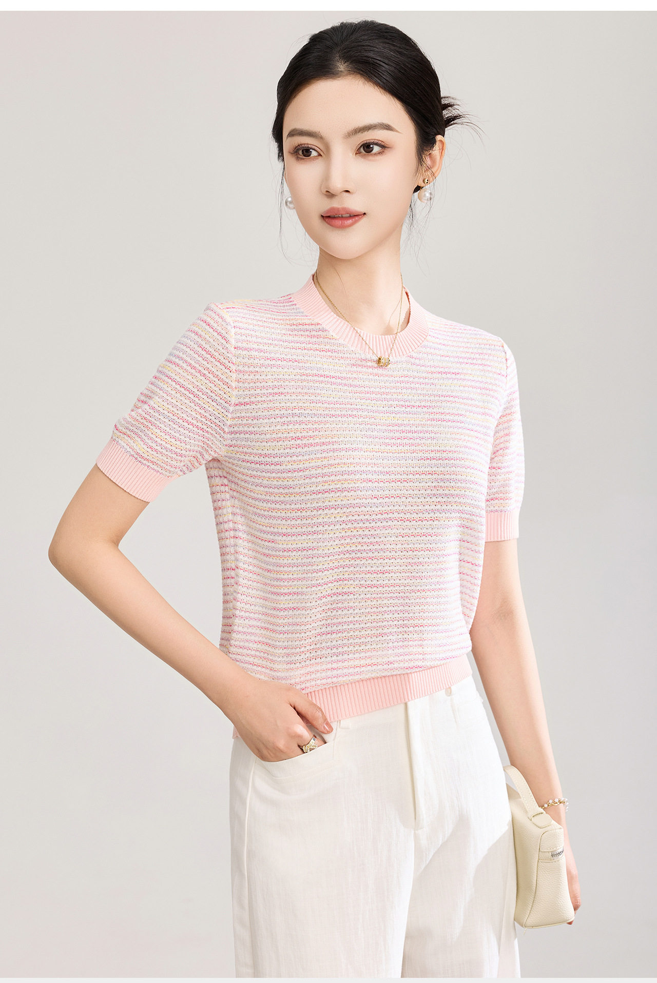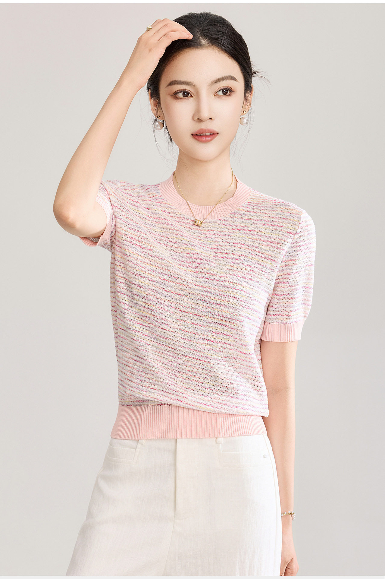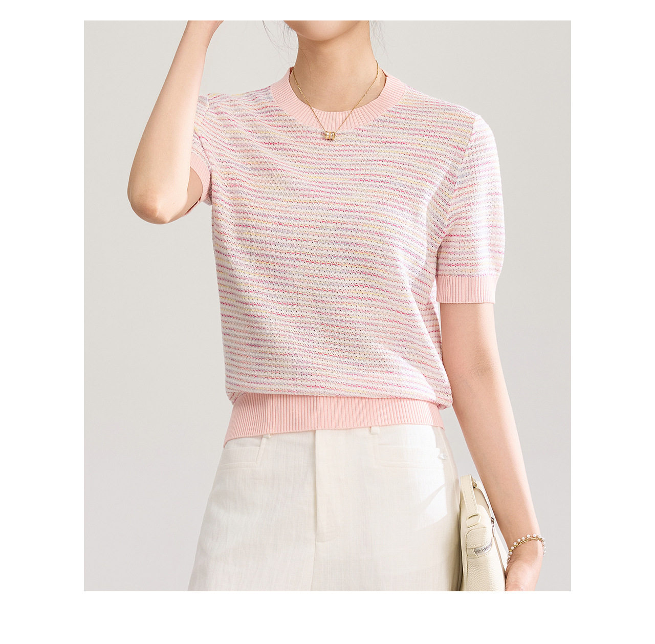 「高货wl」全新升级【铂金会员201/天猫269/差价68】(11629)洛诗琳立体挑孔织花上衣2026春夏双曲珠片纱小香风针织T恤