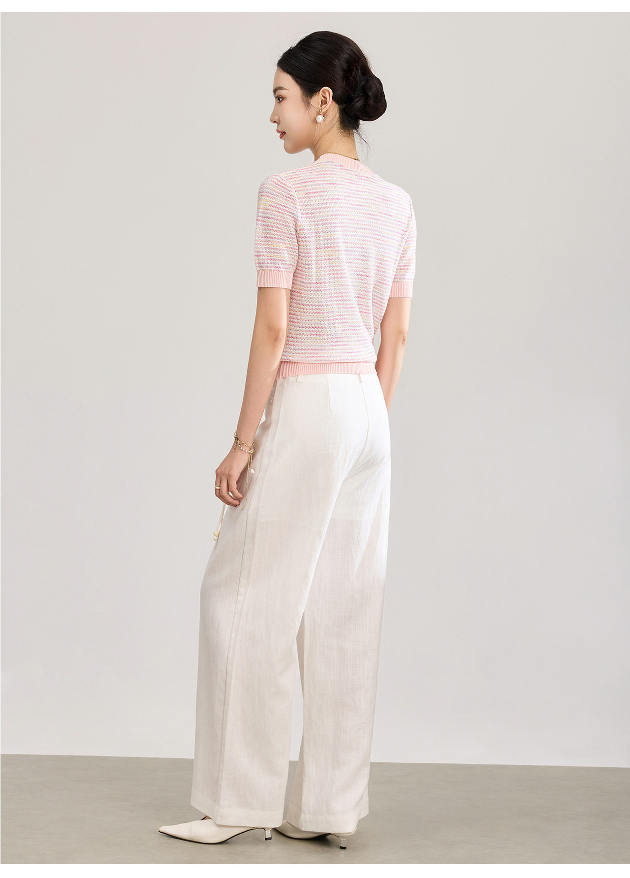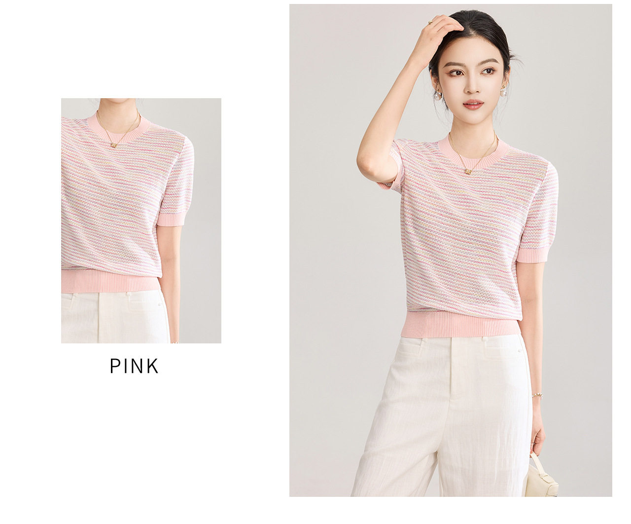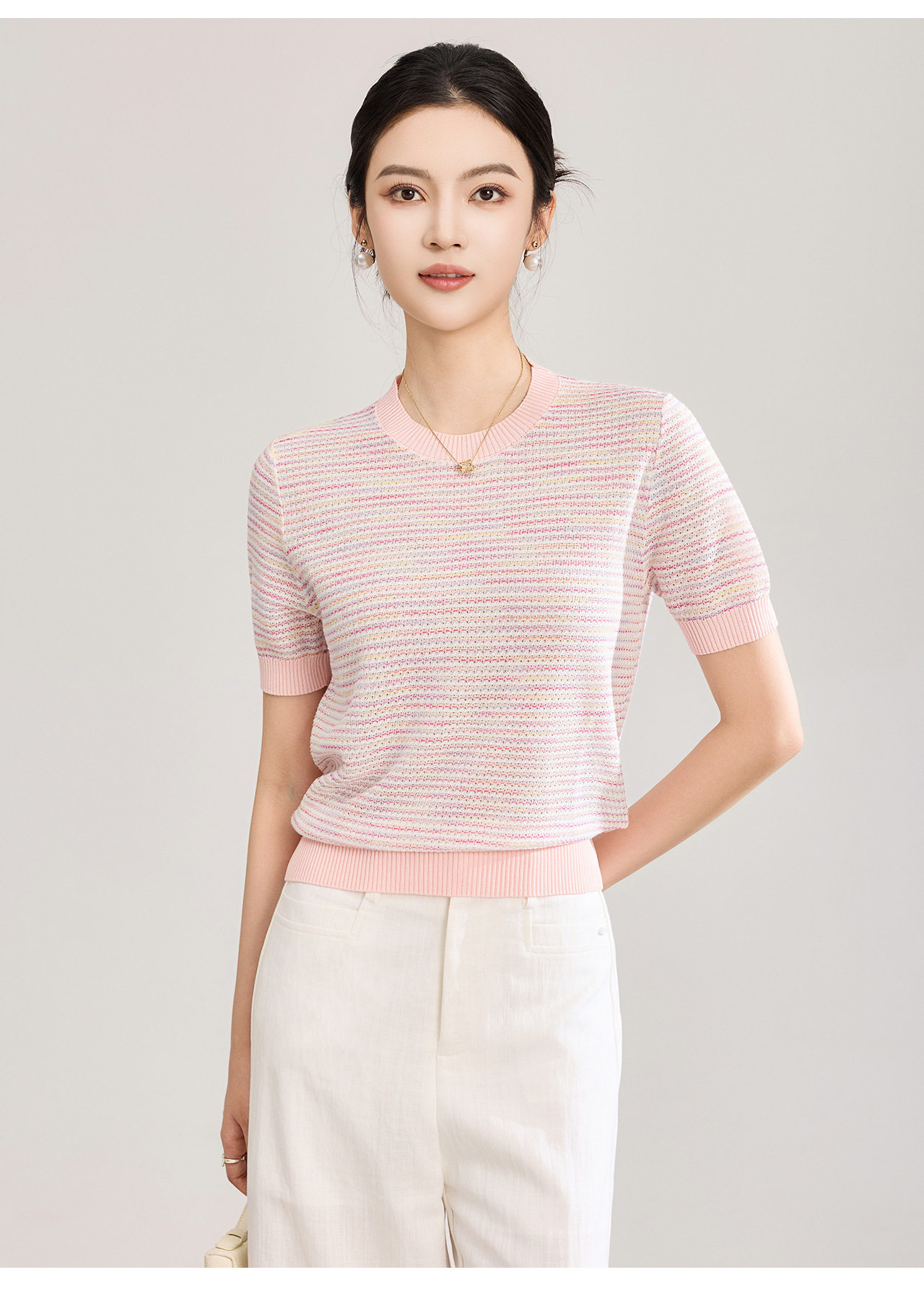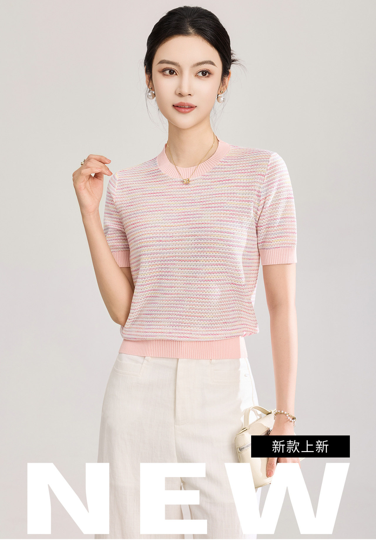 「高货wl」全新升级【铂金会员201/天猫269/差价68】(11629)洛诗琳立体挑孔织花上衣2026春夏双曲珠片纱小香风针织T恤