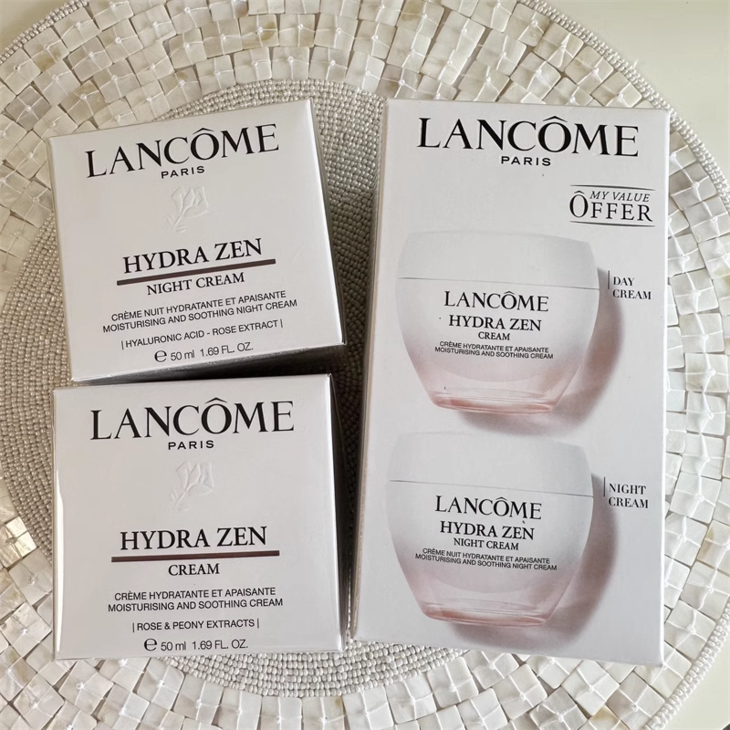 👑兰蔻水份缘舒悦日晚霜套装 新版 👍🏻 全新添加海洋茴香精华,舒缓肌肤,加强肌肤天然锁水屏障。 🎈 全新独有亚洲配方,创造更长效的锁水保湿效果,更温和安全‼️ 🙌即使面对敏感性肌肤,同样温和高效。 😁强力对抗外界环境与内在情绪导致的肌肤压力,安抚并疏解肌肤的紧绷状态 💪润泽后的肌肤,变得神采奕奕,彻底获得释放,自由深呼吸 【套盒包括】:日霜+晚霜各50ml(014835)