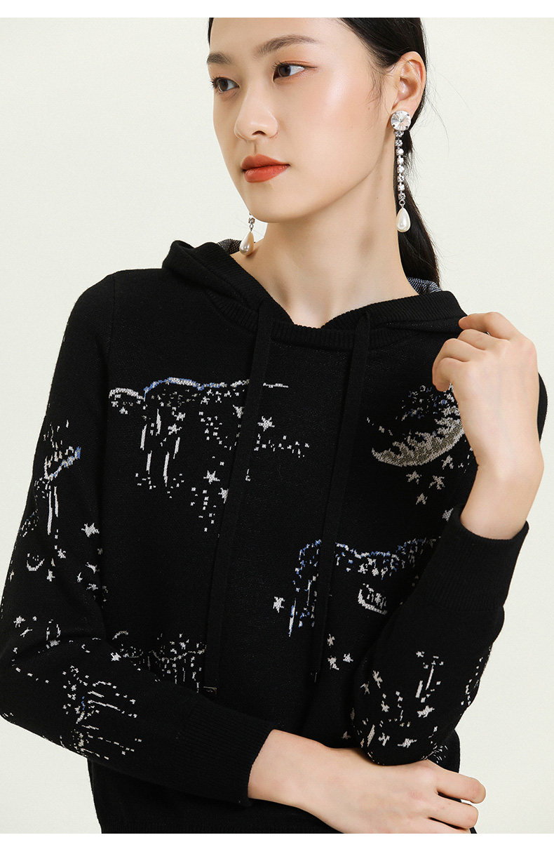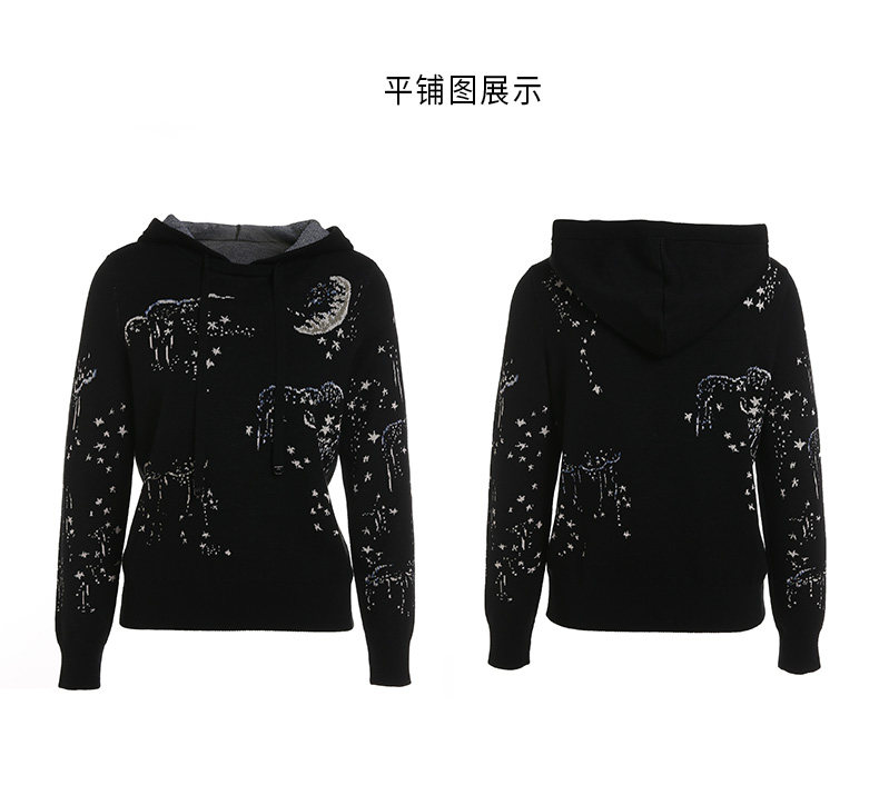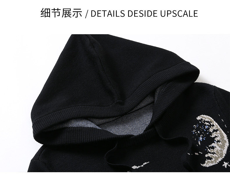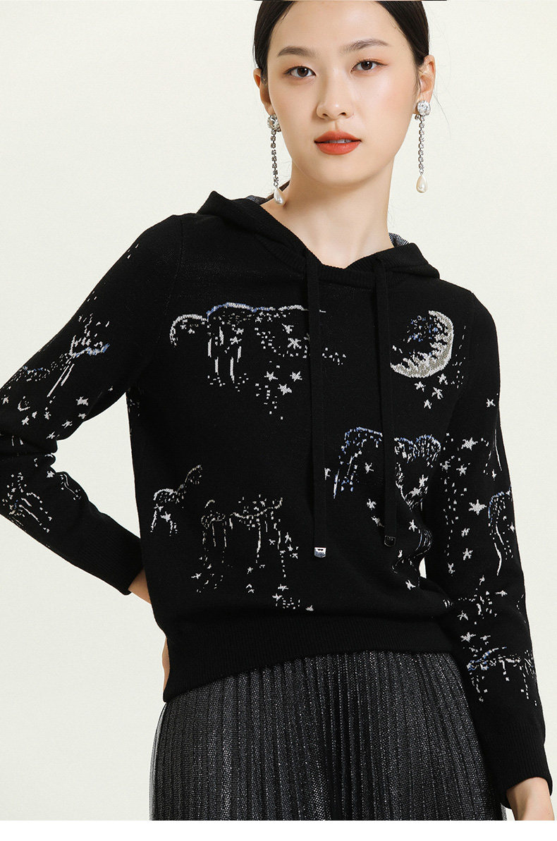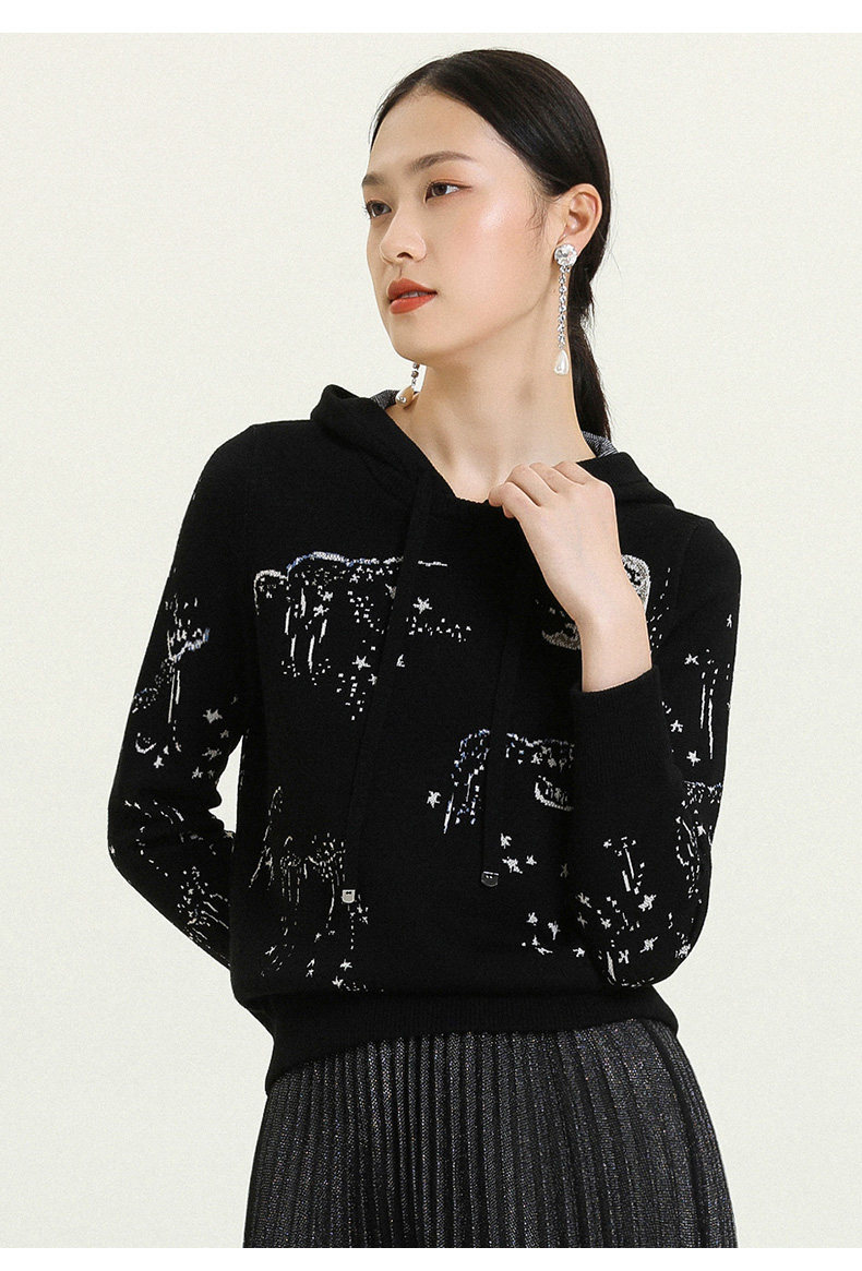 乔万尼秋冬新款连帽设计卫衣款套头提花羊毛针织毛衫上衣ES4M388