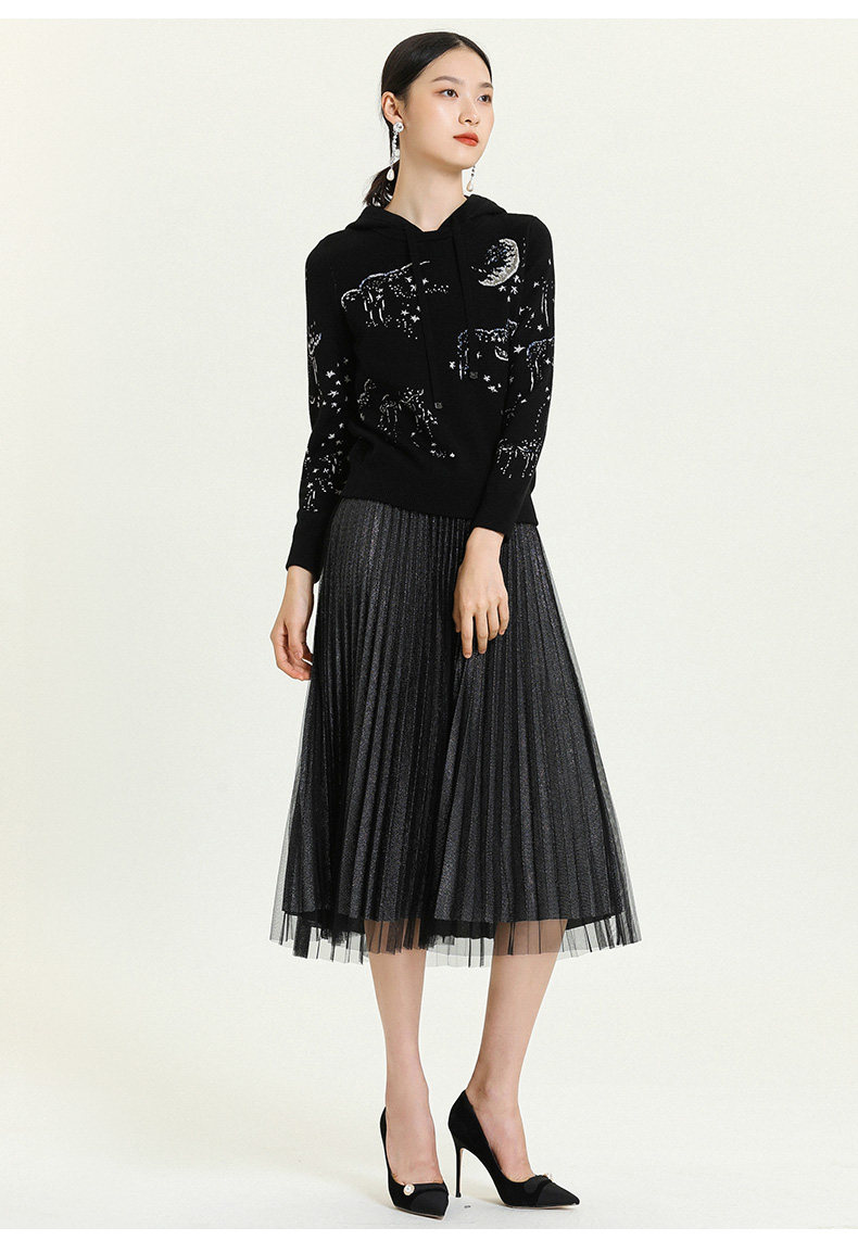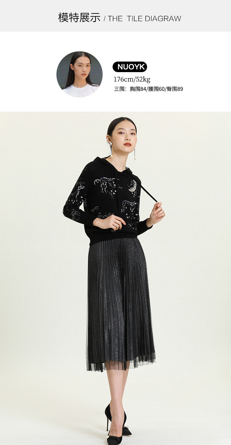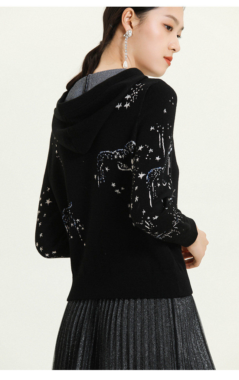 乔万尼秋冬新款连帽设计卫衣款套头提花羊毛针织毛衫上衣ES4M388