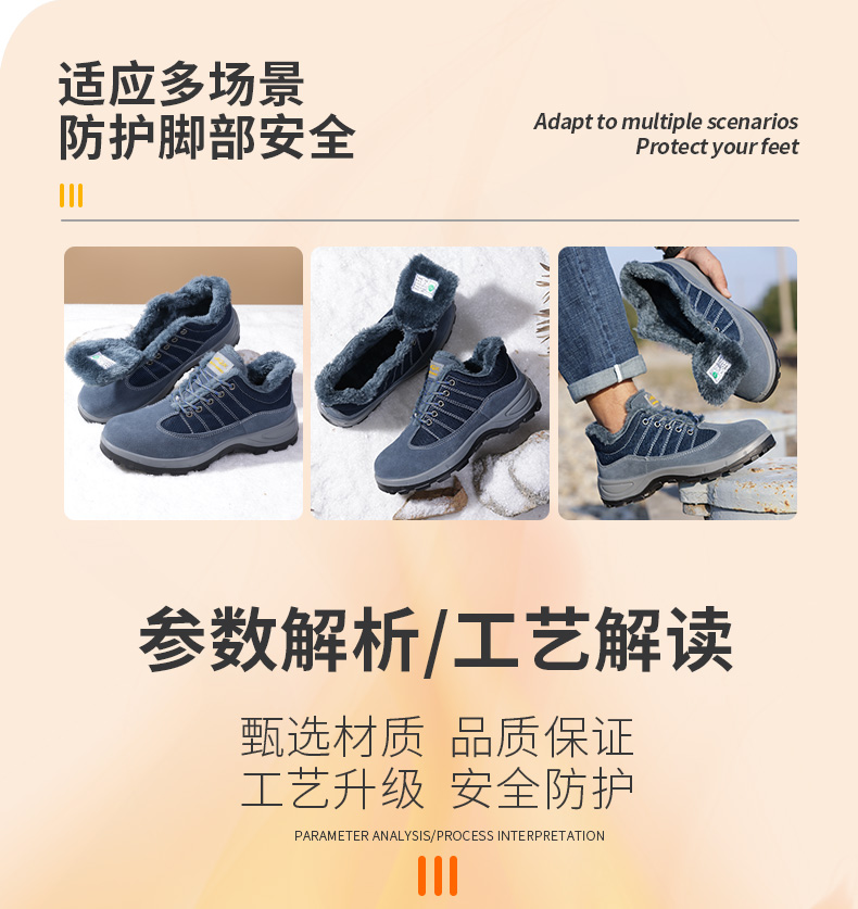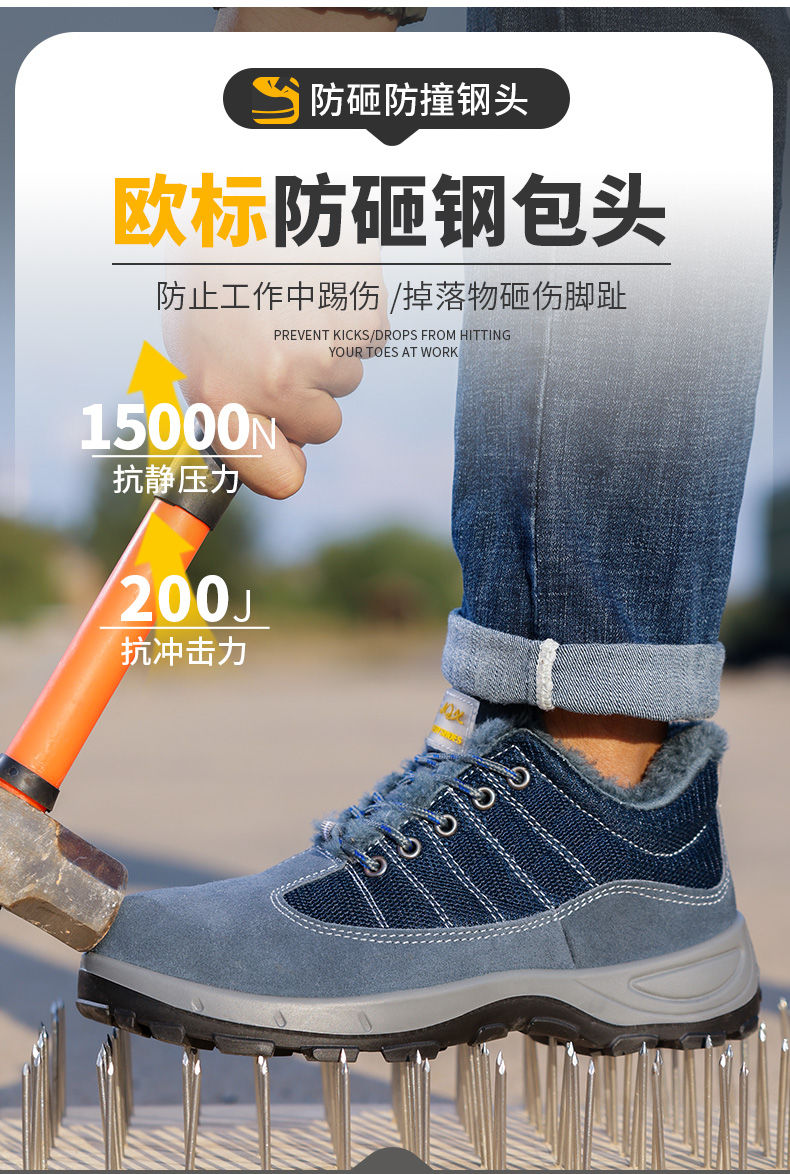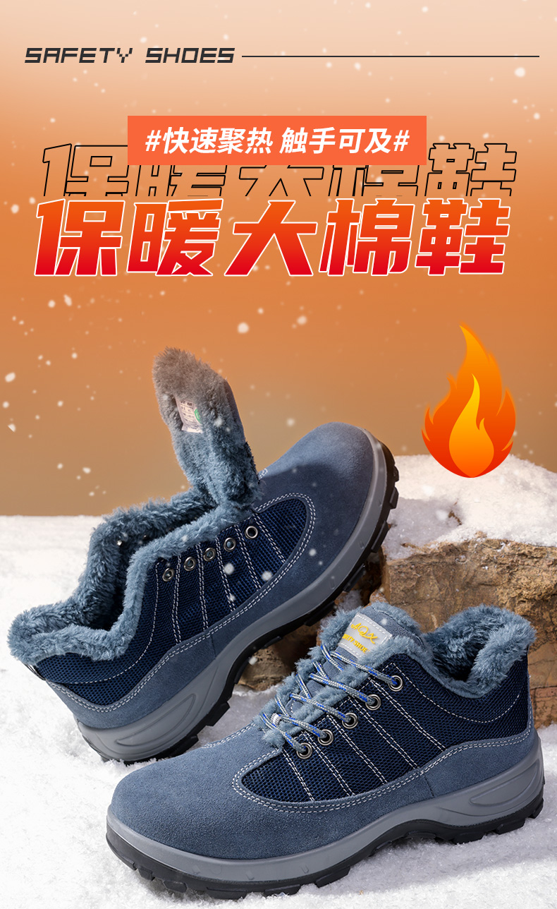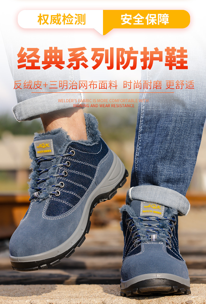 冬季加绒劳保鞋男士防砸防刺穿钢包头工地安全实心底耐磨劳保鞋