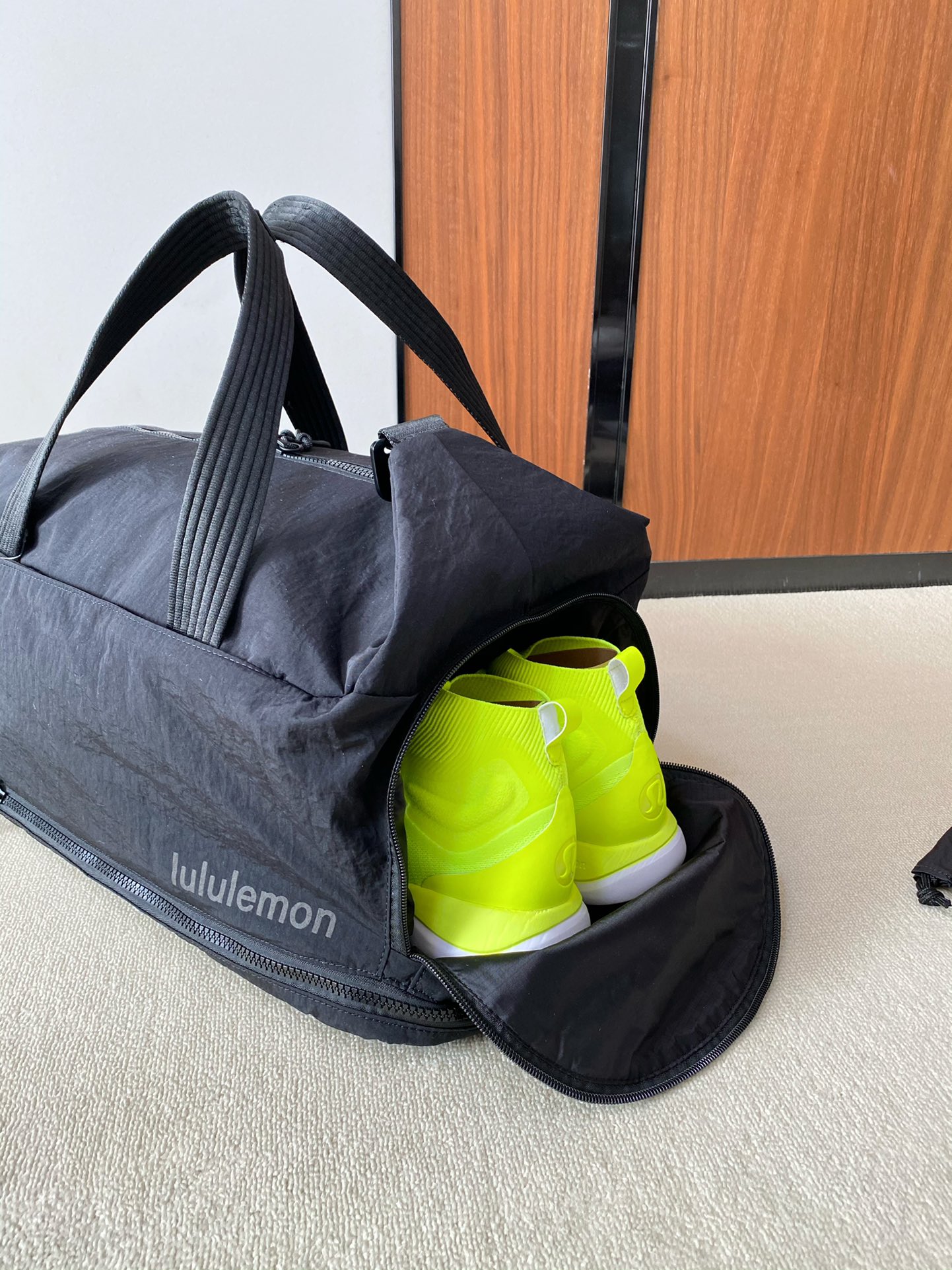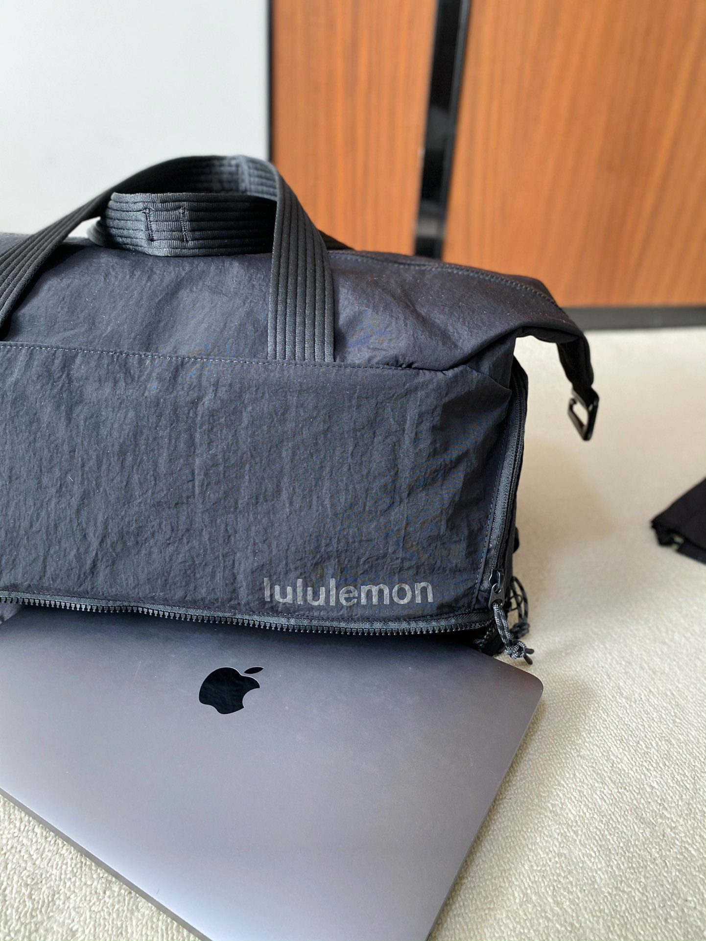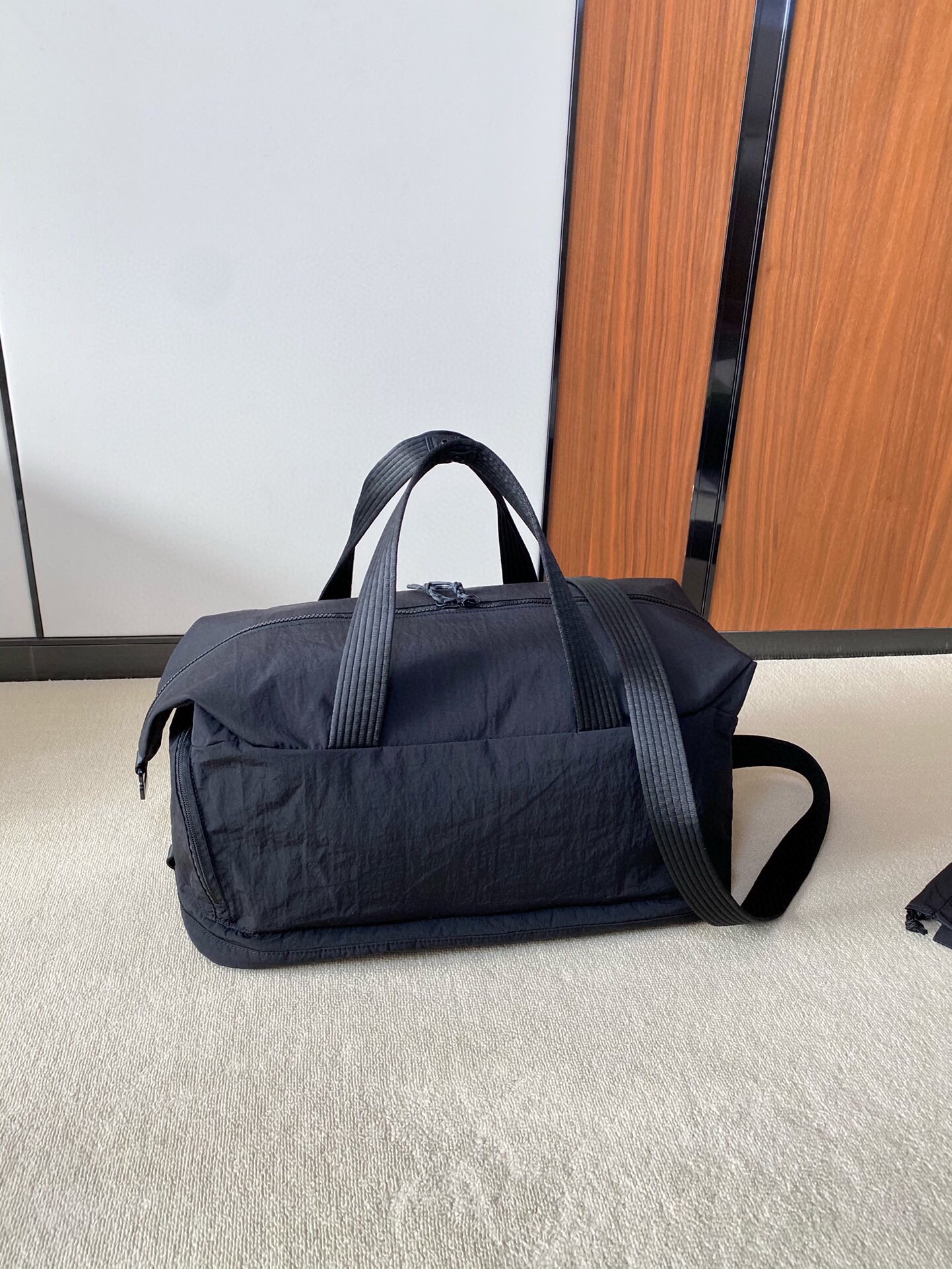 代工纯原正品‼️lu家新款健身包/运动包 容量:30L.尺寸:46×27×20 可手提斜挎.搭配提手和可拆卸肩带. 大容量主隔层.有独立隔层.可分别收纳鞋子和汗湿衣物. 外侧鞋舱.可存放多数约48.5码数的鞋子. 侧边拉链口袋.可存放多数750ML以下水瓶. 内含独立抽绳收纳袋.可存放汗湿衣物. 容量30L,满足你的一切需求,健身,通勤,旅行神器!进口防水布面料,柔软轻便而且超级耐磨防划防泼水,日常出行非常好打理,无惧风雨,任意出行!肩带超级舒适,可提可背,承重强,结实耐用!包身整齐车缝线加固,针脚细密,做工超级棒! 容量方面也是很强,堪比行李箱还能装,可同时装下:鞋子/衣服/笔记本电脑/雨伞/化妆品/等各种衣物!难得一见的好物!