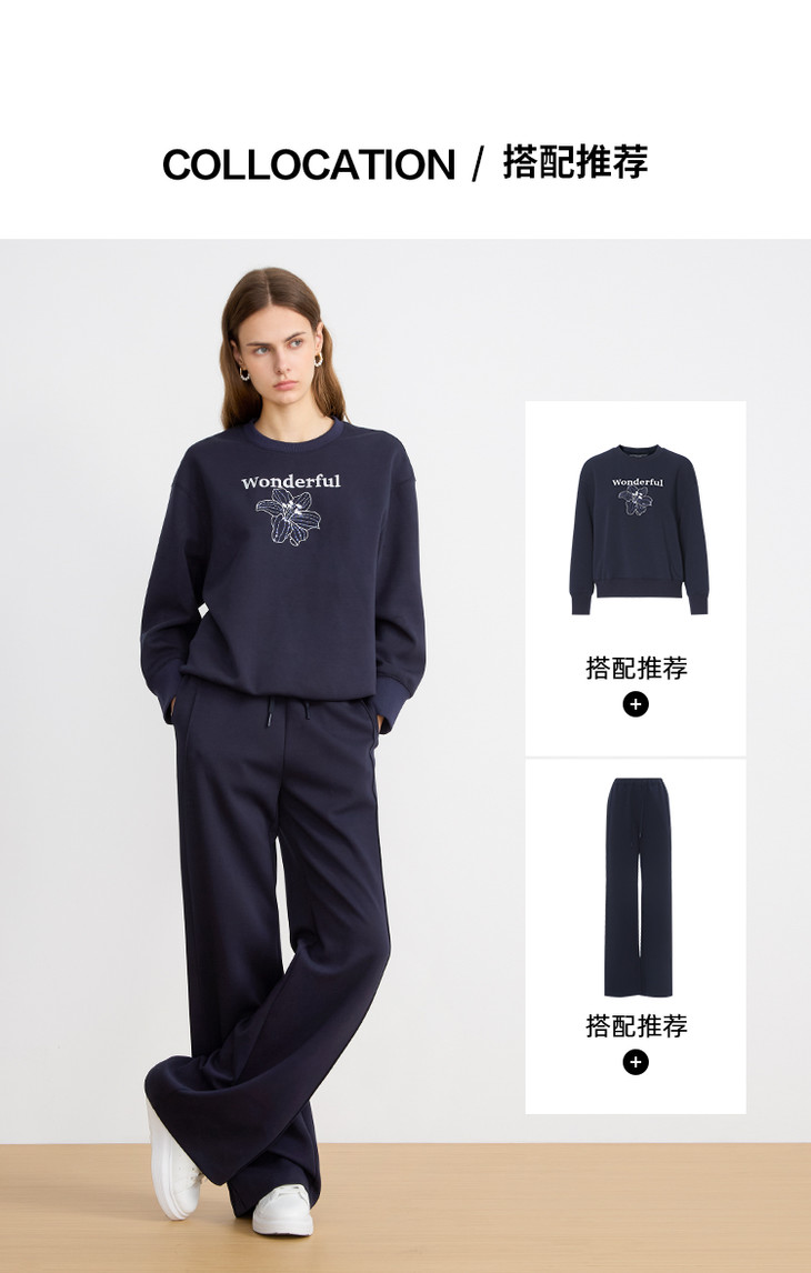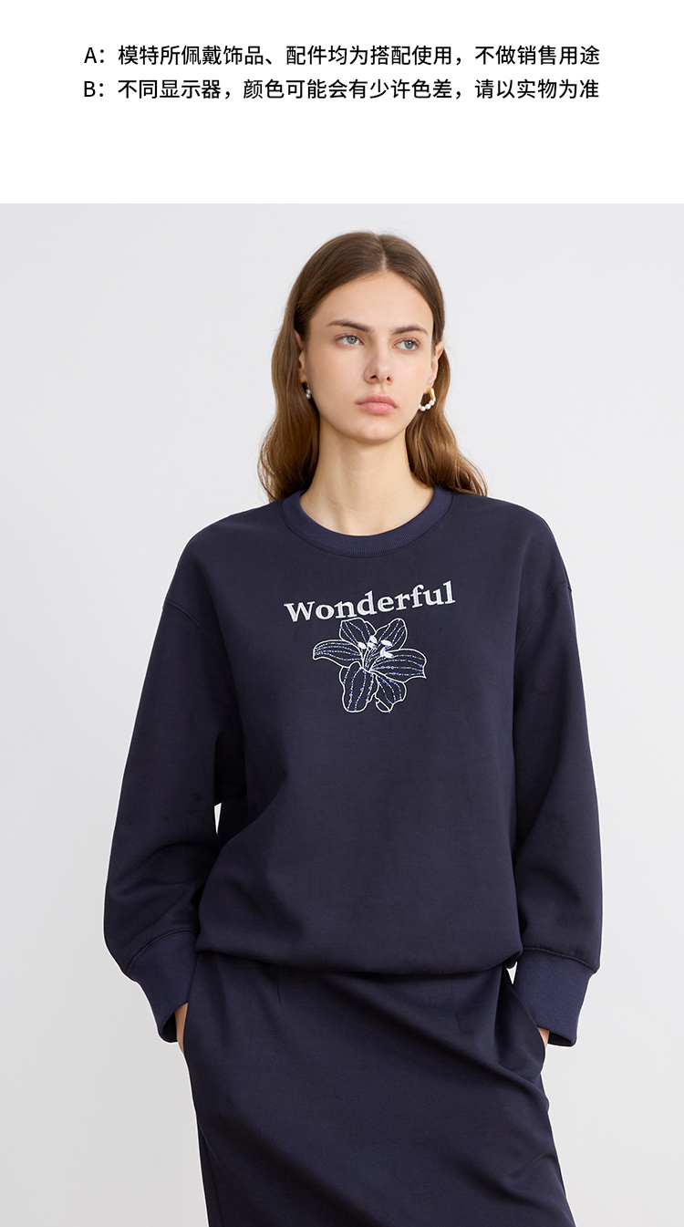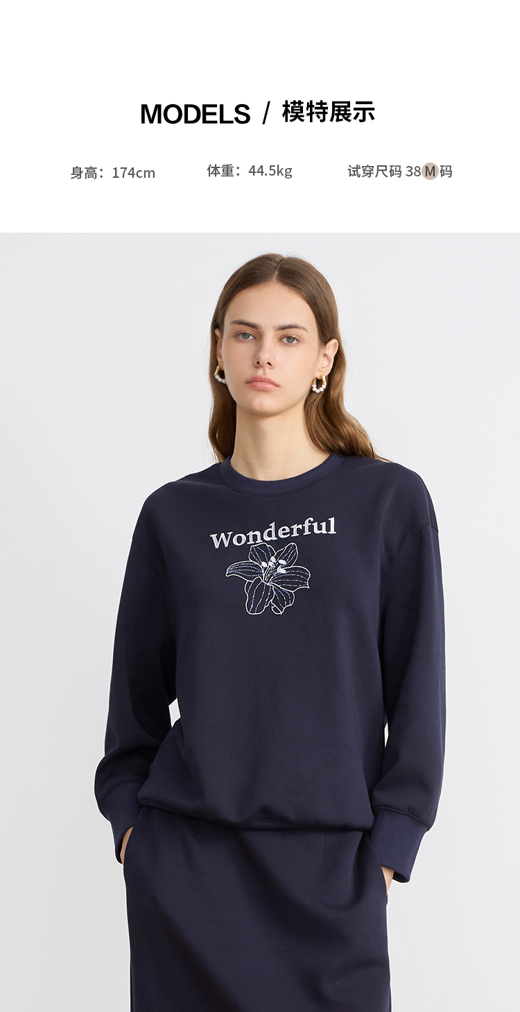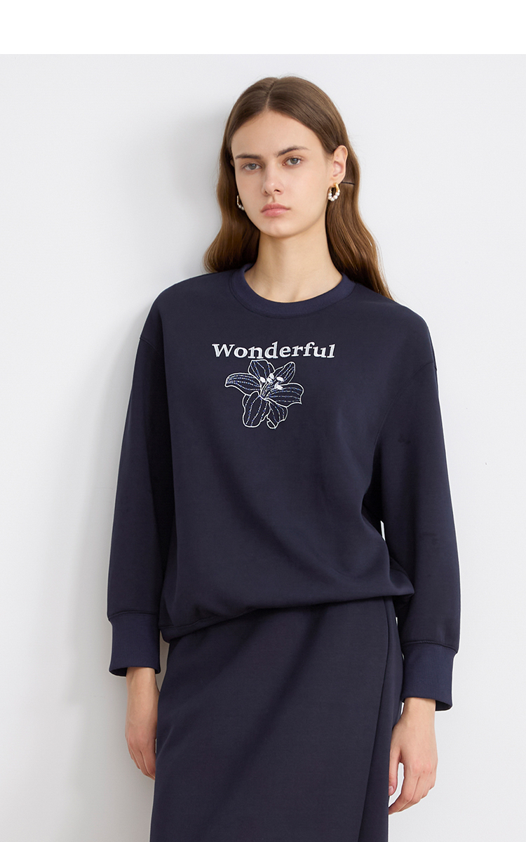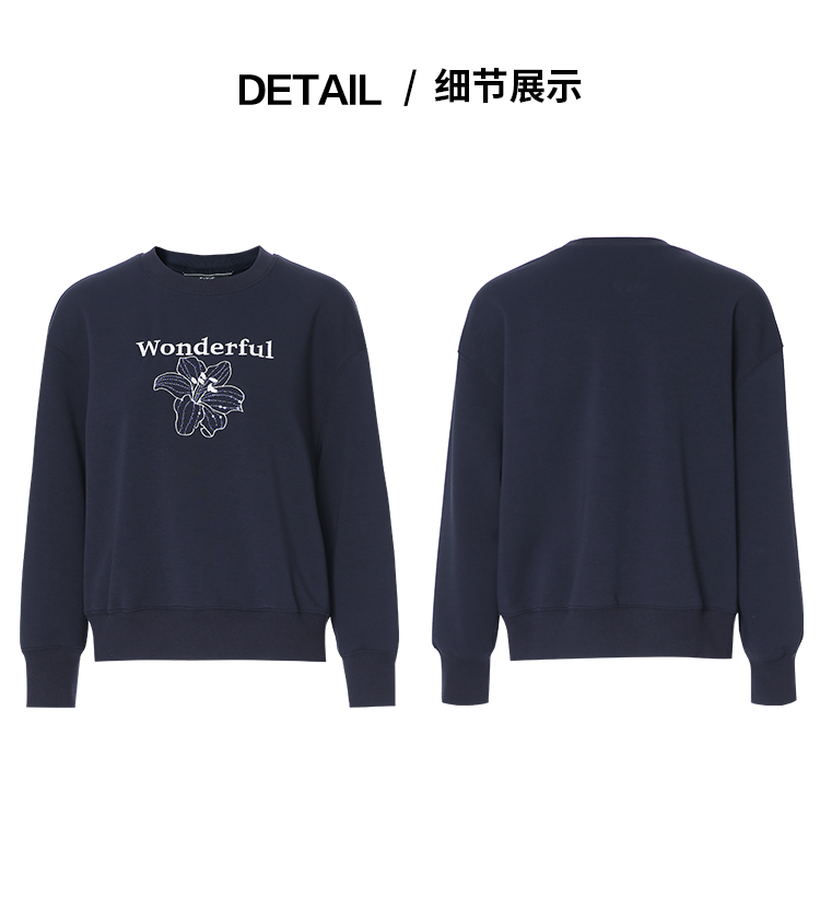 EITIE爱特爱精致绣花时尚通勤休闲圆领舒适秋季新款卫衣上衣C2513830