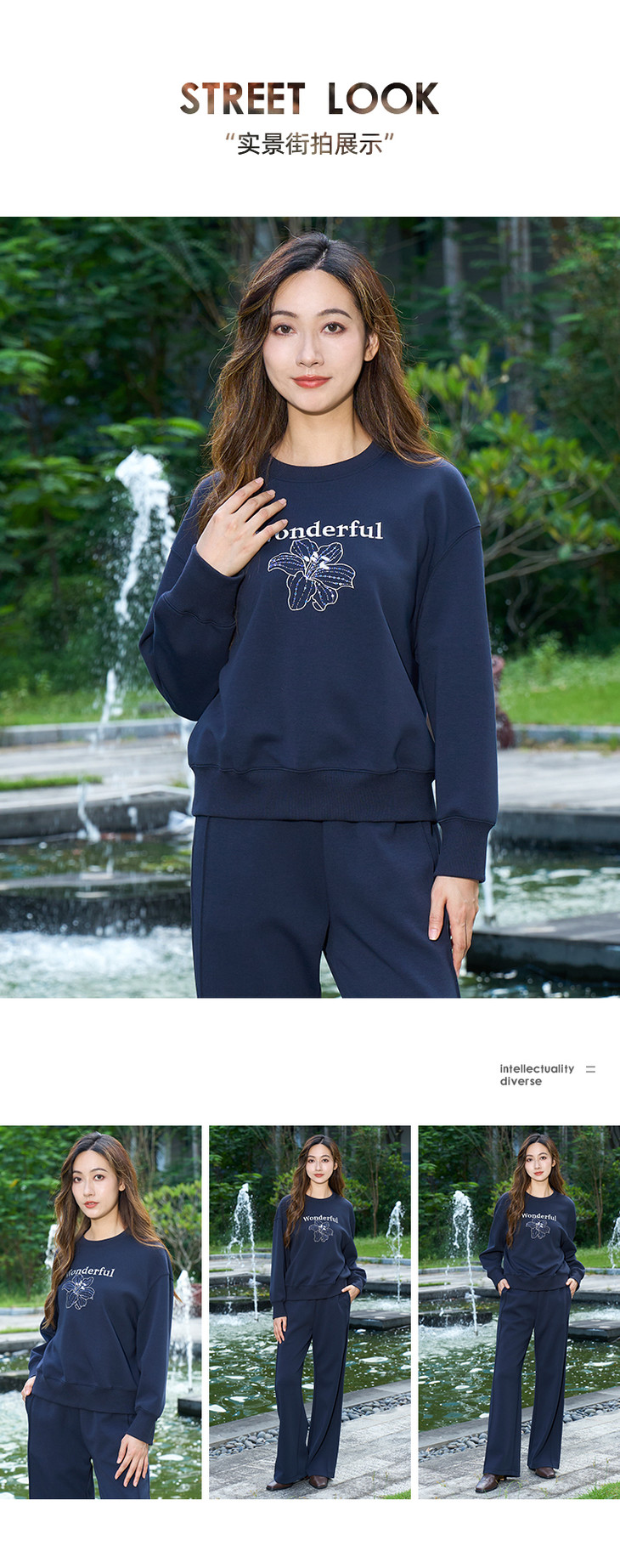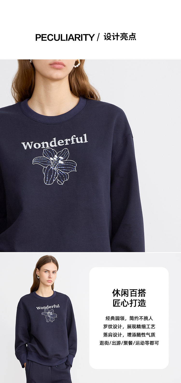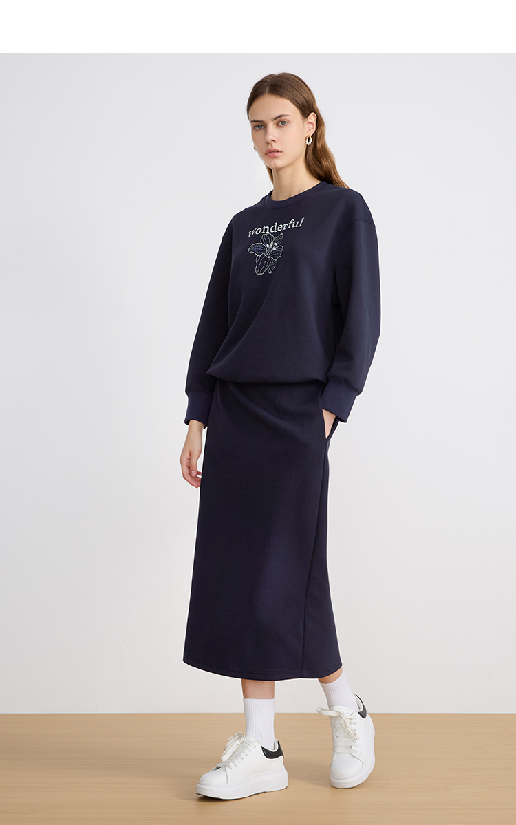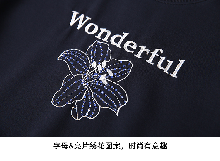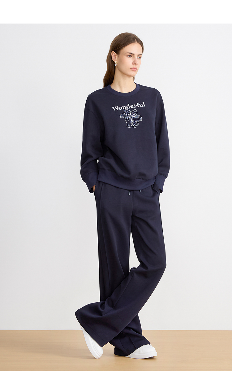 EITIE爱特爱精致绣花时尚通勤休闲圆领舒适秋季新款卫衣上衣C2513830