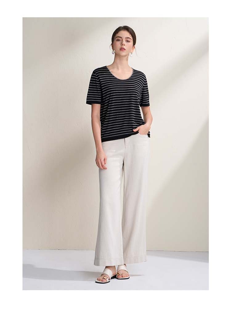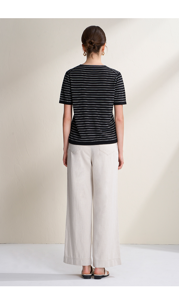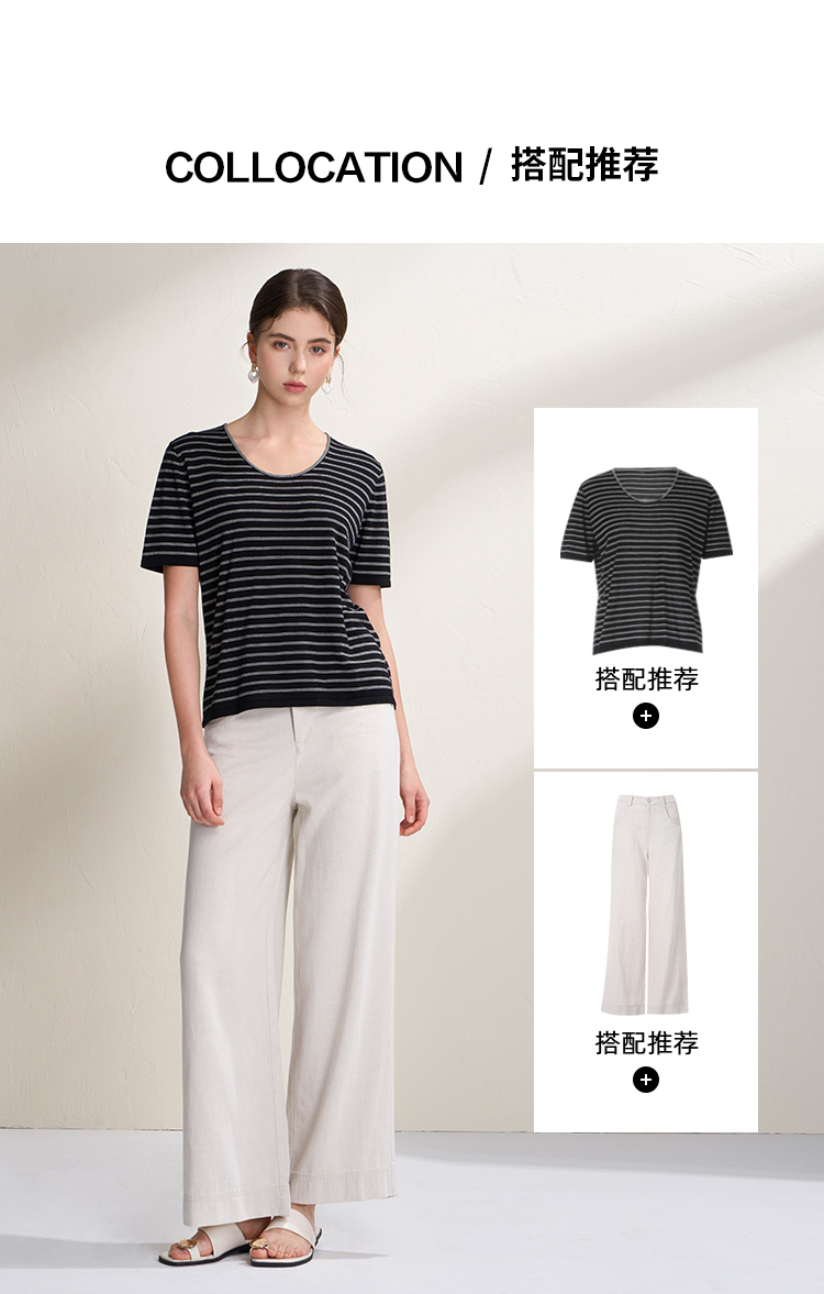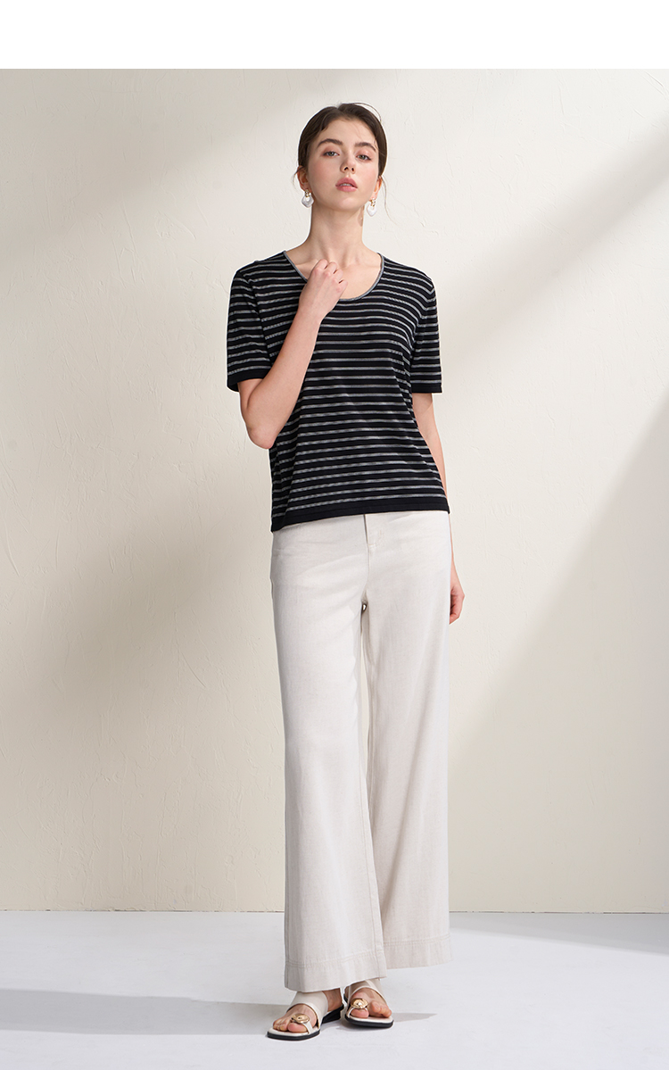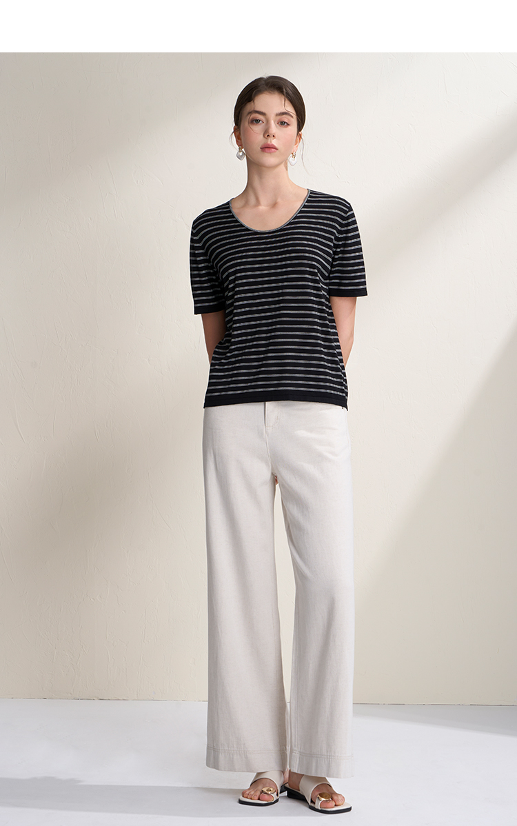 EITIE爱特爱条纹U领优雅百搭休闲宽松套头短袖针织衫2026夏季新款B2601216