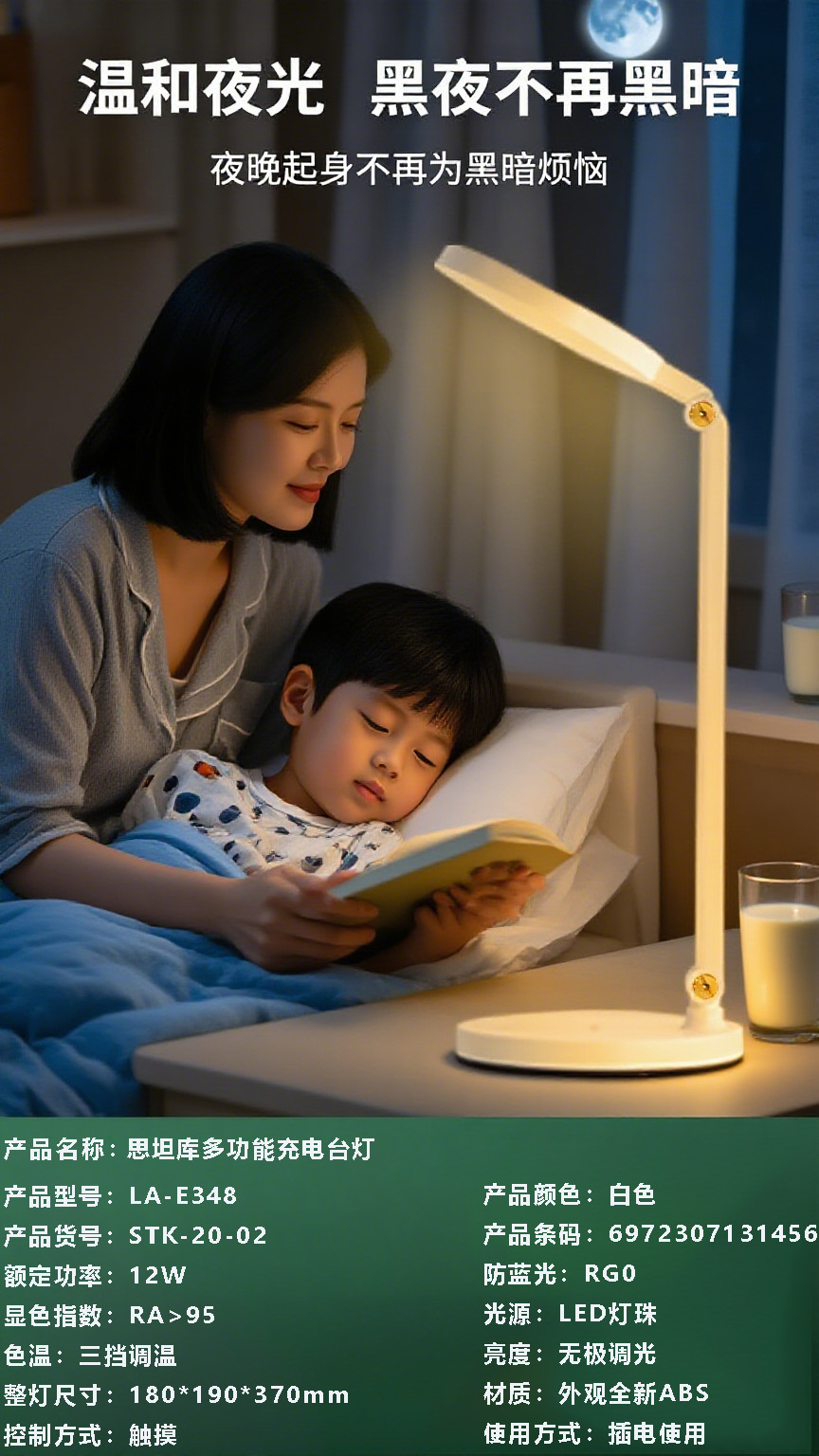 思坦库stakunft 全光谱护眼台灯儿童学生书桌阅读台灯国AA级桌面台灯 LA-E348