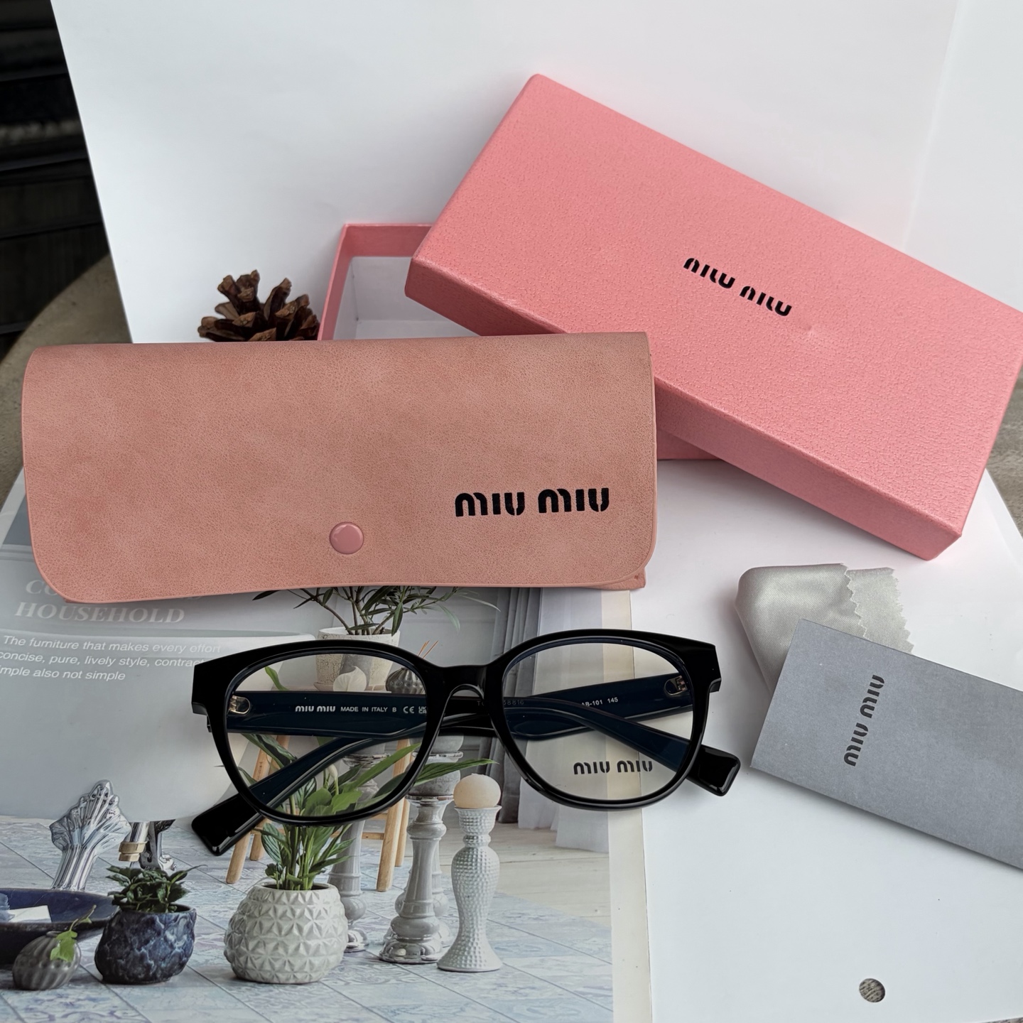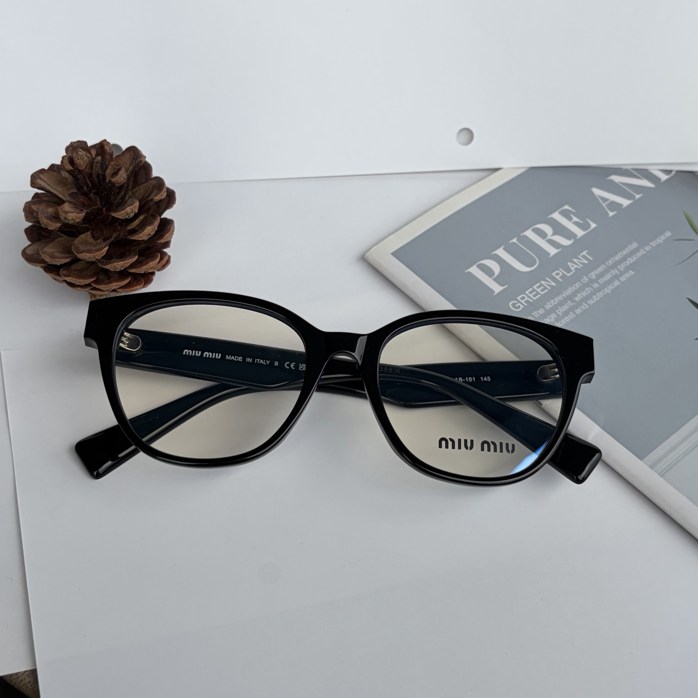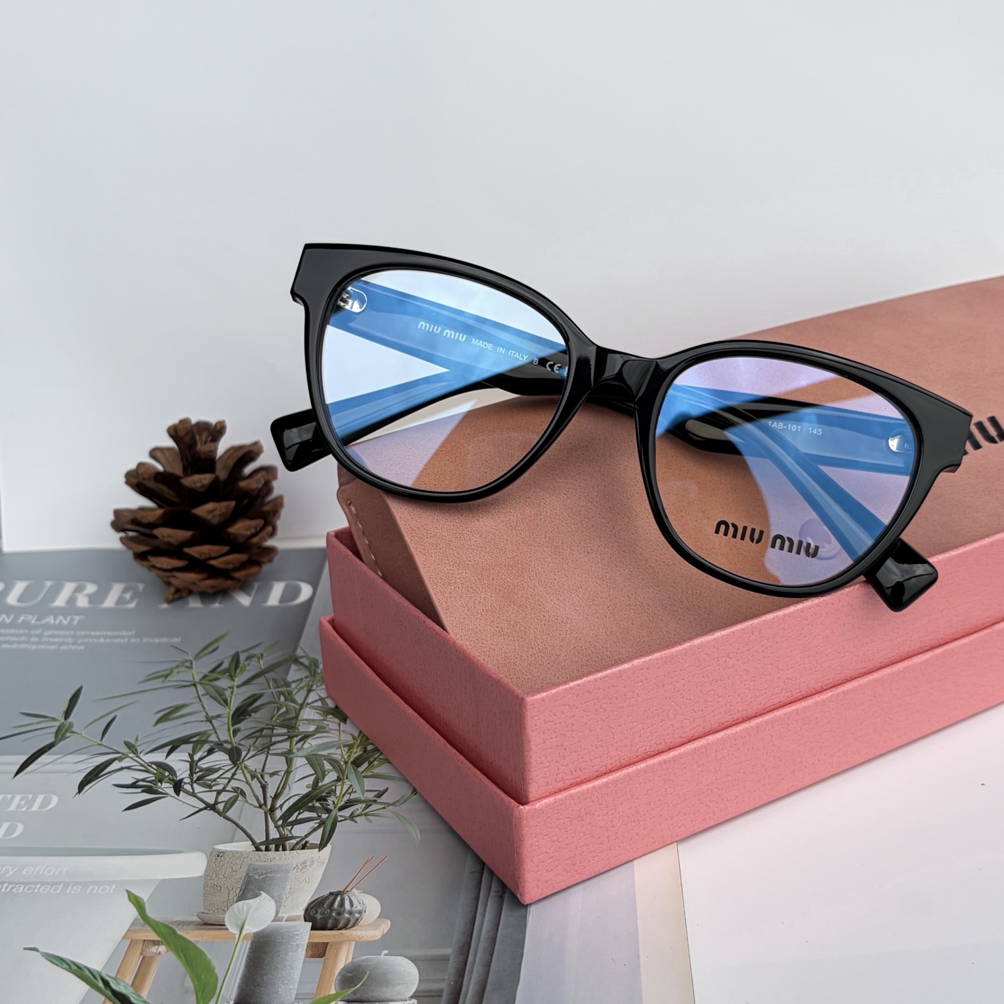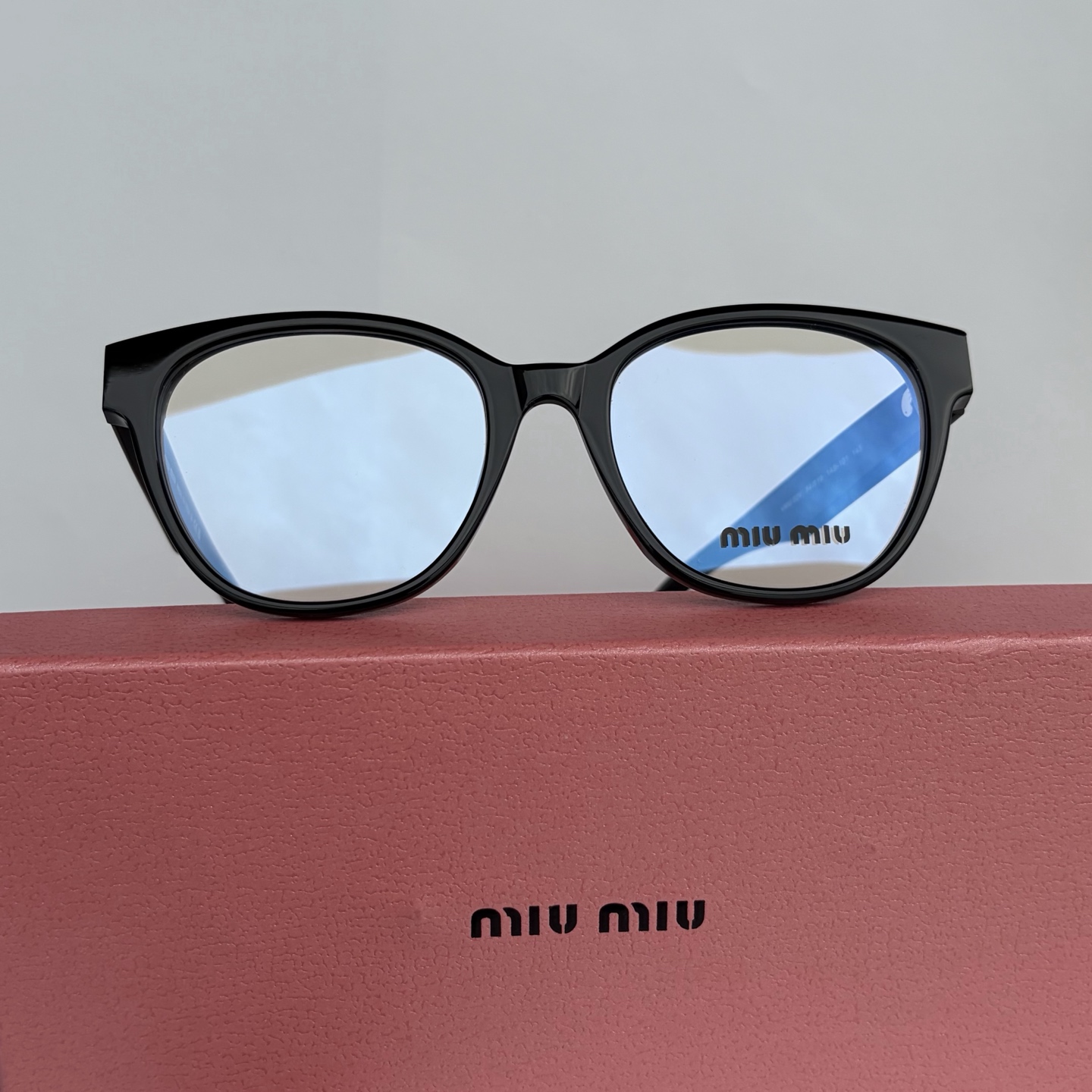 2025新款 渠道货 ‼️全套原装带🎁礼盒!得物价2200。我们品质0️⃣距离! 男女同款 申有娜明星同款。MIU MIU缪缪 原创设计 黑框猫眼 光学眼镜 女款 miumiu的这个黑框眼镜真的太精致了,简直就是素颜拯救神器,而且这种黑色很戳特别的高级显白,搭通勤装也能自带优雅,经典大方框设计,醋酸纤维材质,光泽感满满,耐磨防滑不易变形十。镜腿有金属镂空Logo,品牌辨识度超高!镜框宽度适中,修饰脸型,圆脸方脸都友好~可搭配定制镜片,日常佩戴或素颜出门都很OK,复古甜酷风轻松拿捏!