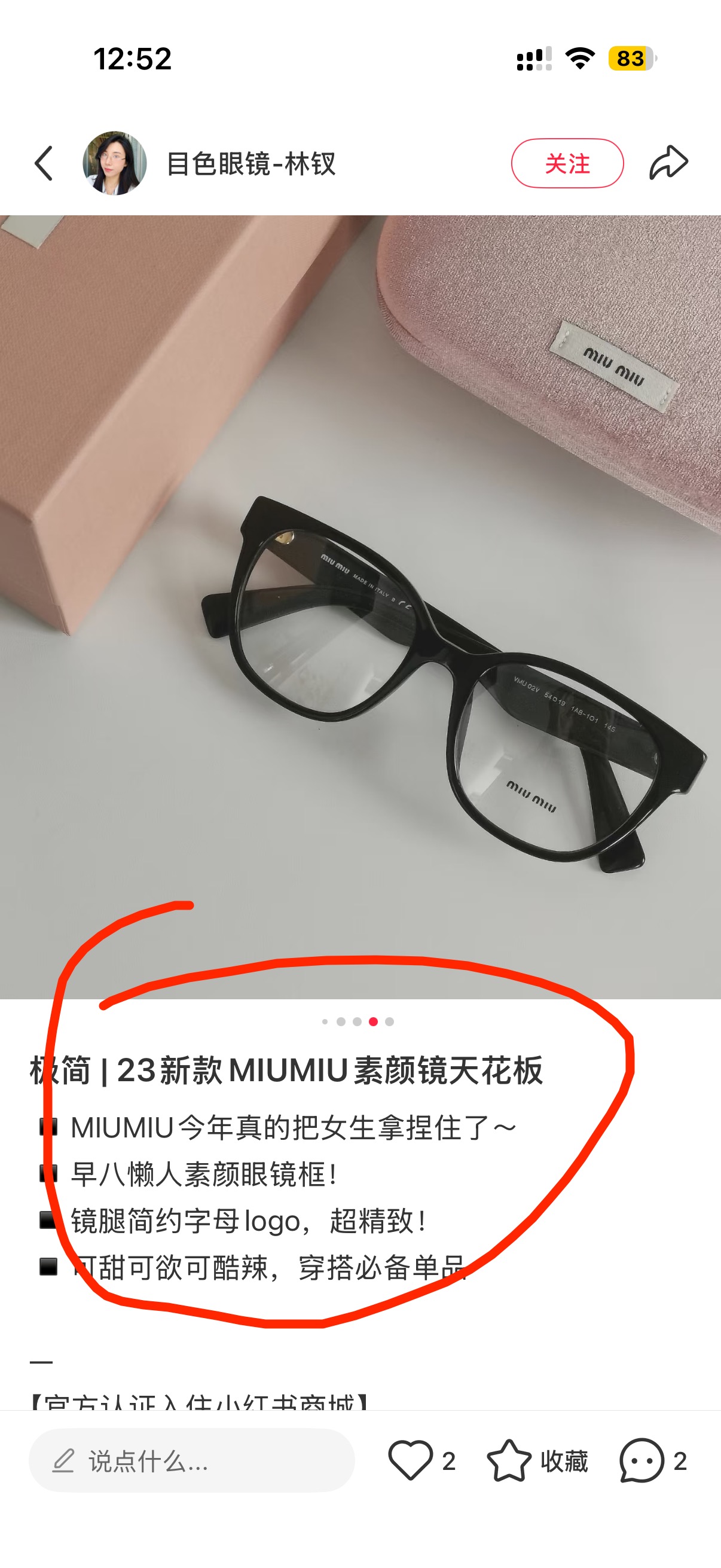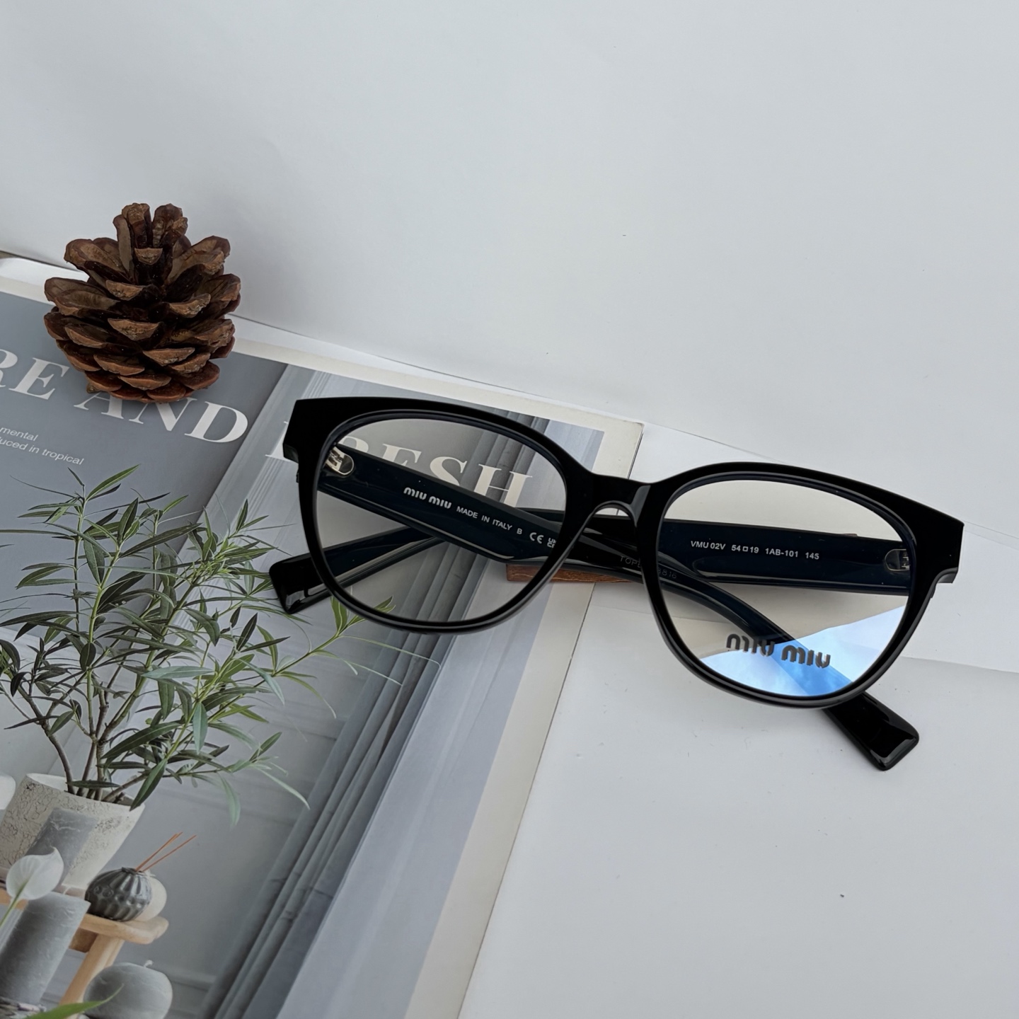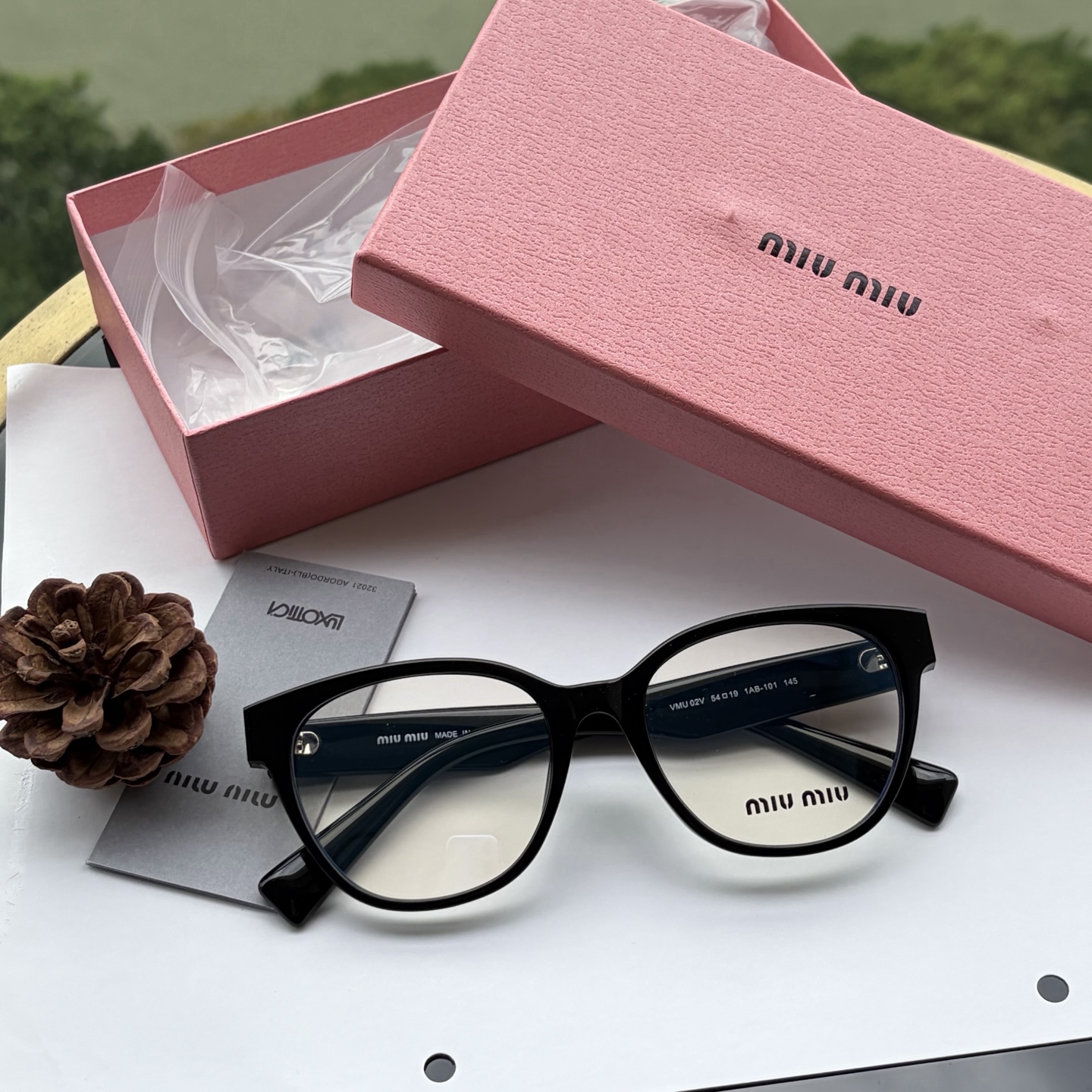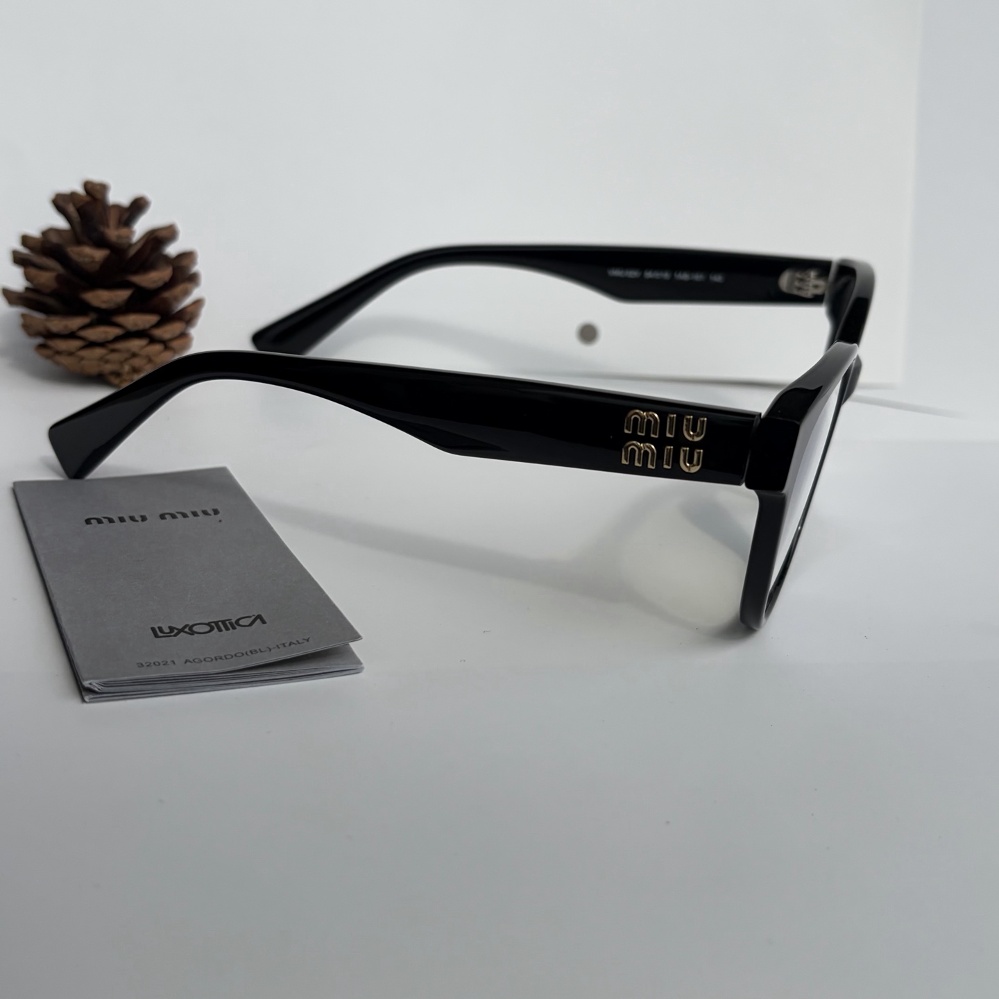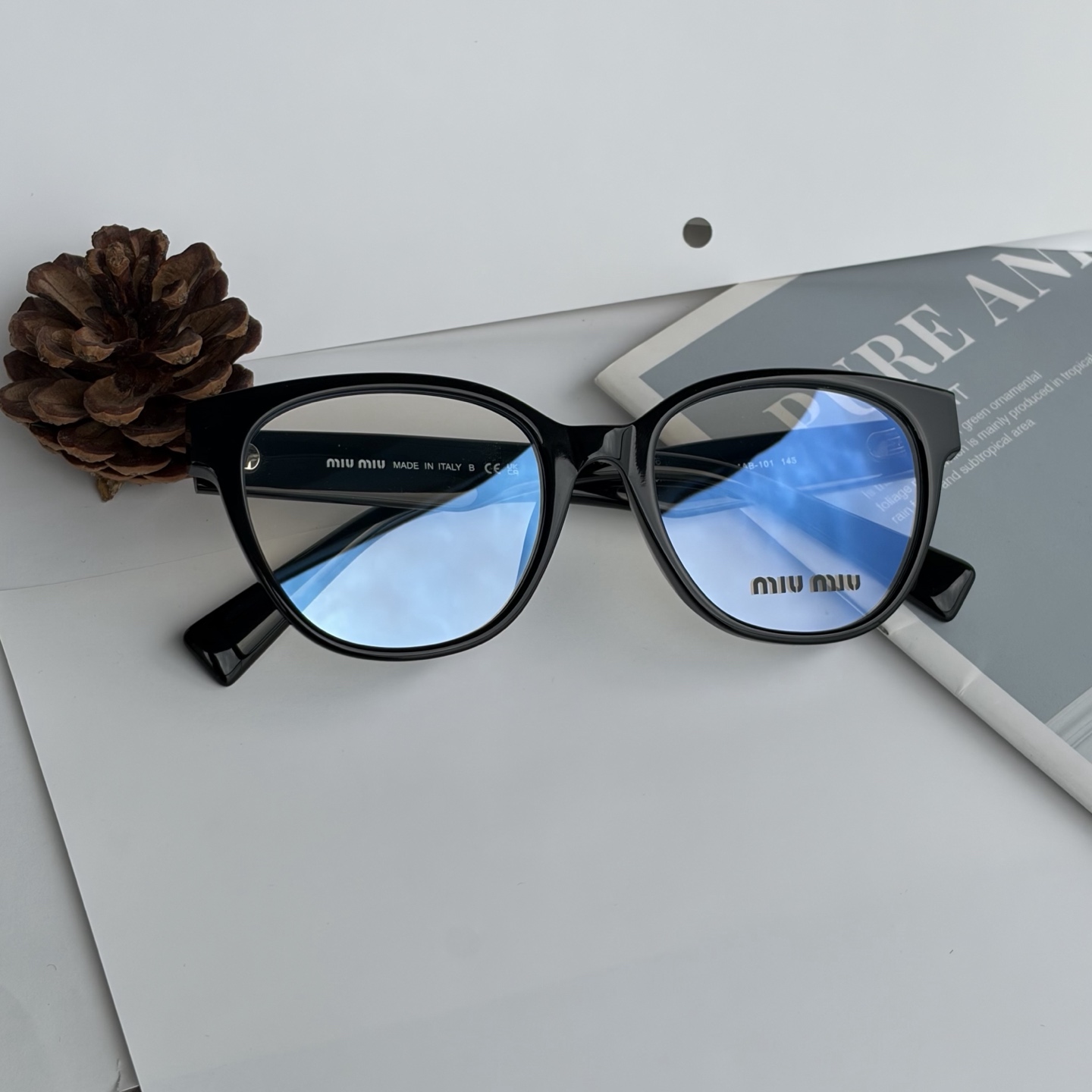 2025新款 渠道货 ‼️全套原装带🎁礼盒!得物价2200。我们品质0️⃣距离! 男女同款 申有娜明星同款。MIU MIU缪缪 原创设计 黑框猫眼 光学眼镜 女款 miumiu的这个黑框眼镜真的太精致了,简直就是素颜拯救神器,而且这种黑色很戳特别的高级显白,搭通勤装也能自带优雅,经典大方框设计,醋酸纤维材质,光泽感满满,耐磨防滑不易变形十。镜腿有金属镂空Logo,品牌辨识度超高!镜框宽度适中,修饰脸型,圆脸方脸都友好~可搭配定制镜片,日常佩戴或素颜出门都很OK,复古甜酷风轻松拿捏!