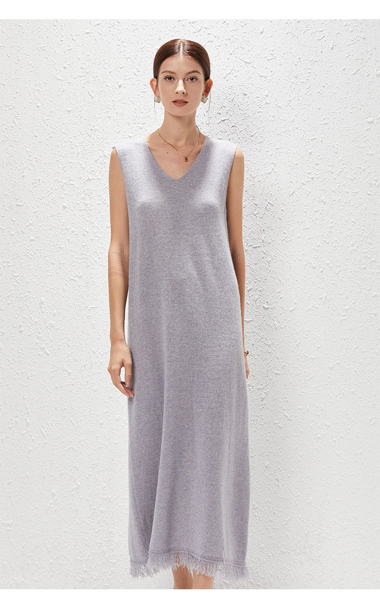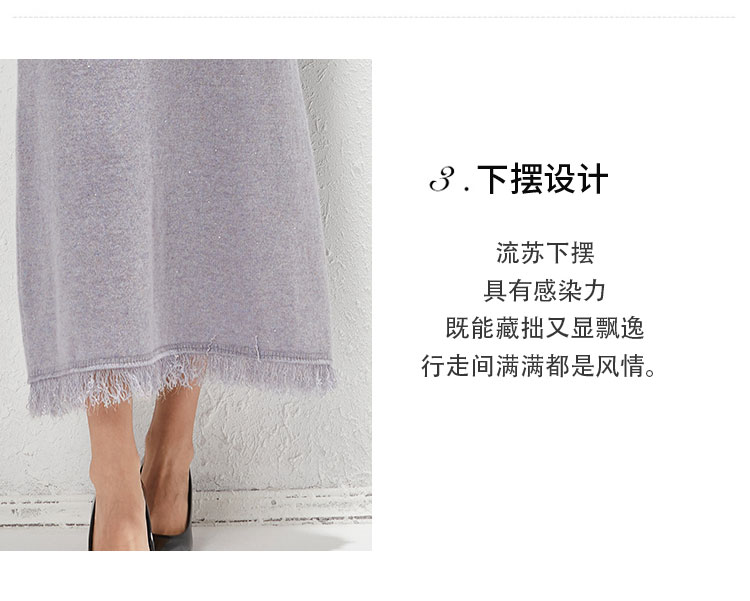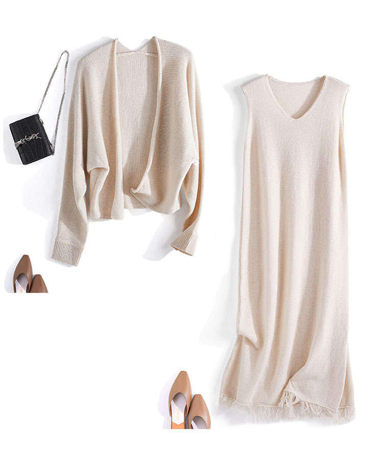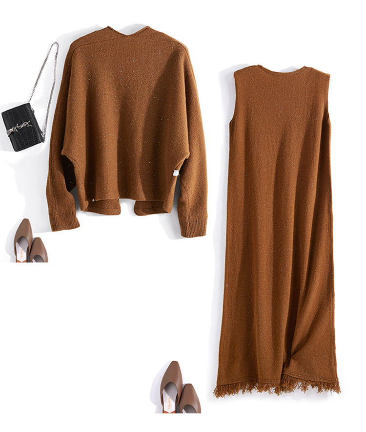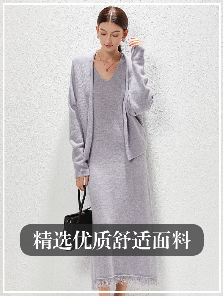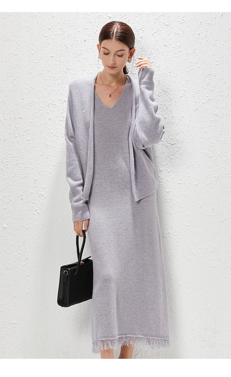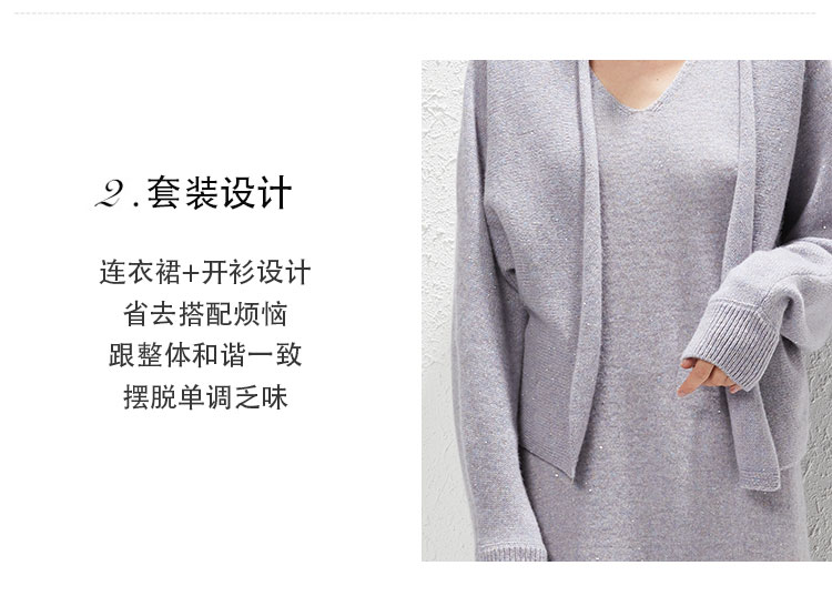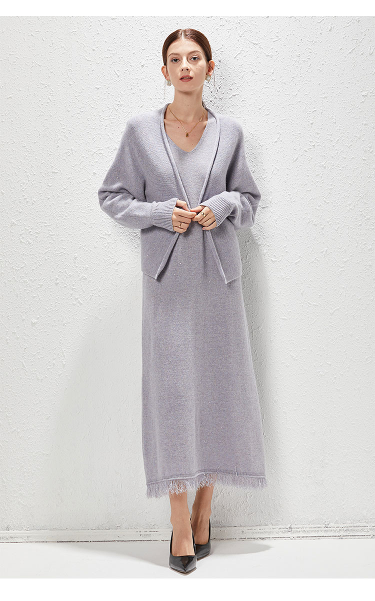 丁摩 全羊毛亮片卷边小开衫上衣外套+V领流苏针织无袖连衣裙两件套套装WX159-6109/6108