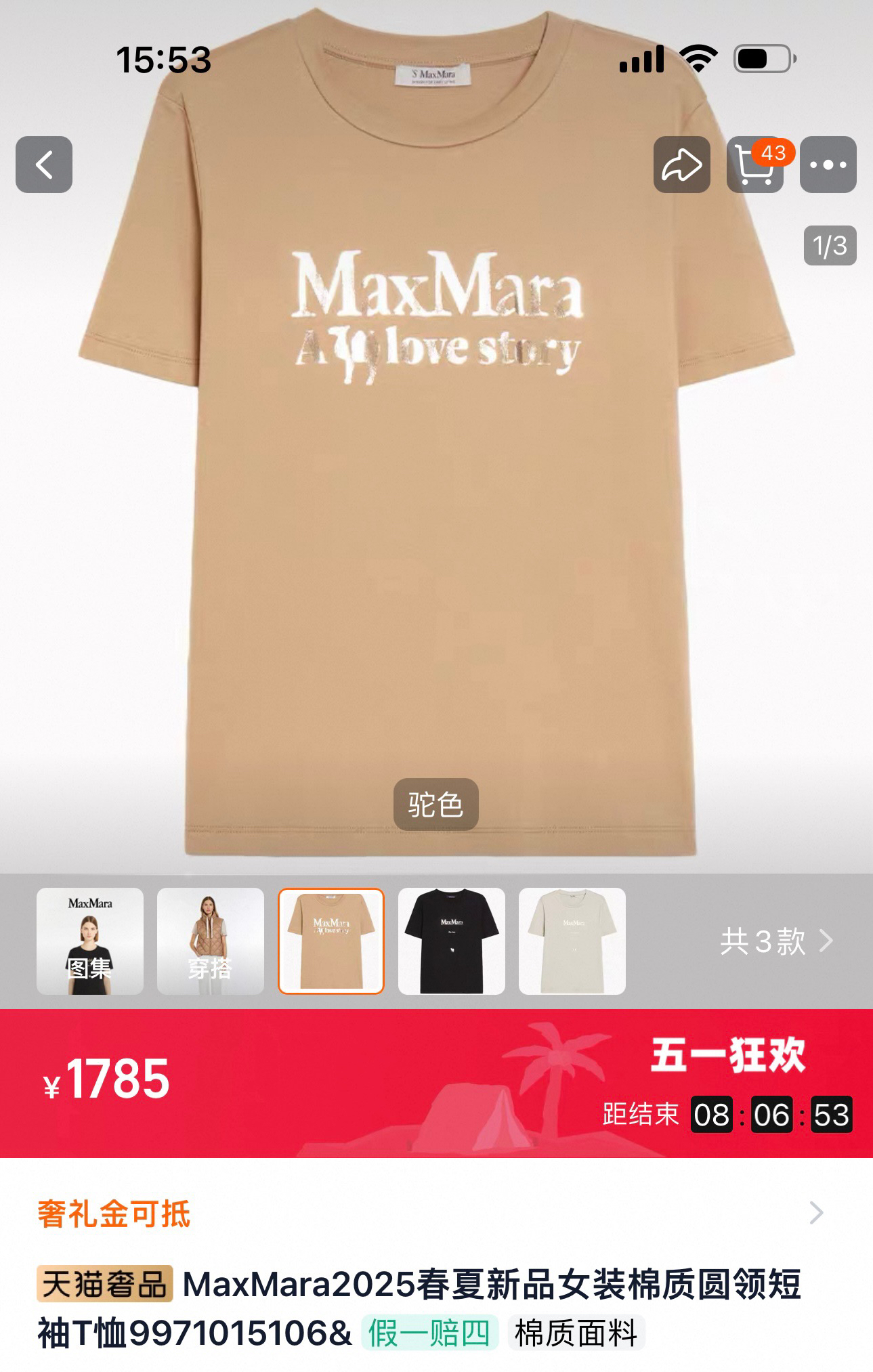 ⚠️MaxMara 三款烫金工艺T恤 “双面烫金款”“小字母款”“大字母烫金款”越南代工厂订单剩余回货,个别颜色尺码数量不多,喜欢的拼手速 看好尺码表抓紧囤吧!