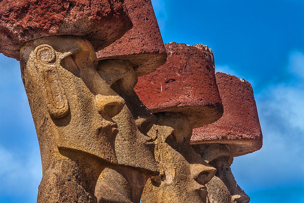 行程安排:乘机飞往复活节岛,岛民献花环迎接,拍摄圣拉诺拉拉库未完成的摩埃石像、Ahu Tongariki 石像群、Anakena 梦幻沙滩;