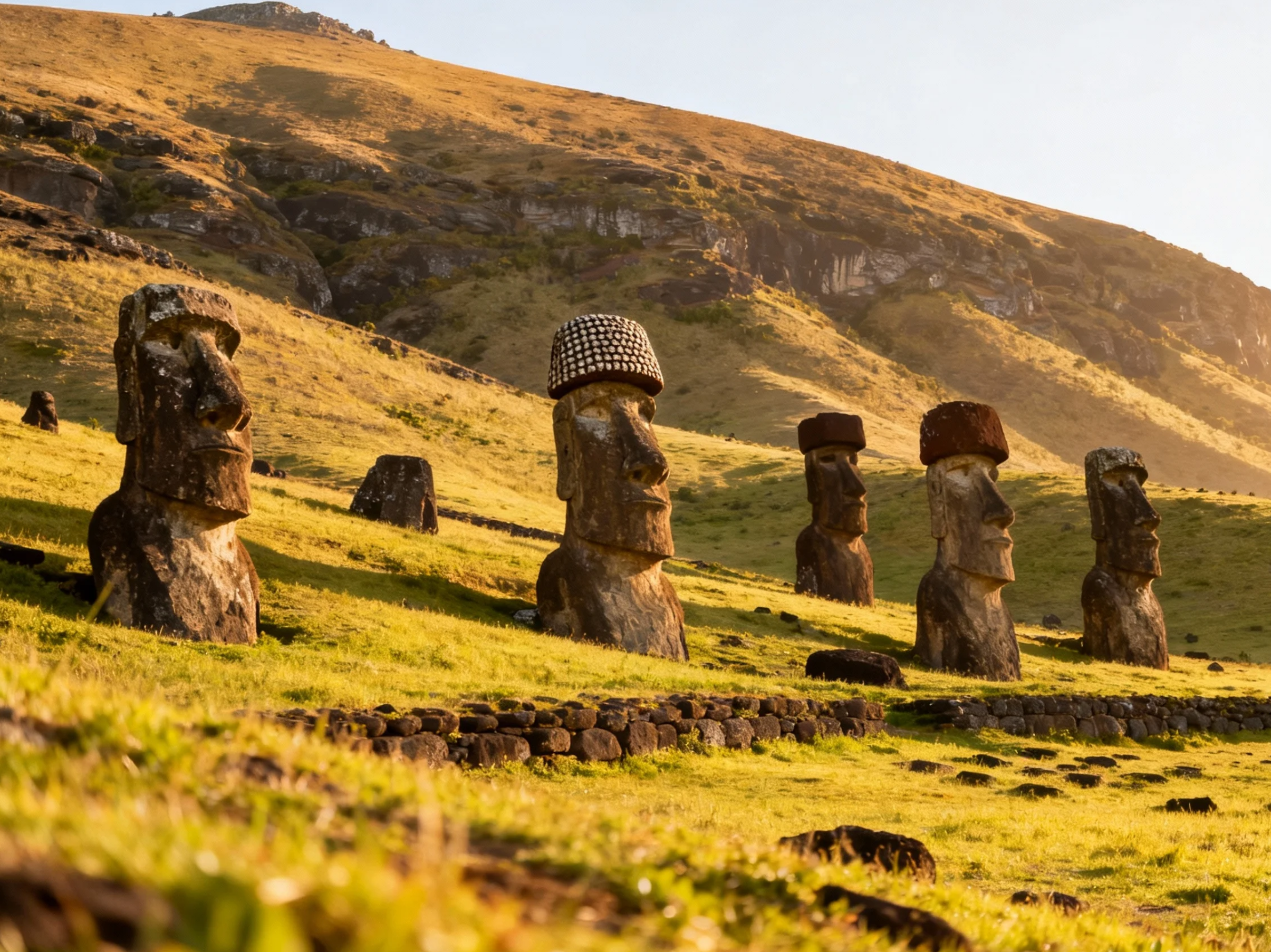 行程安排:拍摄 Rano Kau 火山口湖、Orongo 鸟人村遗址、Tahai 带眼睛的摩埃石像,解锁神秘海岛人文与自然景观;