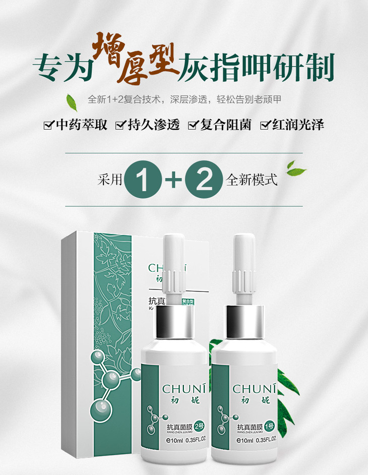 【灰指甲克星】初妮抗真菌膜复合型修复液中药萃取全新1+2复合技术深层渗透轻松告别老顽甲