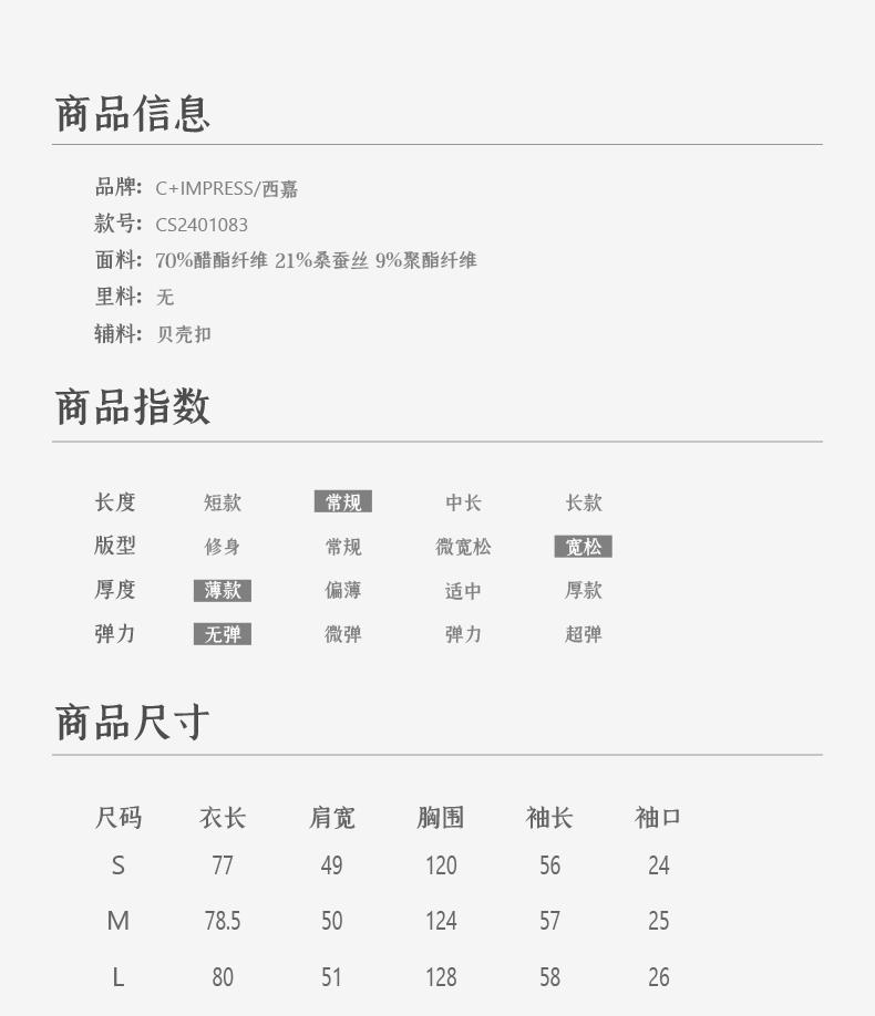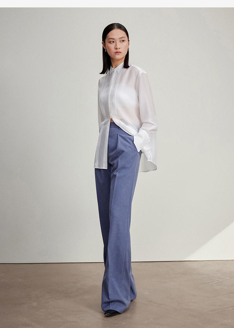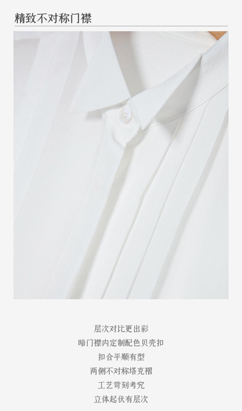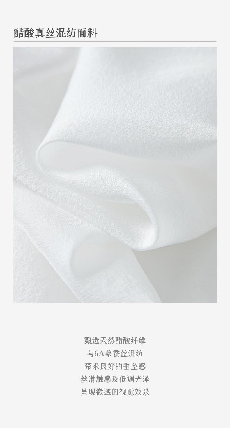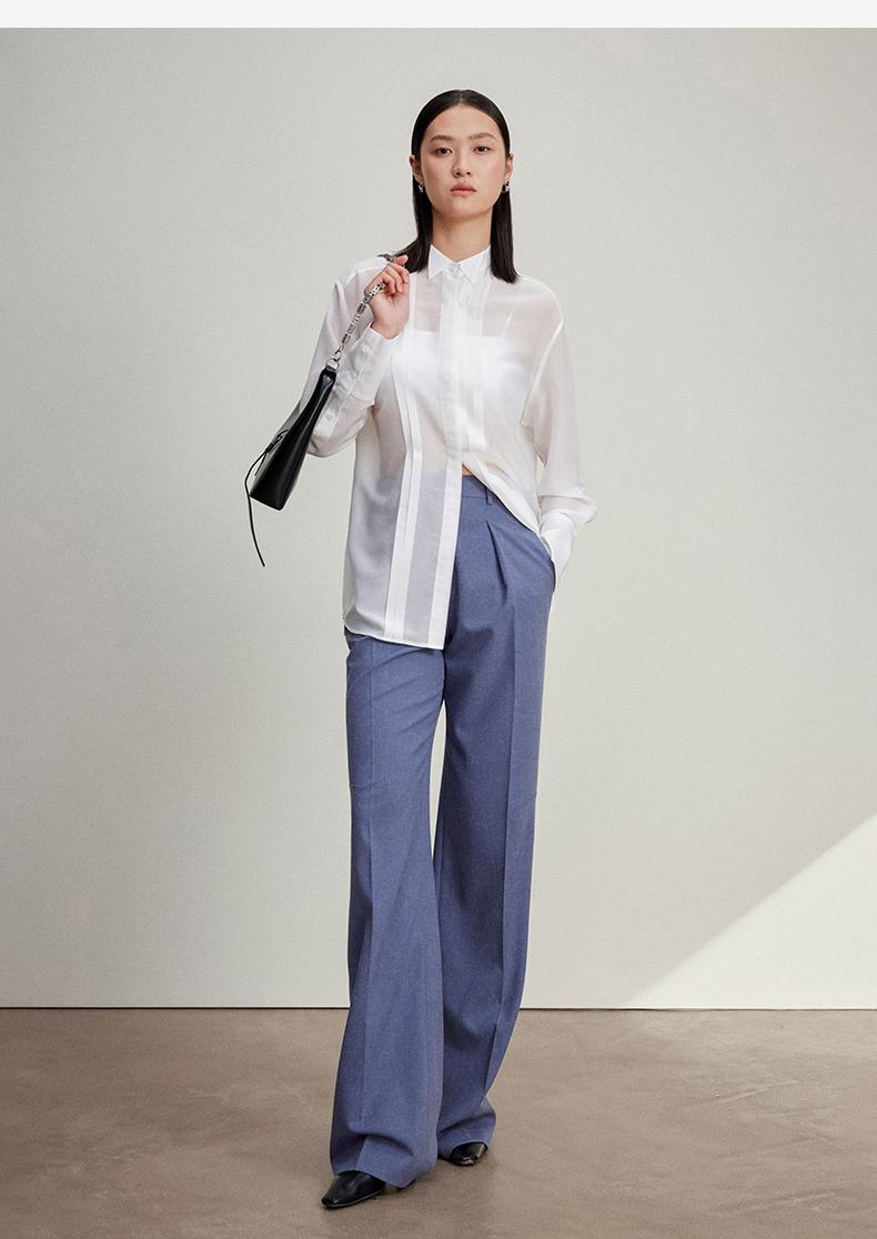 西嘉C+IMPRESS/西嘉醋酸桑蚕丝复古白色衬衫长袖翻领塔克褶半透视上衣CS2401083