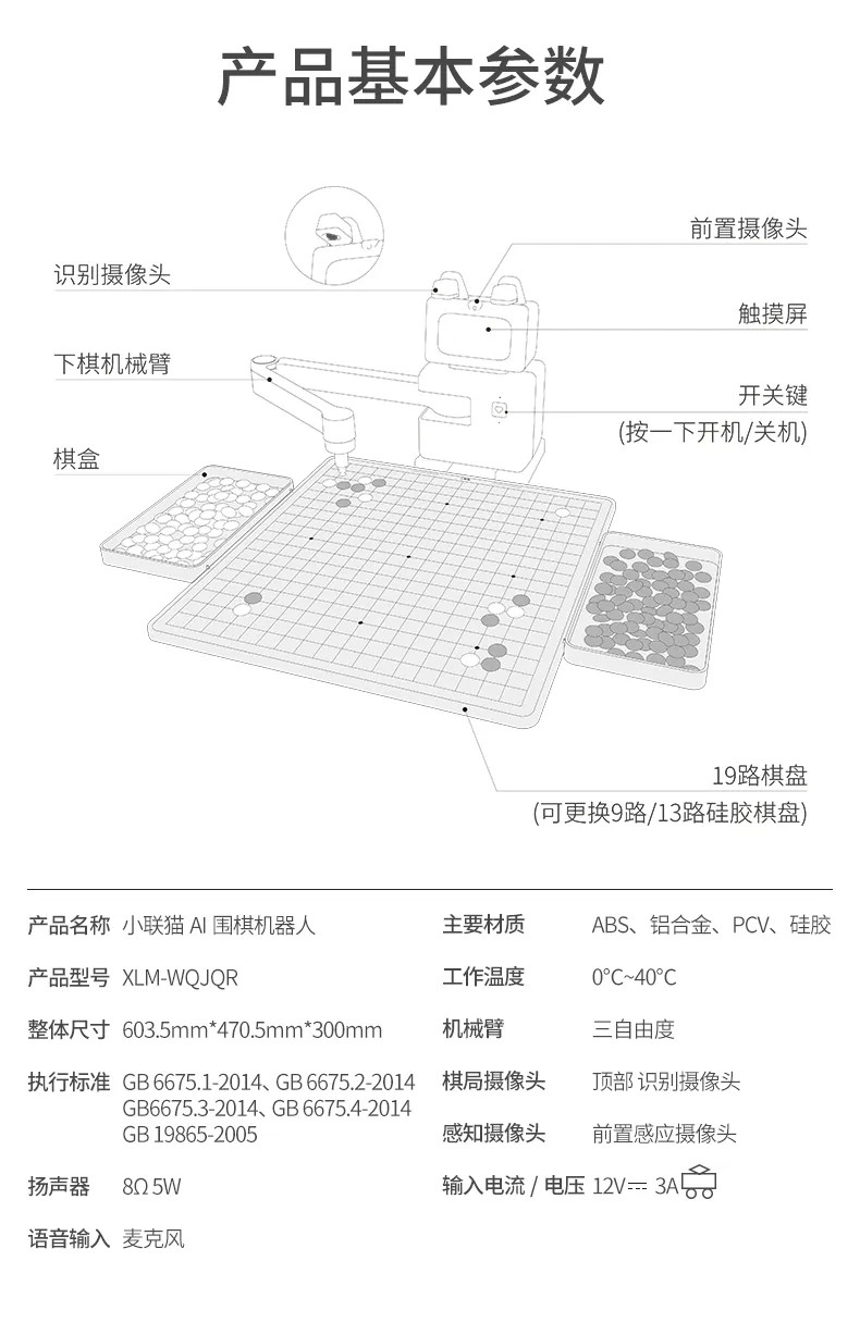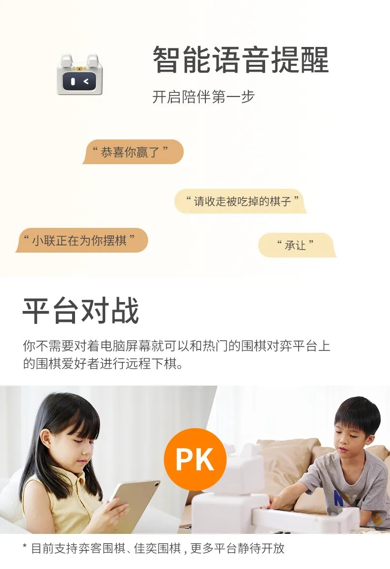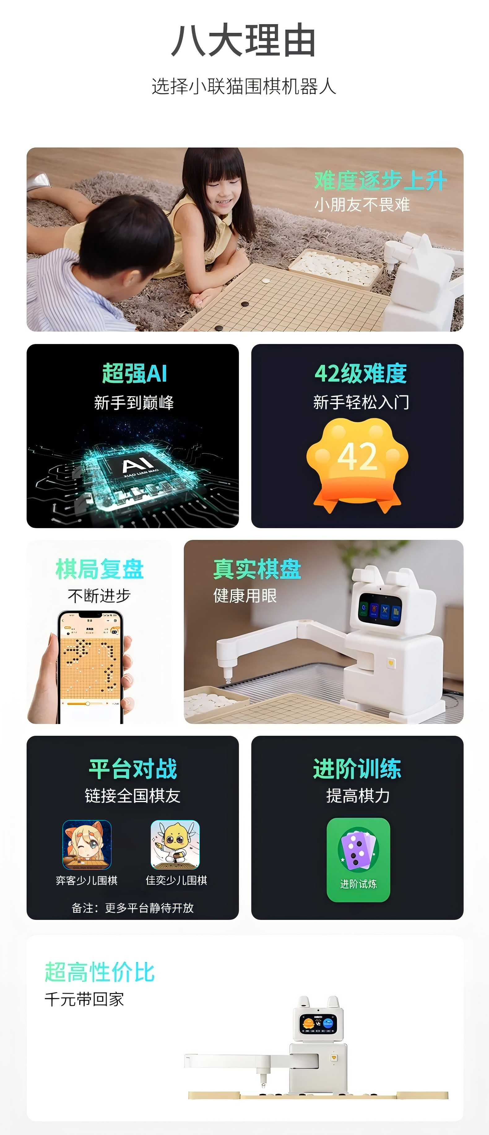 小联猫AI围棋机器人陪练 对弈 进阶训练 平台对战 远程对战 涨棋人机互动自动机器人语音对话儿童下棋伙伴
