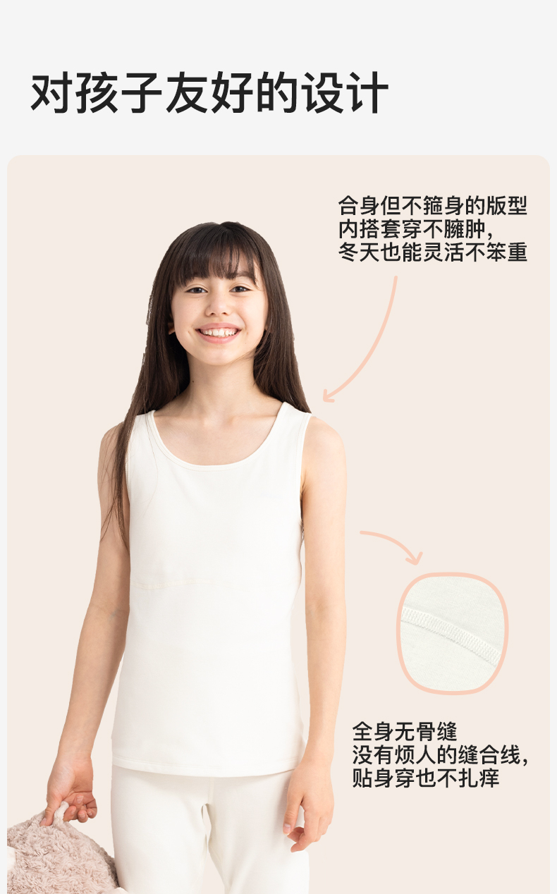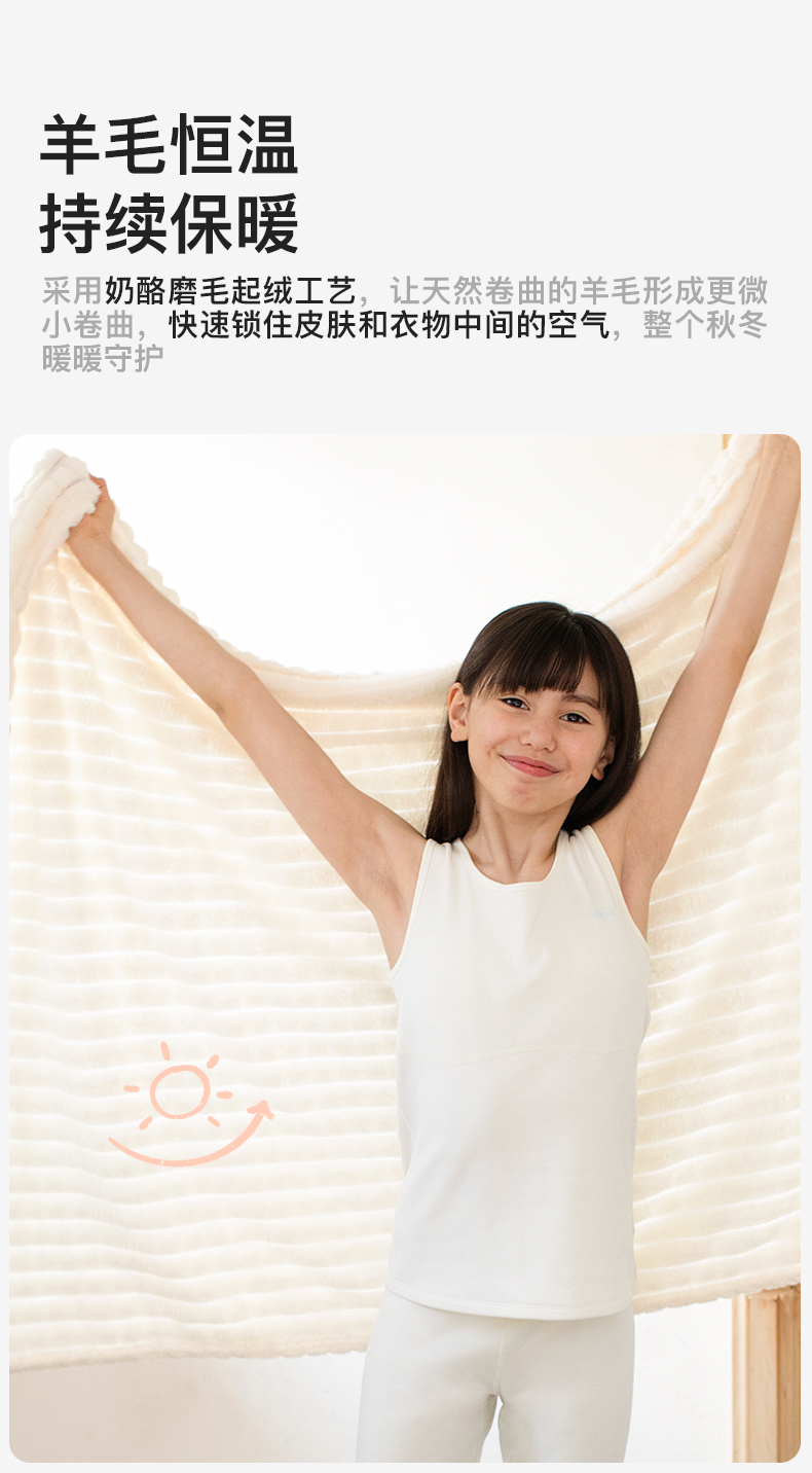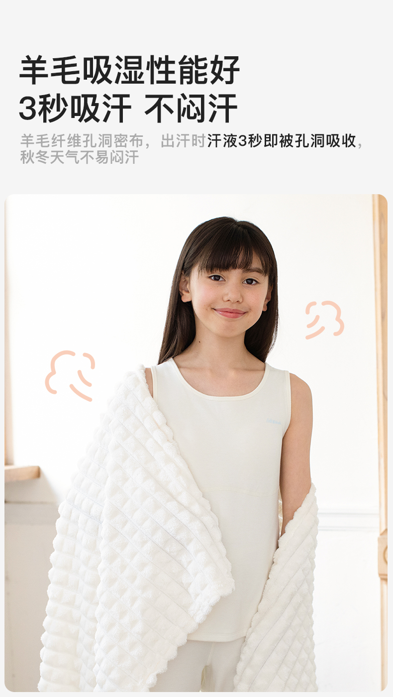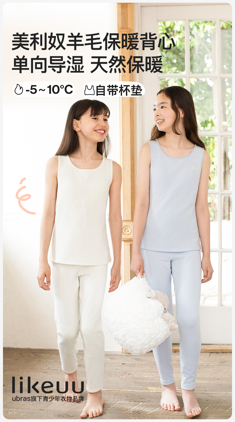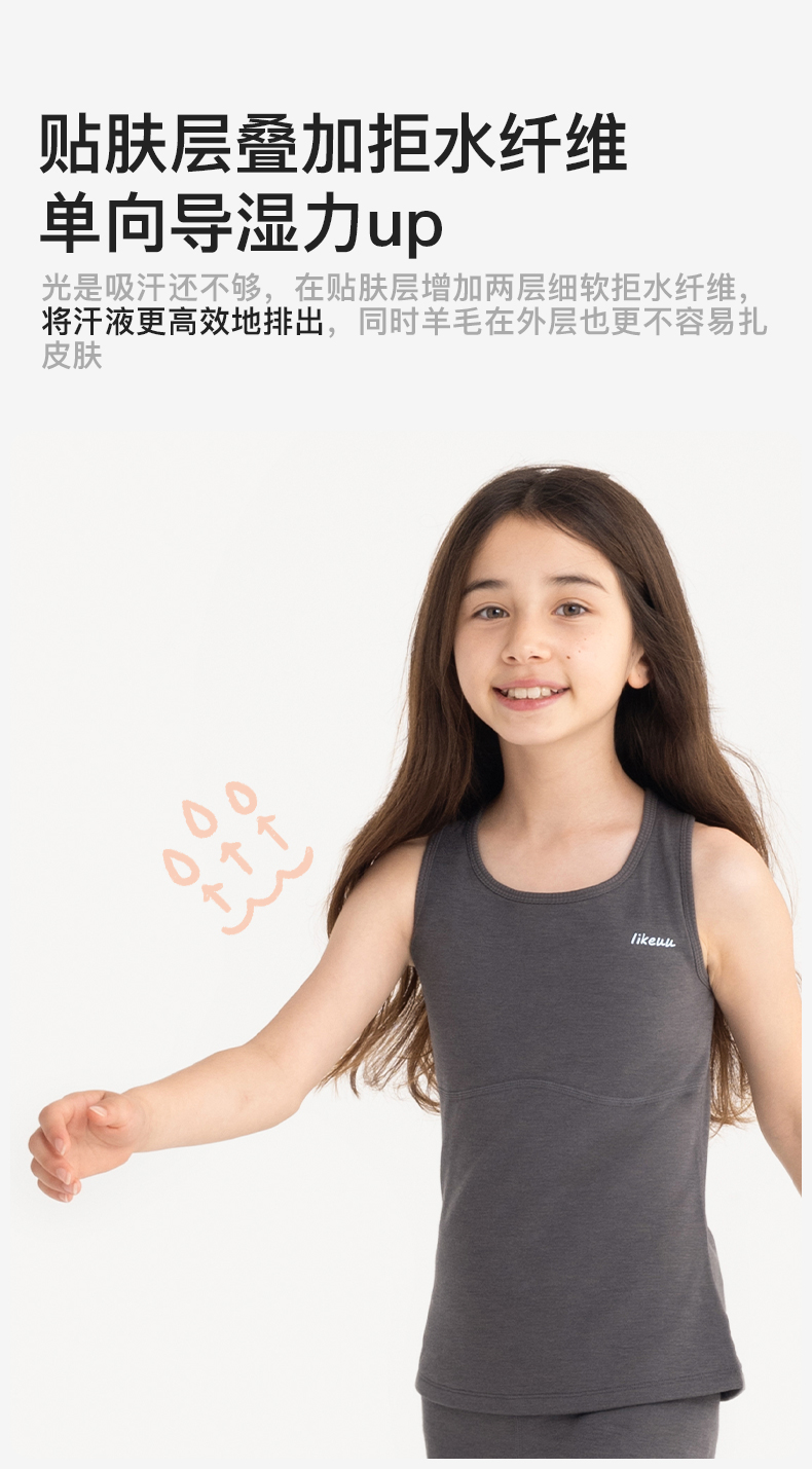 ubras旗下likeuu女童保暖背心美利奴羊毛吸湿排汗透气秋冬ZY