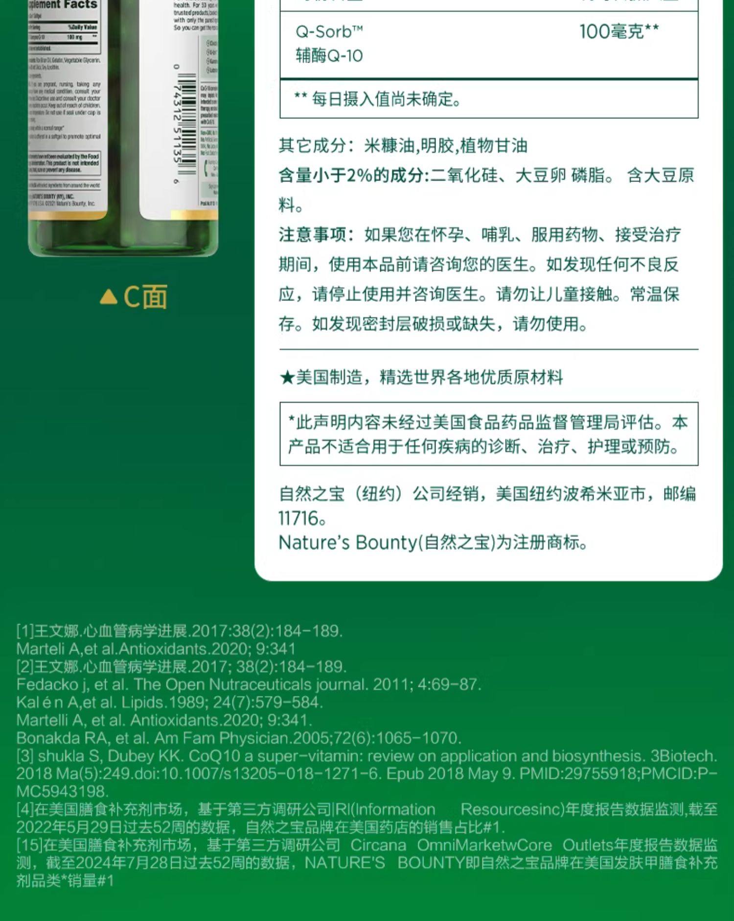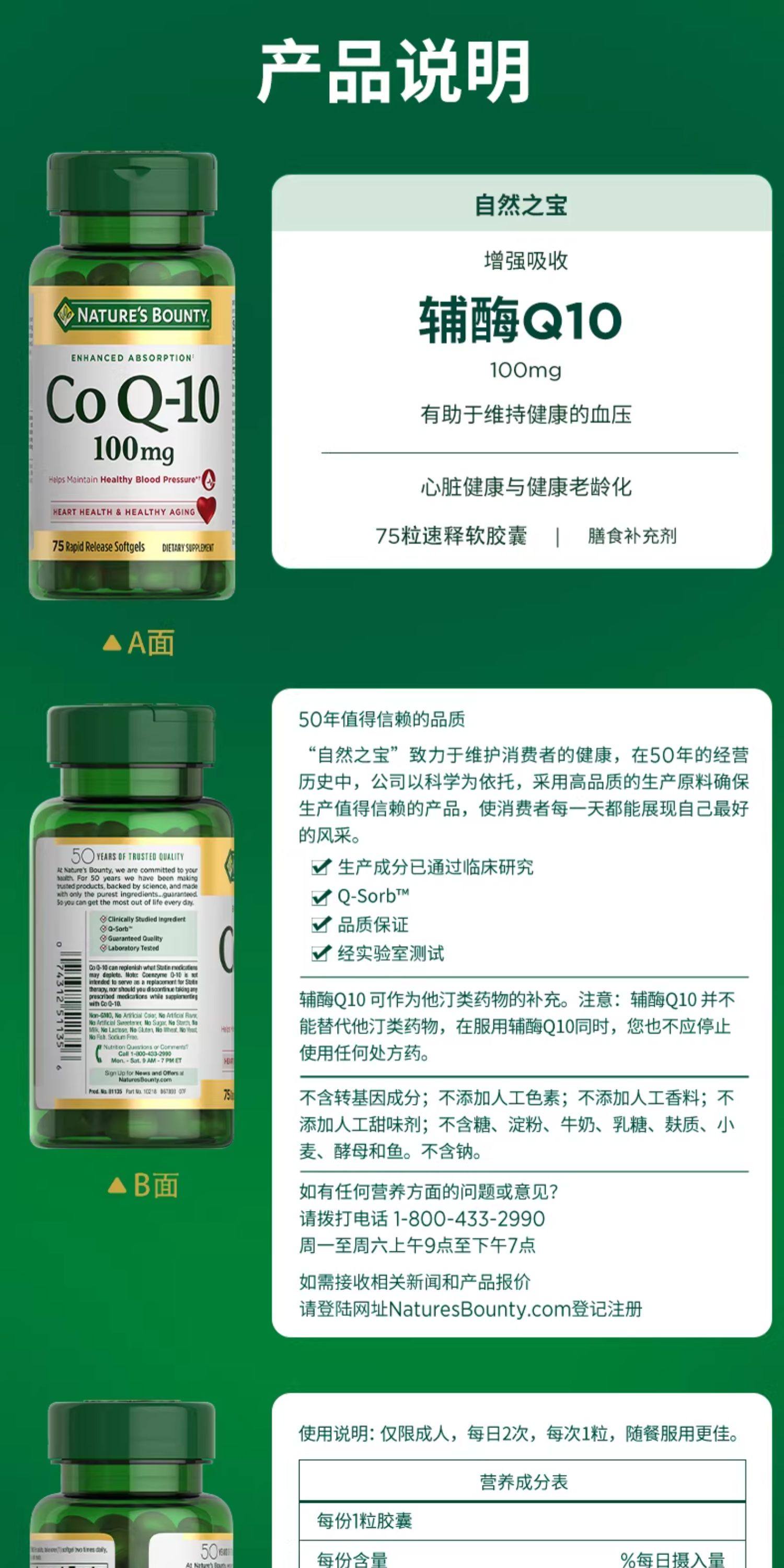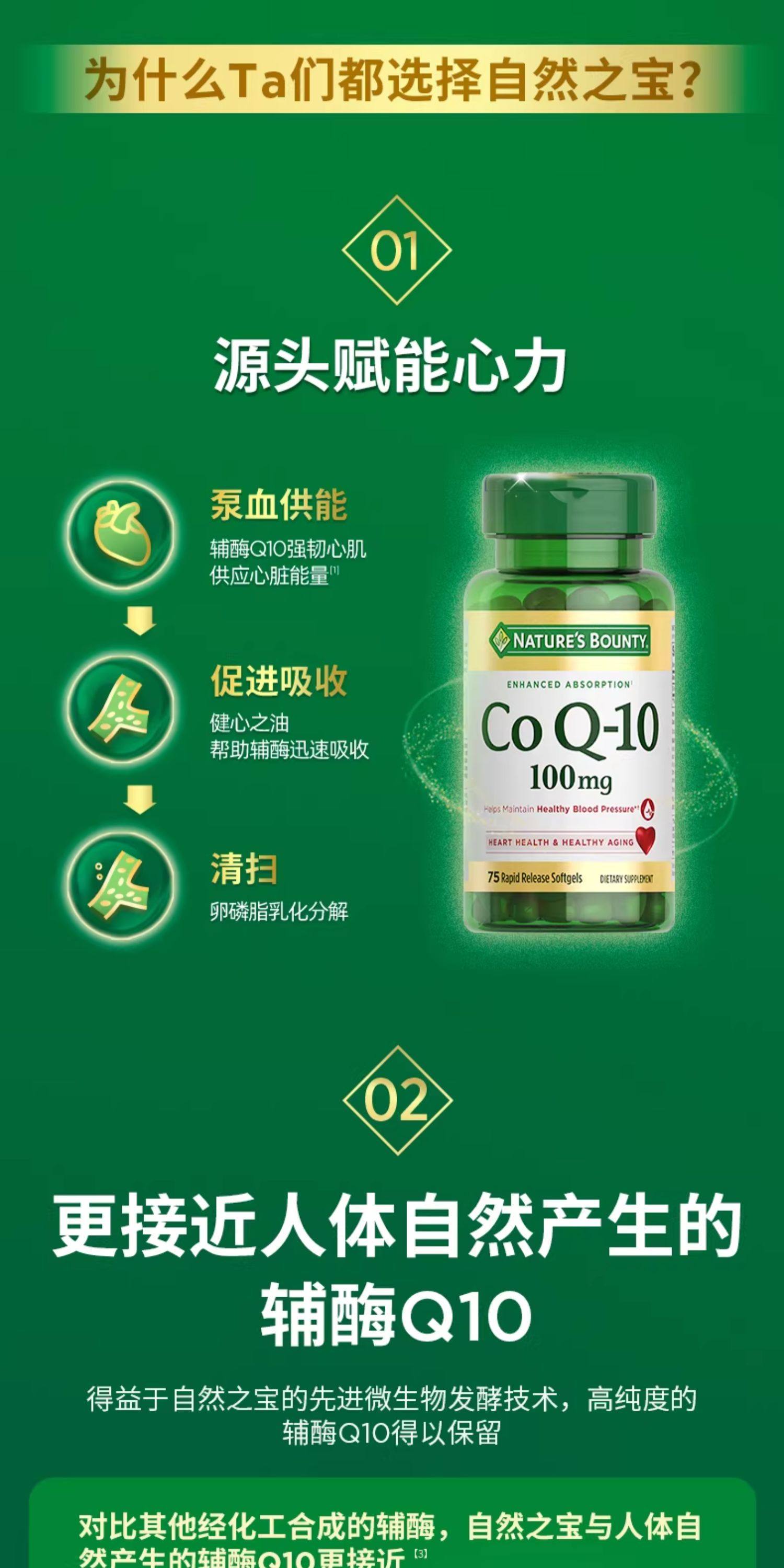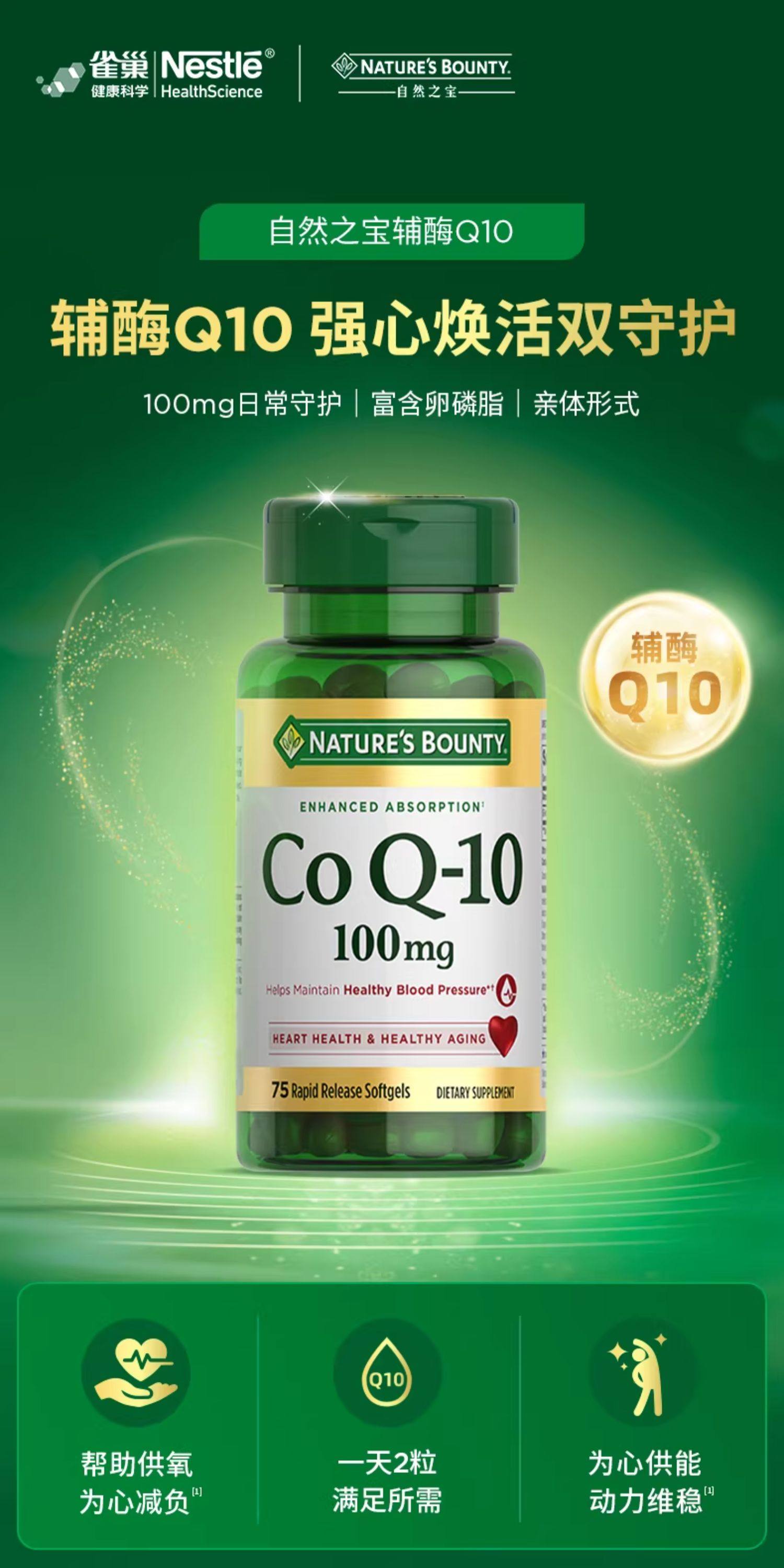 【绍兴仓发货,此链接请单独下单】【跨境】自然之宝(Nature's Bounty)辅酶Q10软胶囊 75粒(100mg)*2 (保健)(非组套)