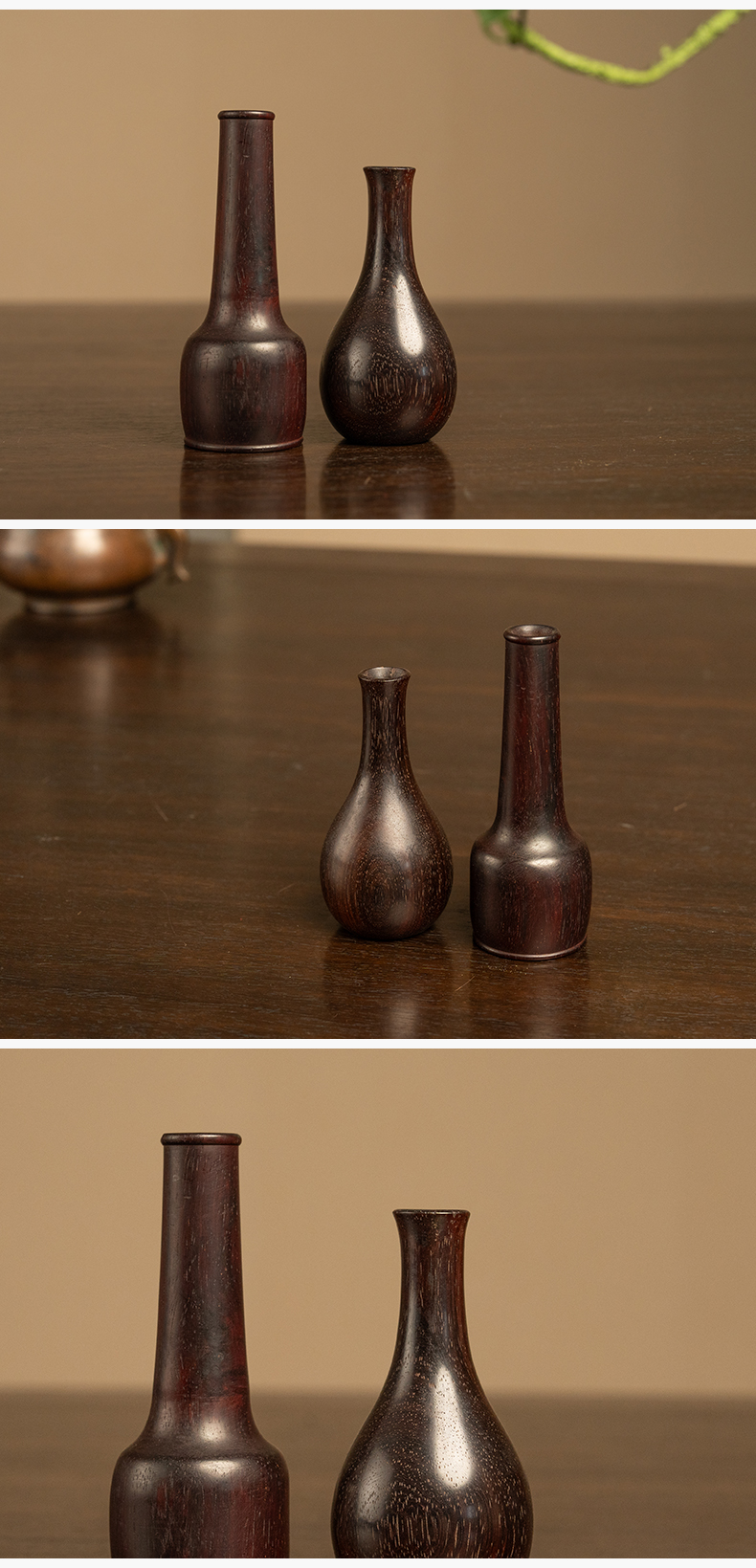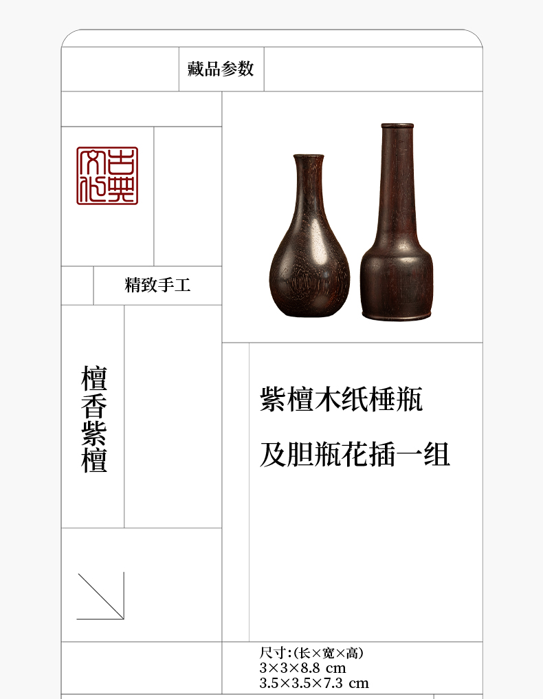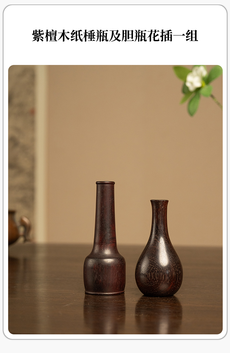 紫檀木纸棰瓶及胆瓶花插一组