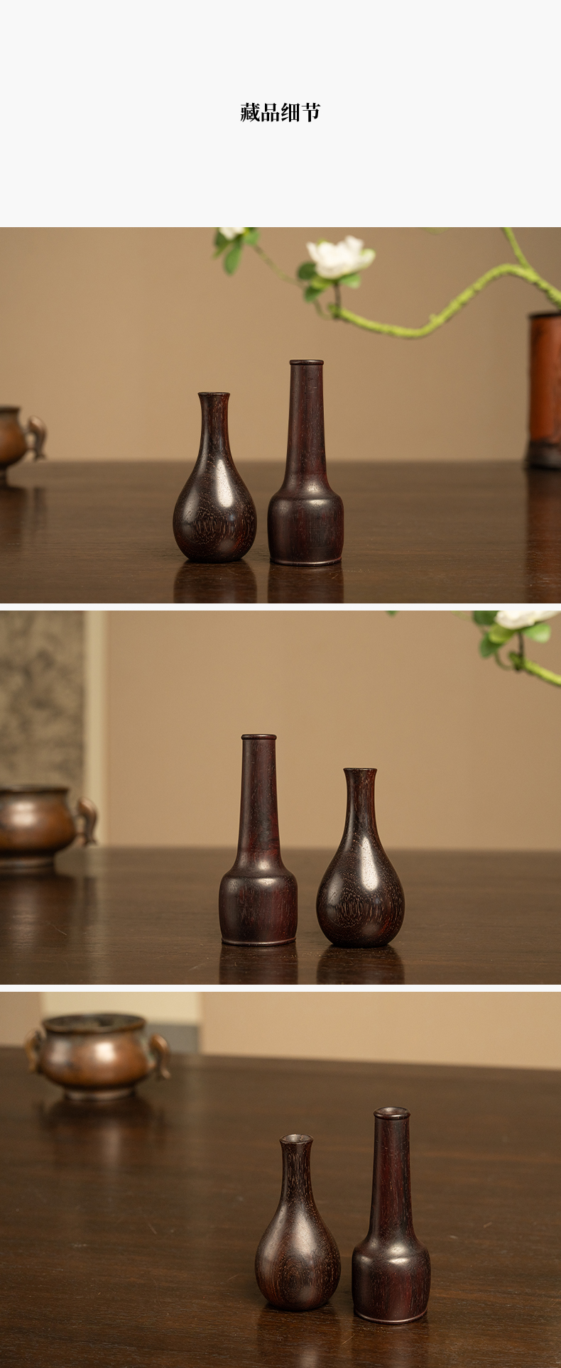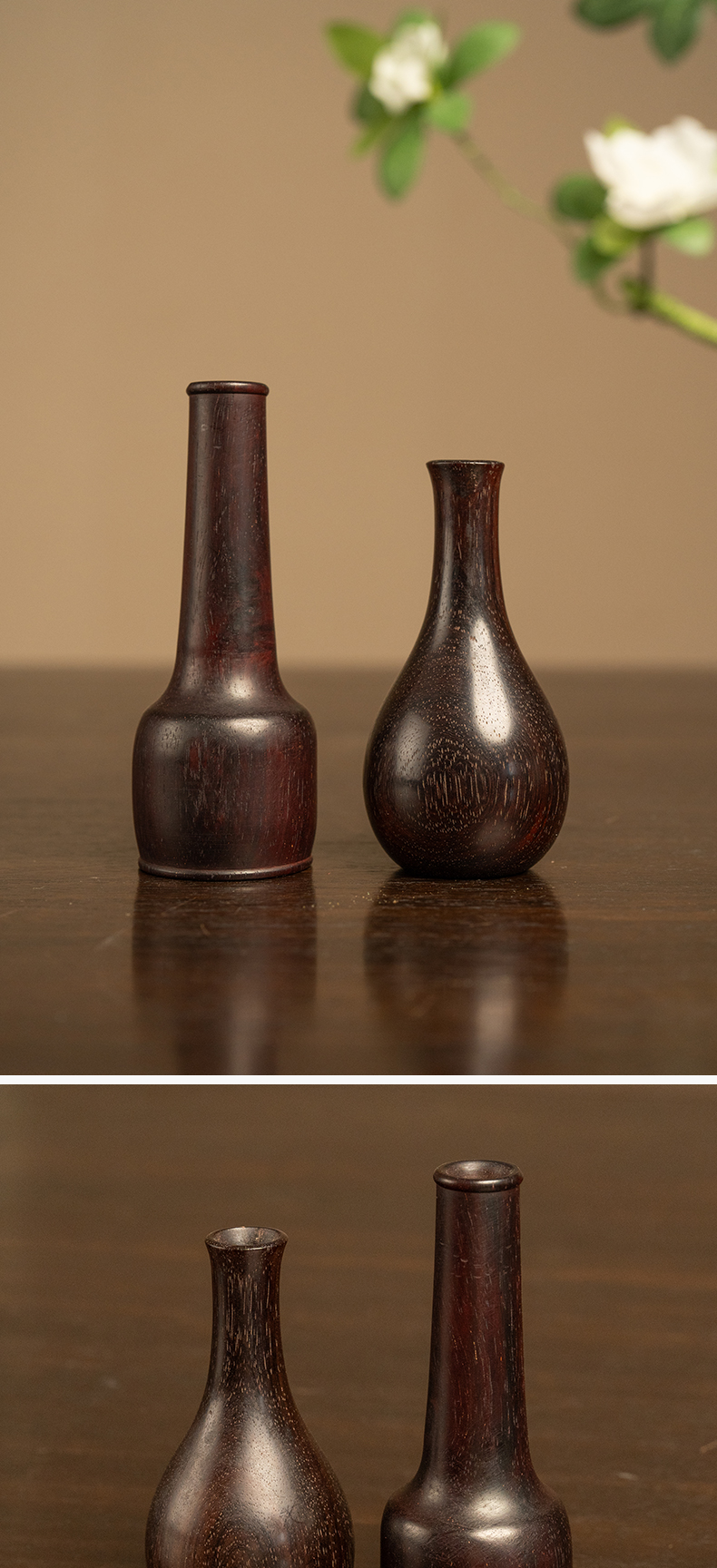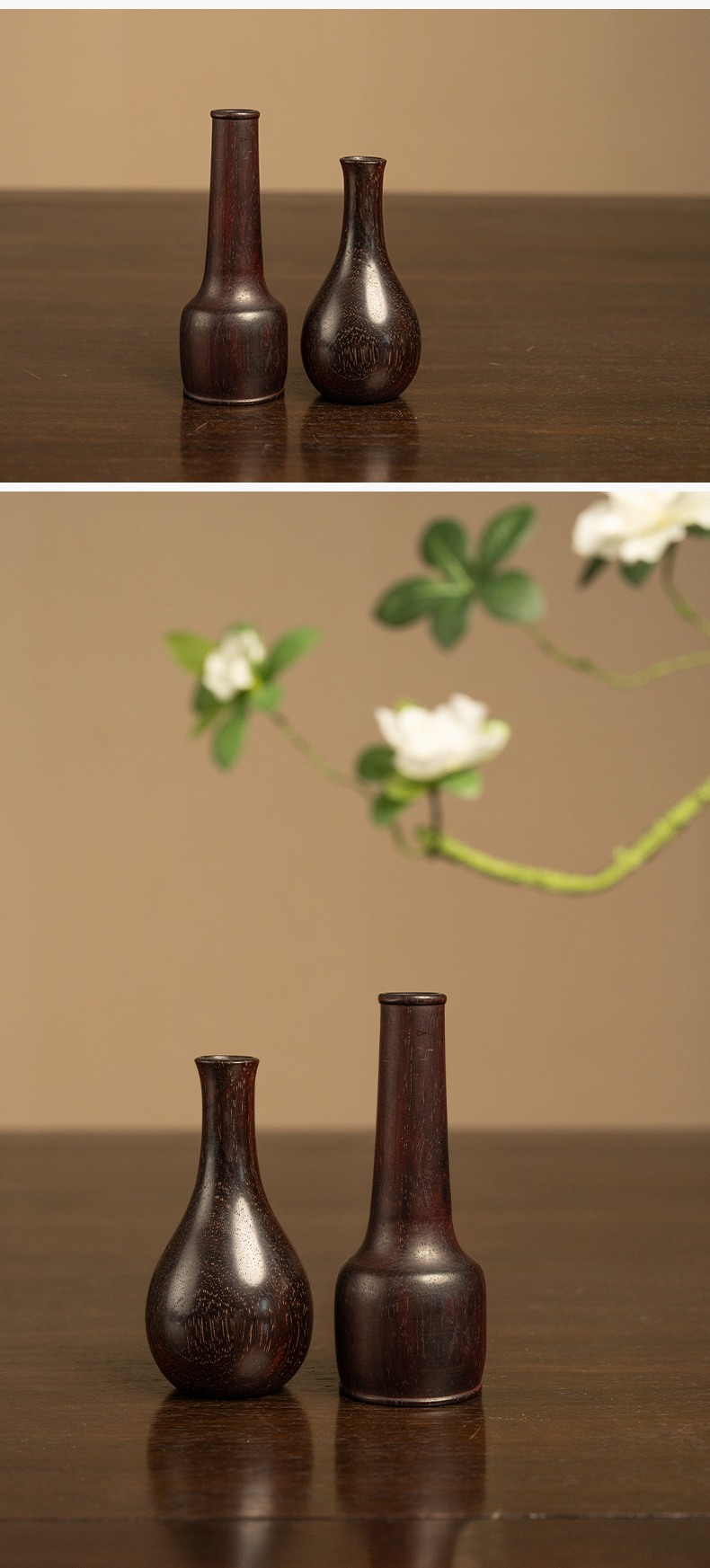 紫檀木纸棰瓶及胆瓶花插一组