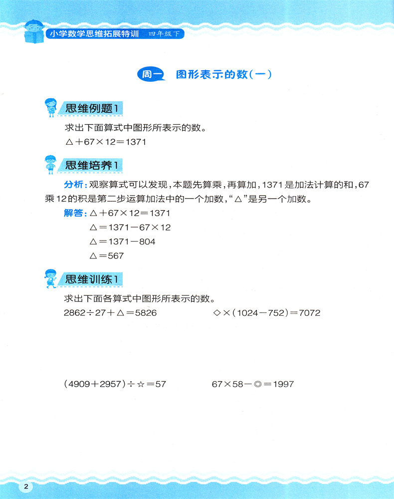 小学数学思维拓展特训4年级下册】通用版4年级数学同步思维能力训练