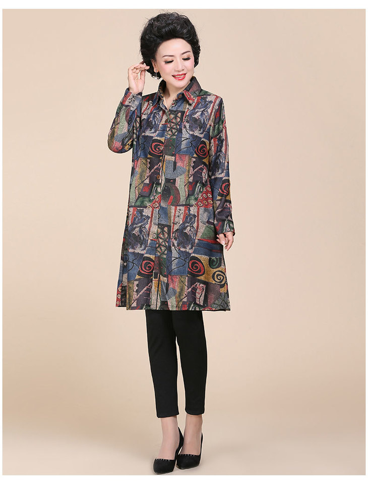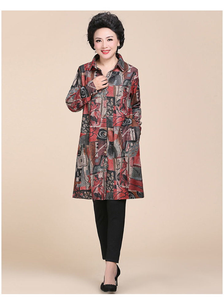 W 1114 印花长款风衣外套