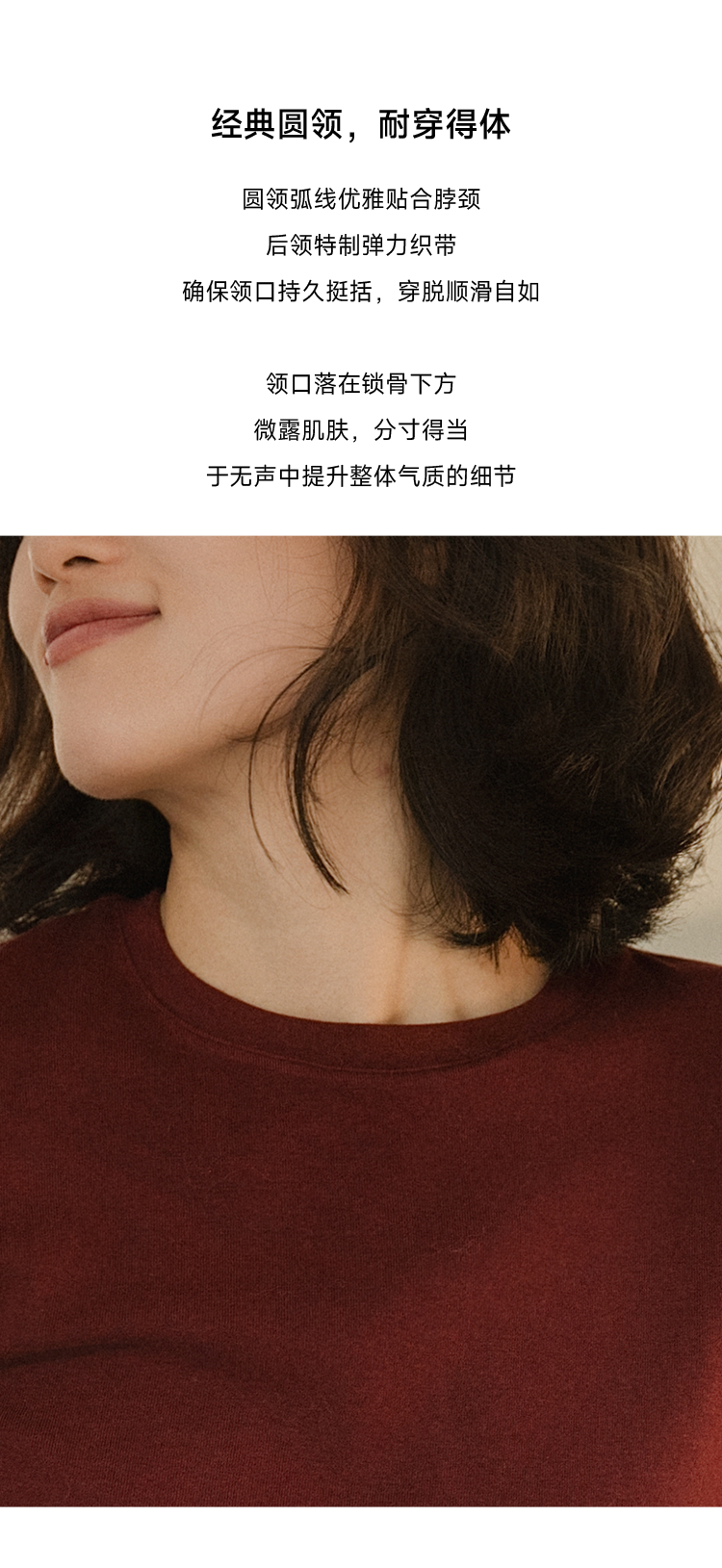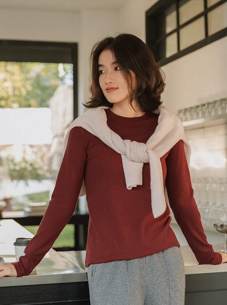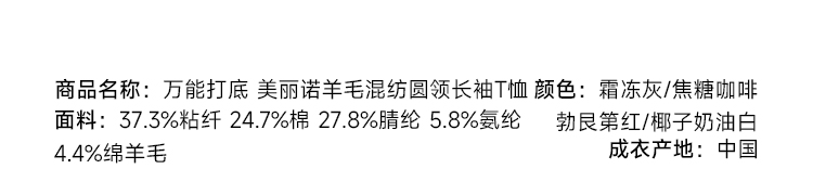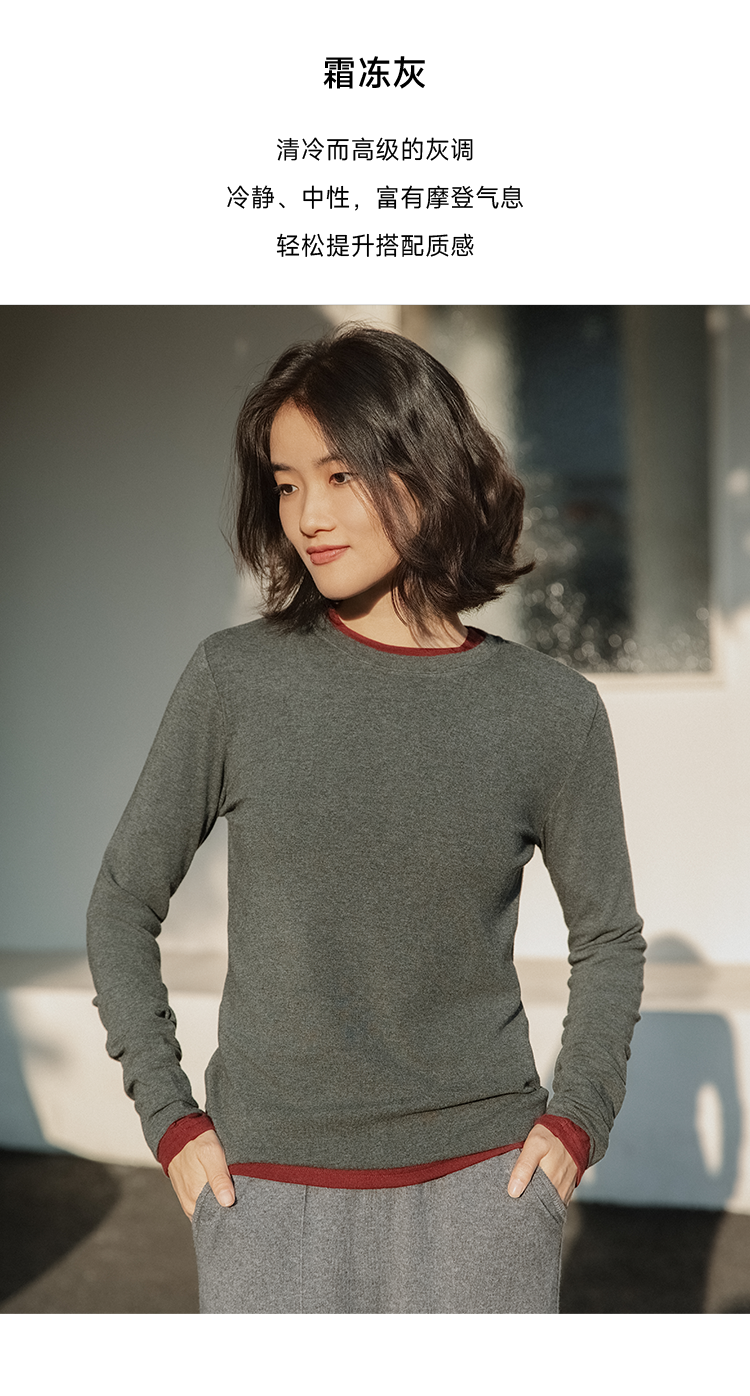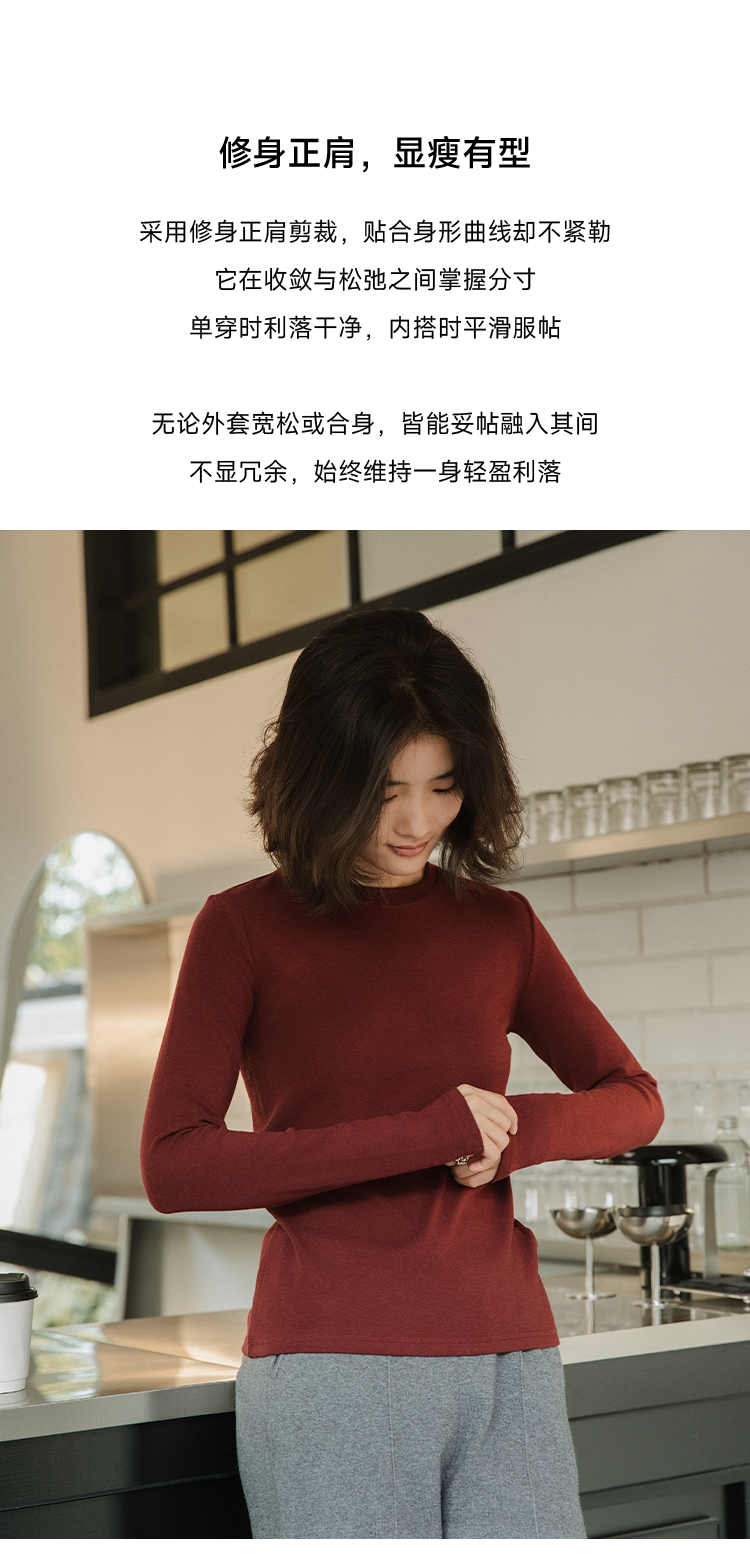 万能打底 美丽诺羊毛混纺圆领长袖T恤FCG1TEE061