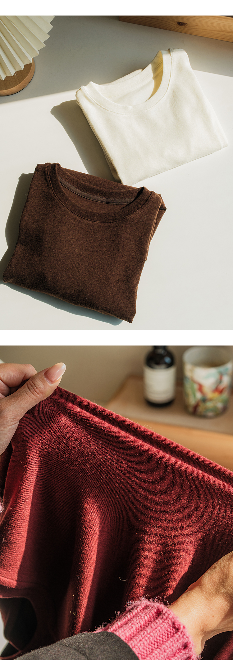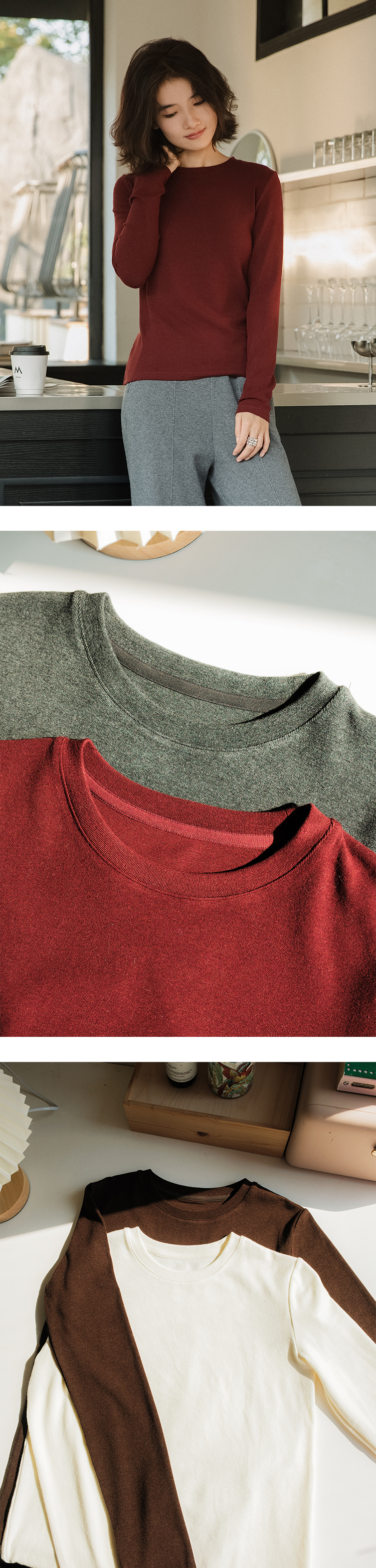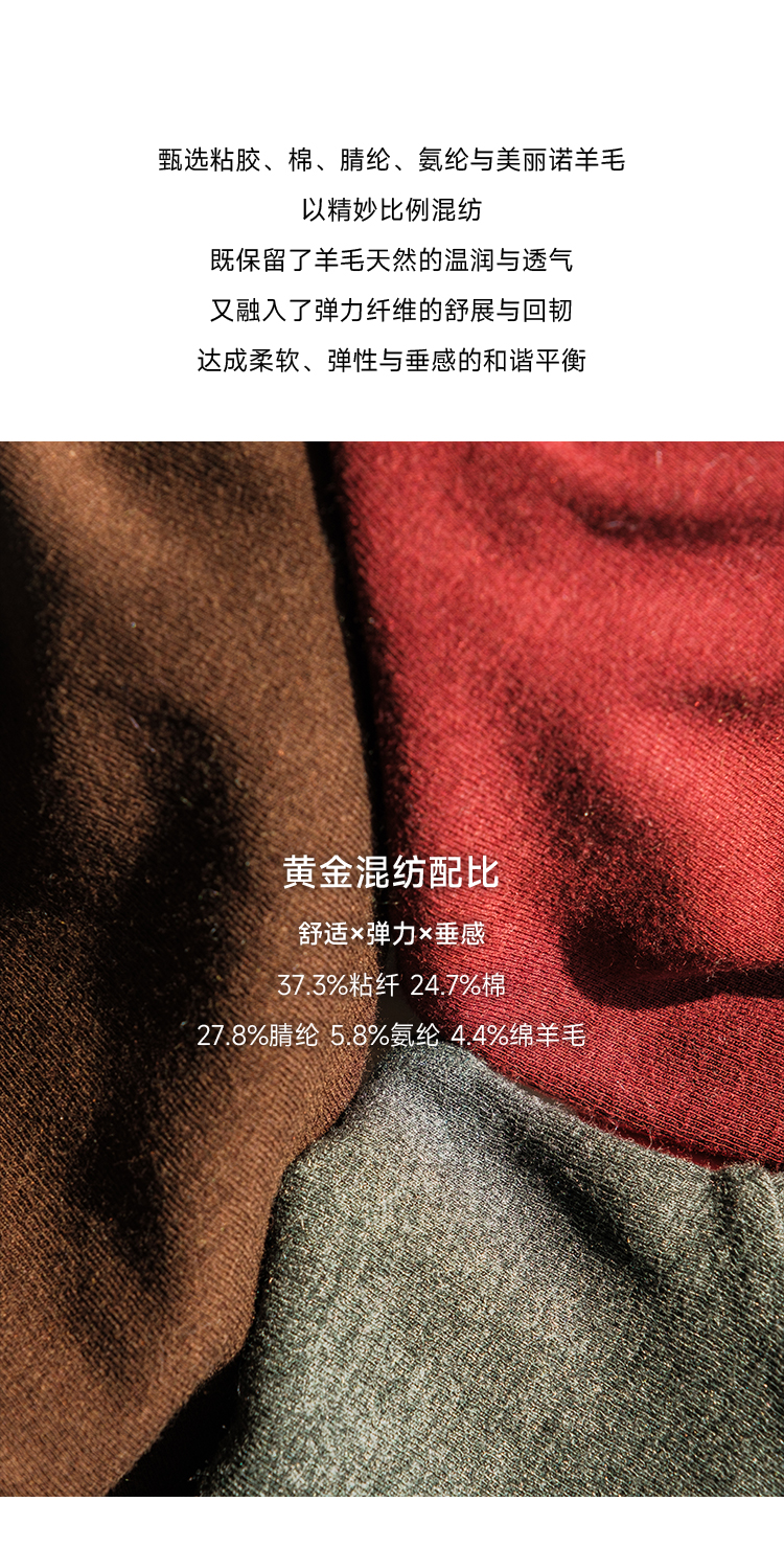 万能打底 美丽诺羊毛混纺圆领长袖T恤FCG1TEE061