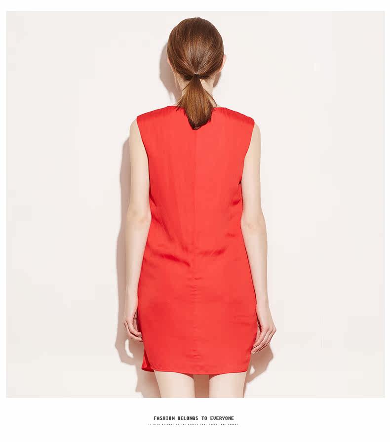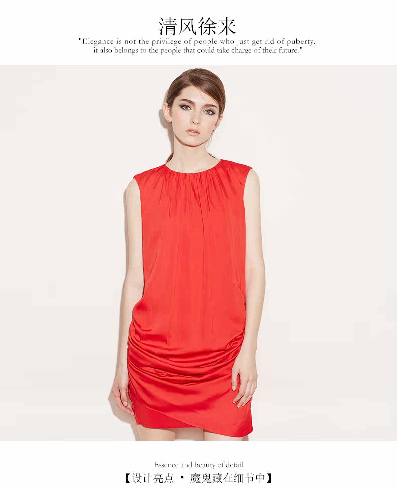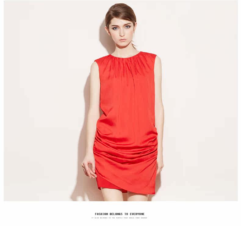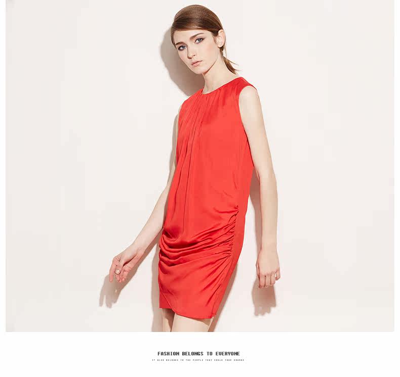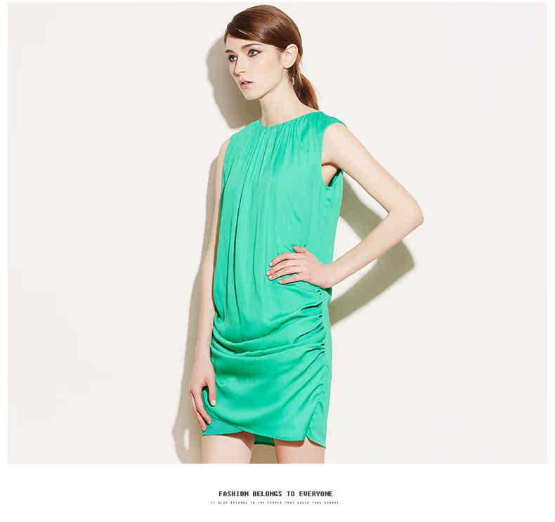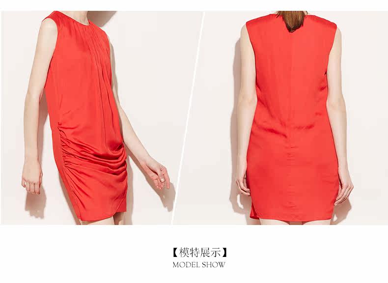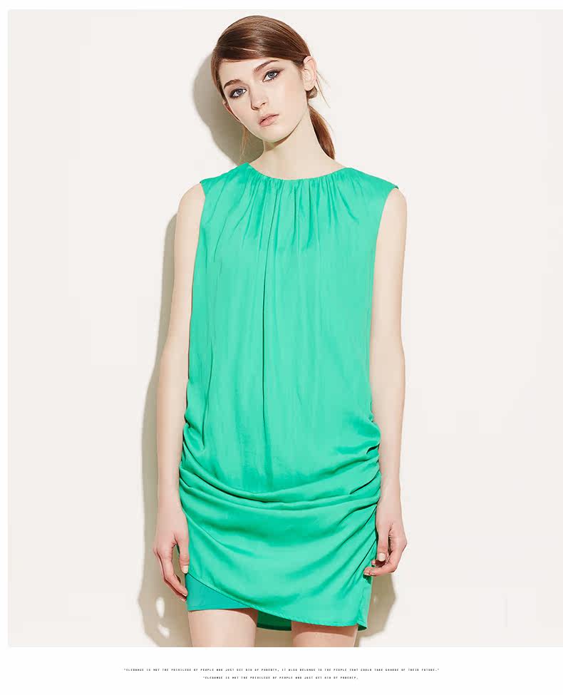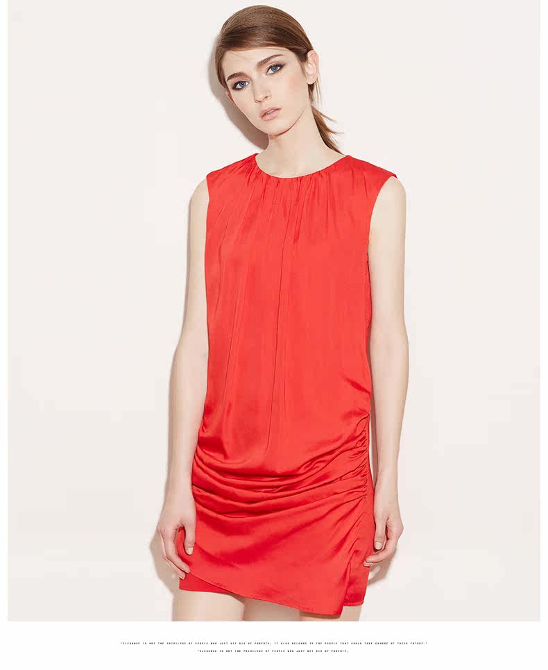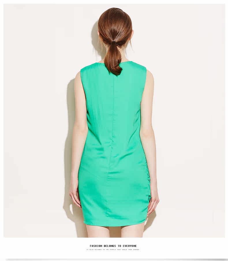 VIMAGE纬漫纪夏装新款女装圆领纯色背心裙抽褶显瘦连衣裙子V507053