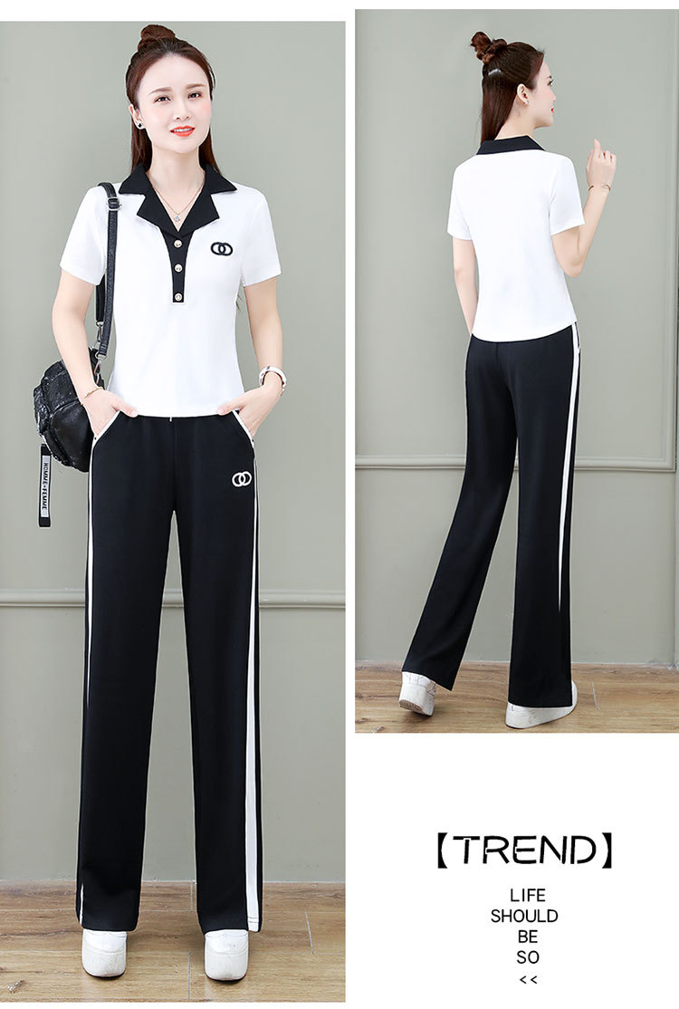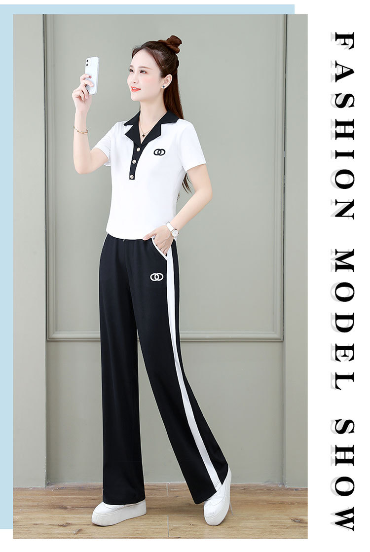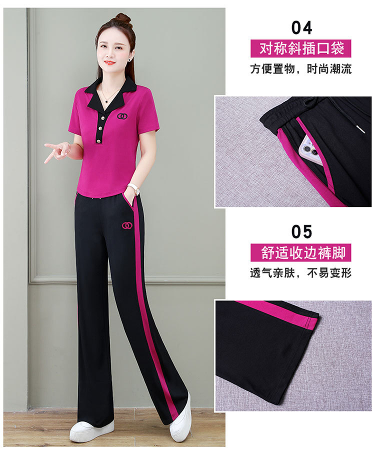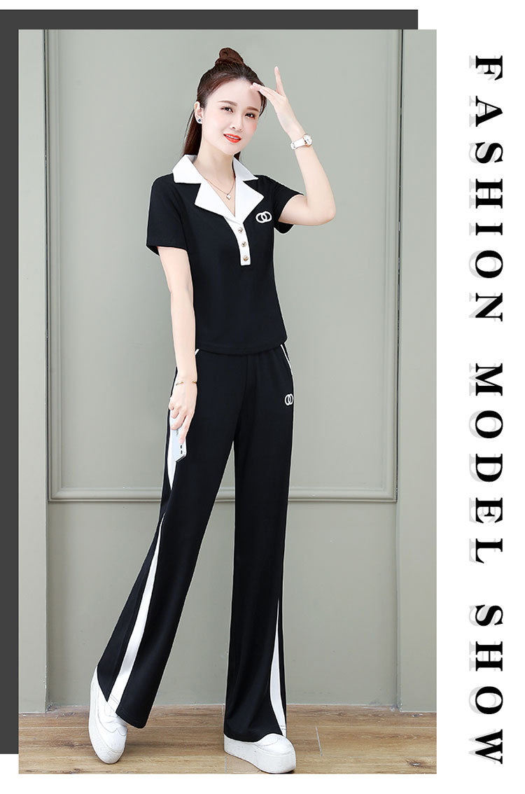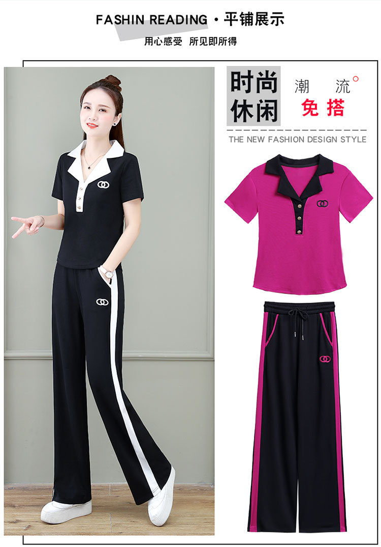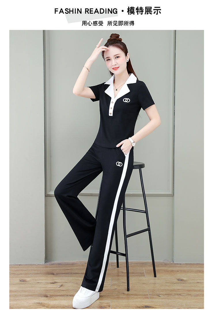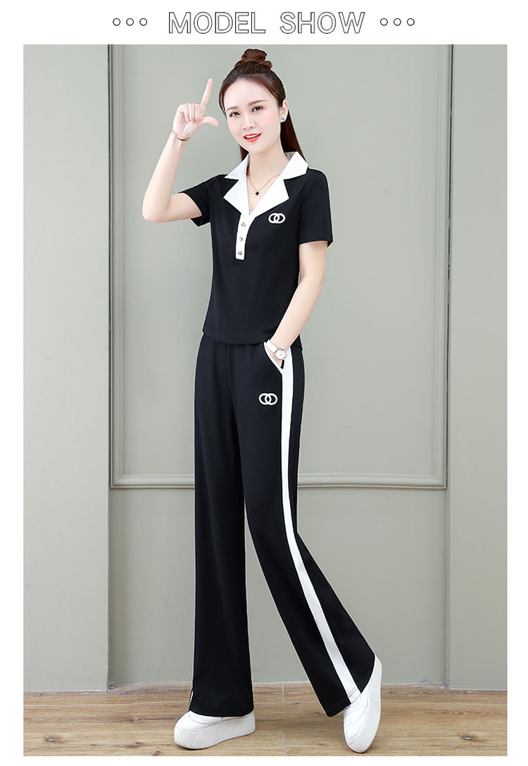 夏季新款,时尚显瘦运动休闲套装女韩系V领短袖T恤阔腿裤两件套ZYR-8303