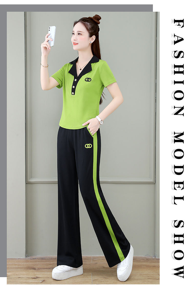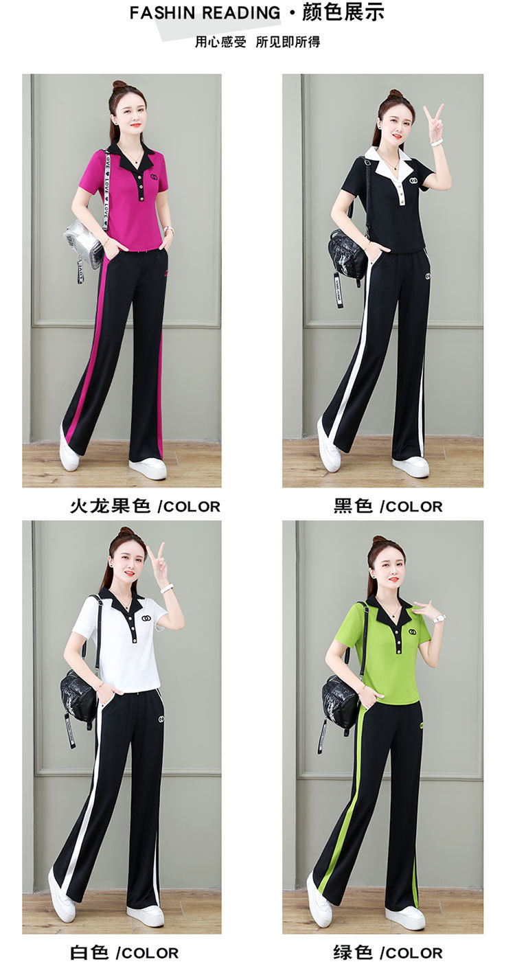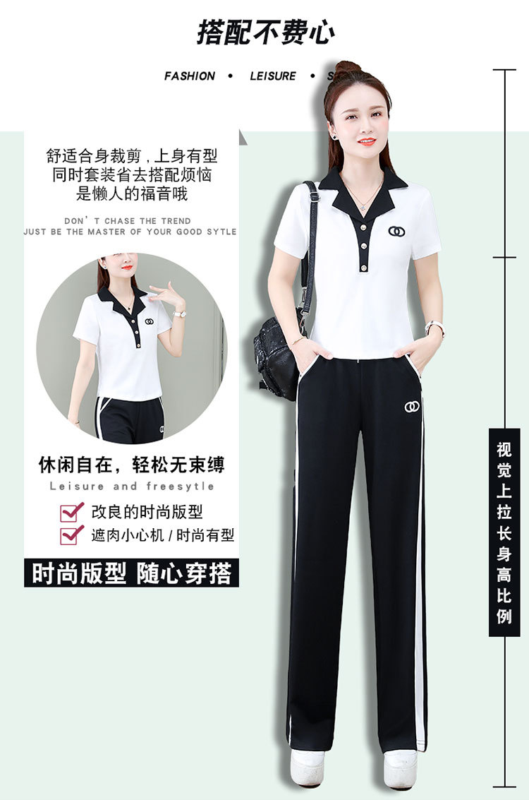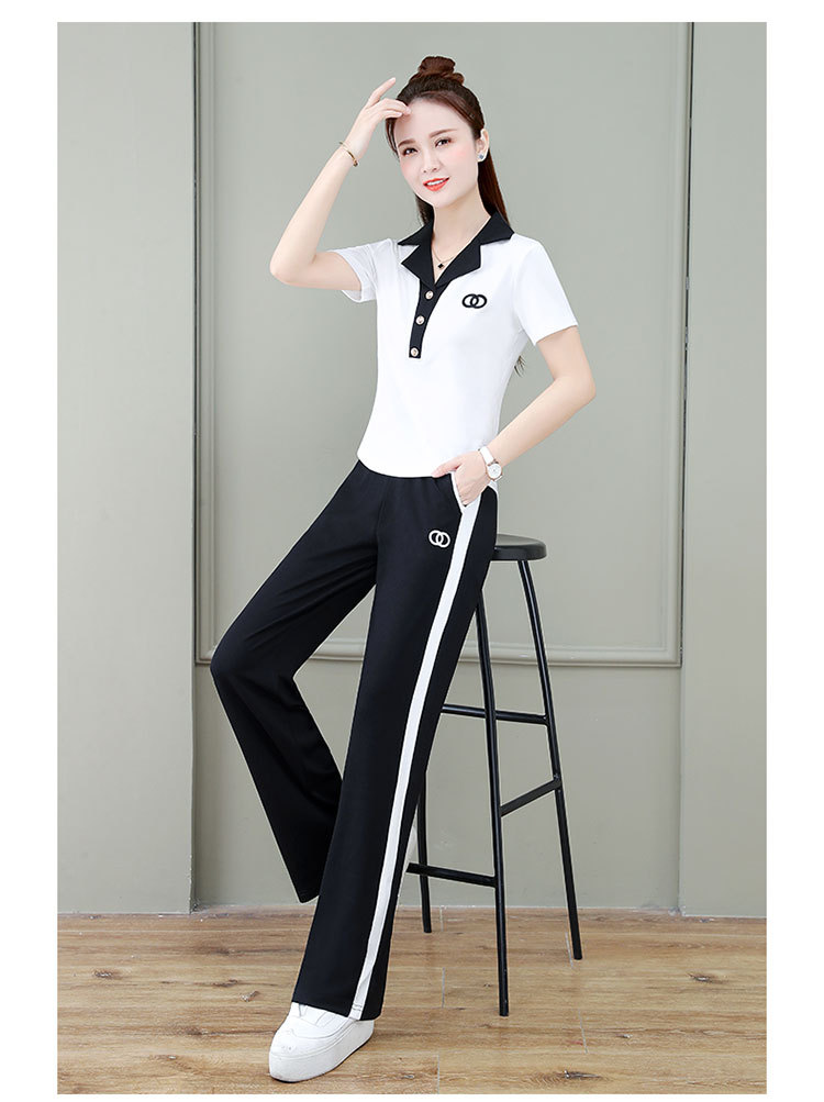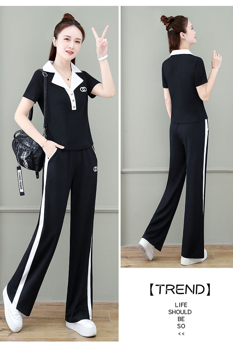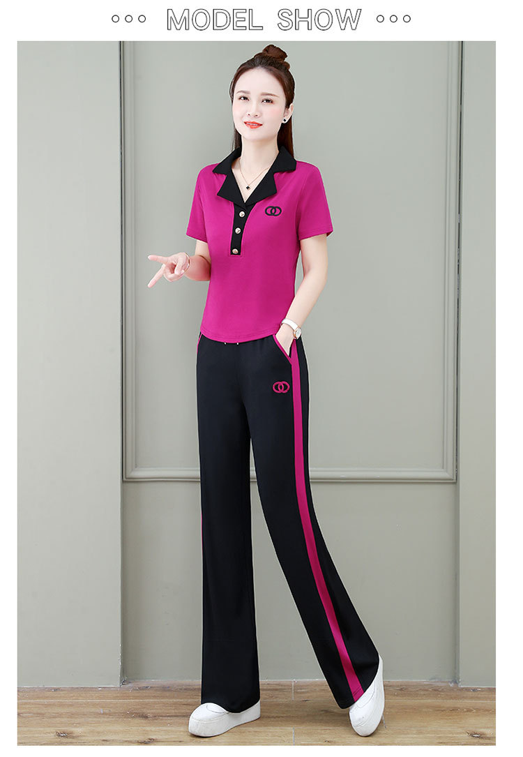 夏季新款,时尚显瘦运动休闲套装女韩系V领短袖T恤阔腿裤两件套ZYR-8303